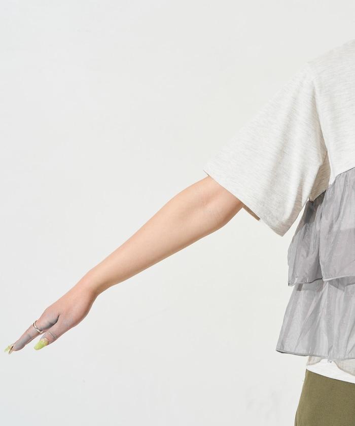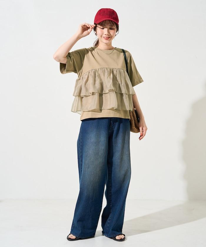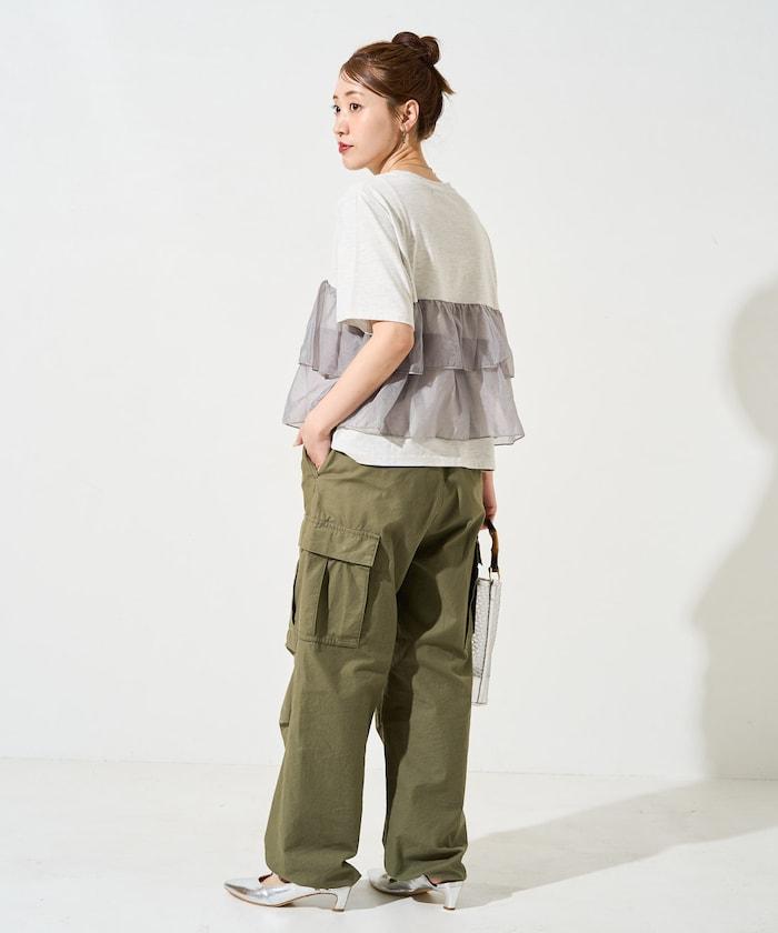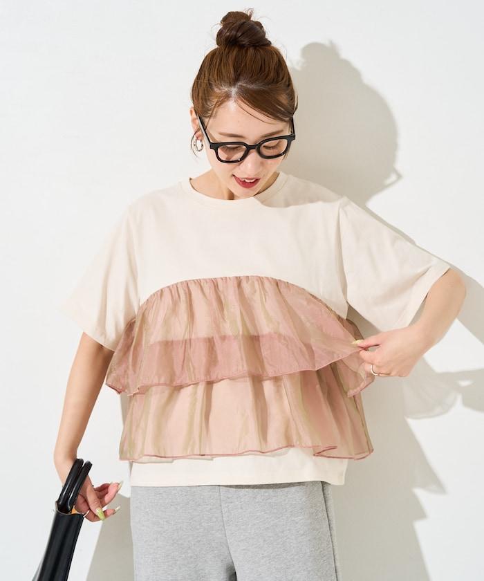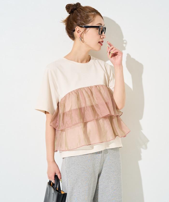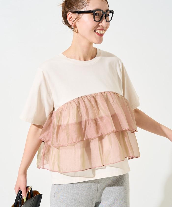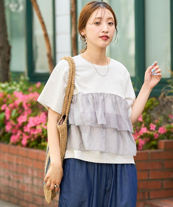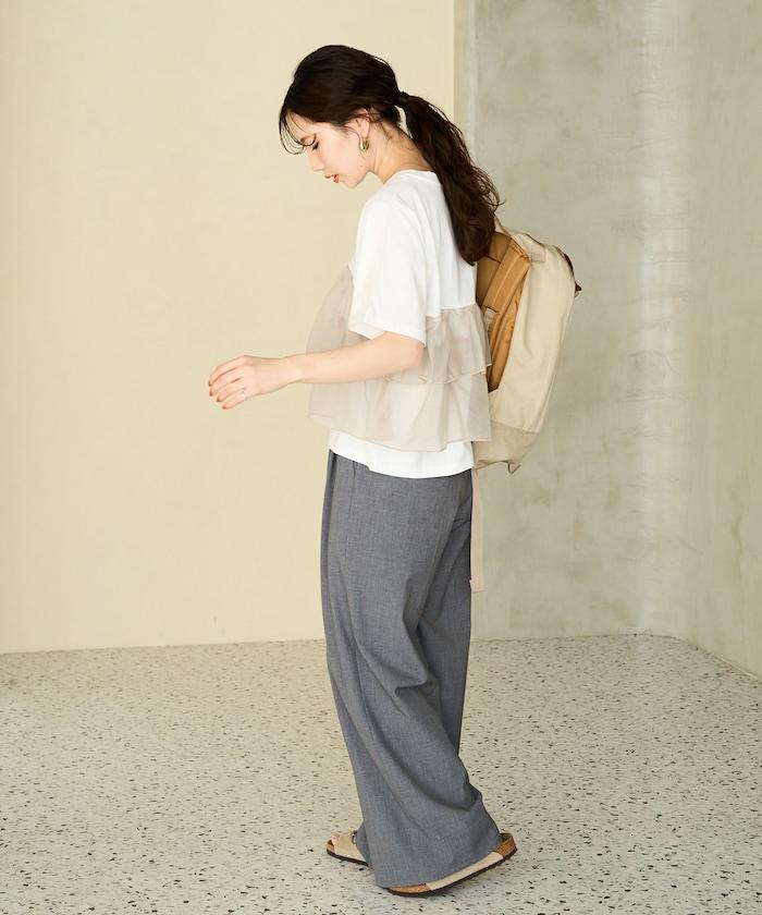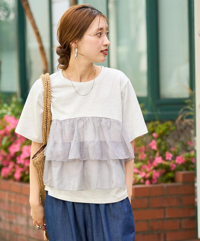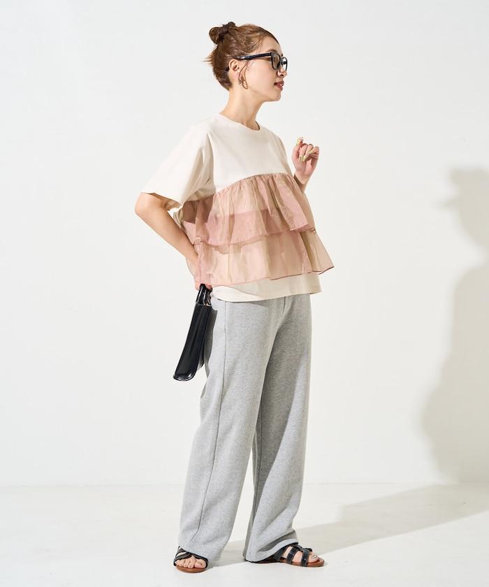 搭配緊身短裙等淑女裝打底,與薄紗相得益彰,營造出美麗的休閒印象。