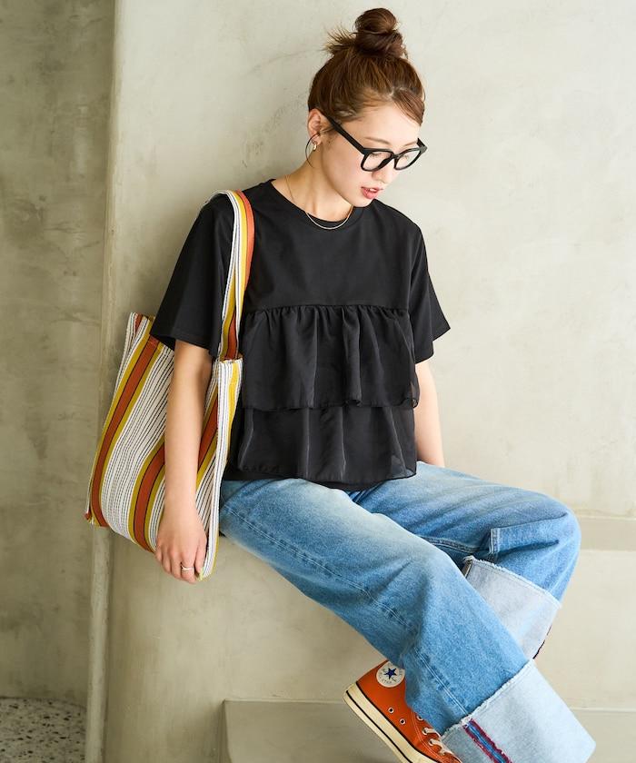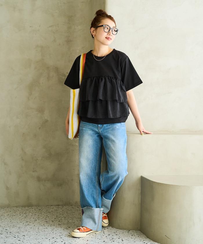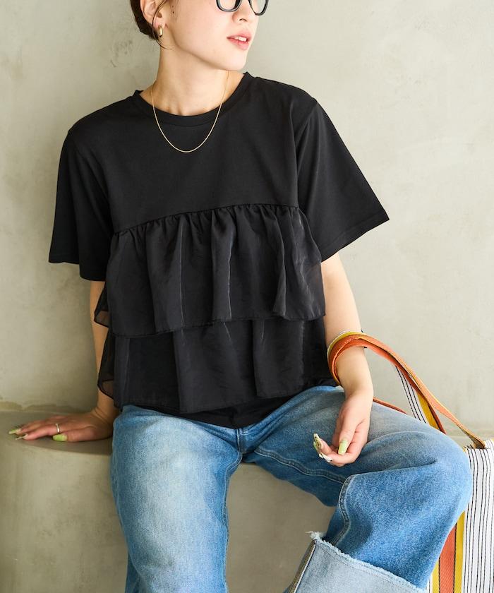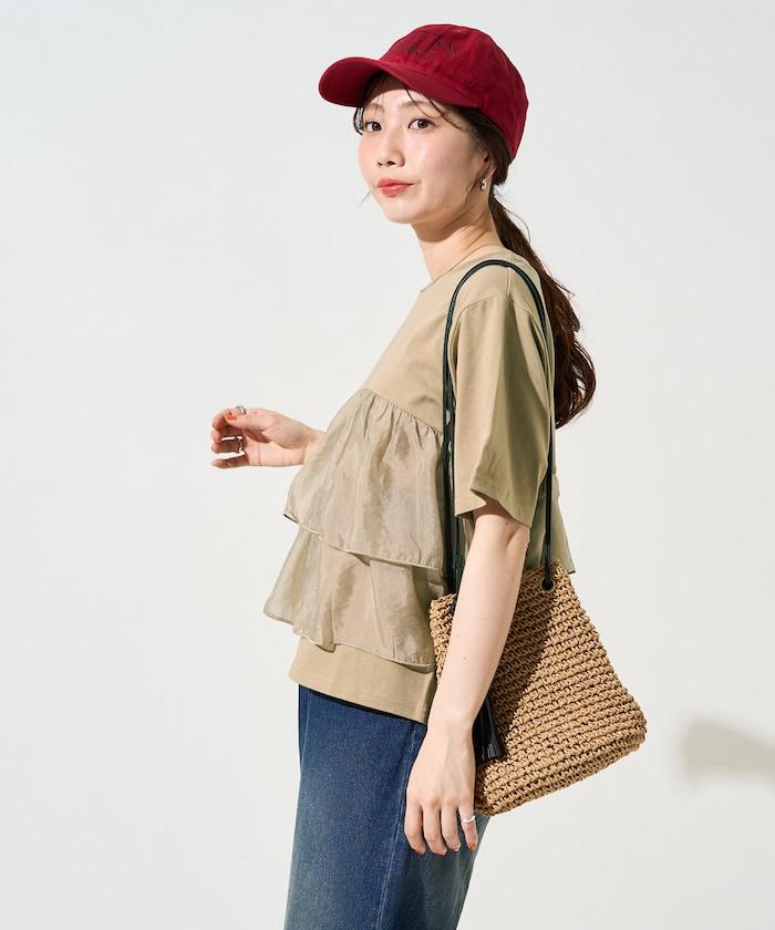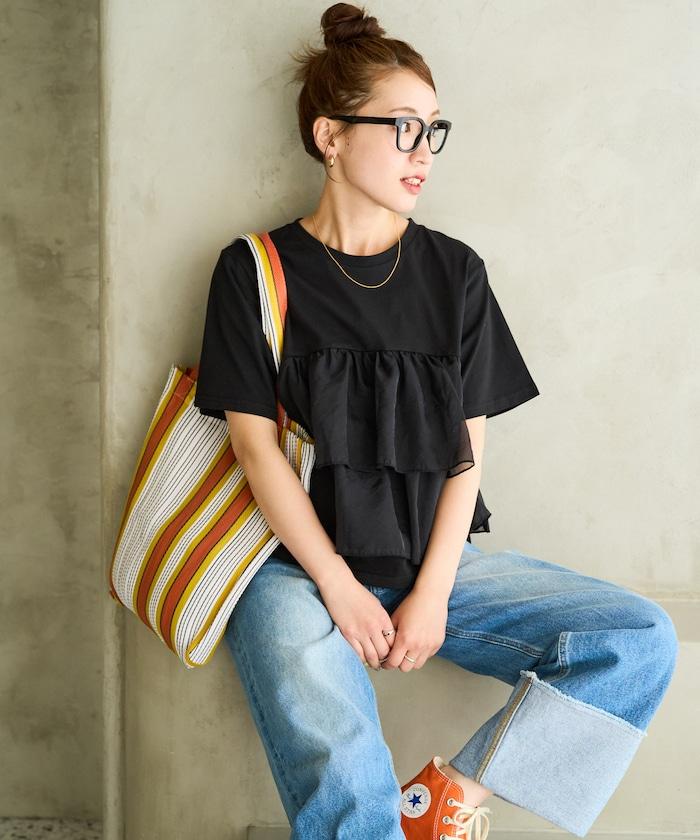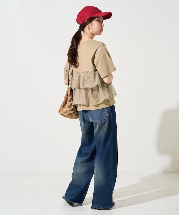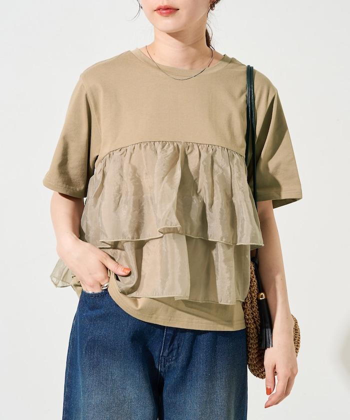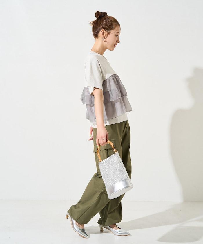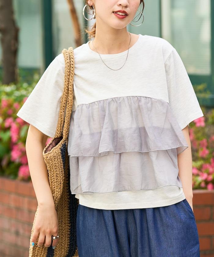 搭配緊身短裙等淑女裝打底,與薄紗相得益彰,營造出美麗的休閒印象。