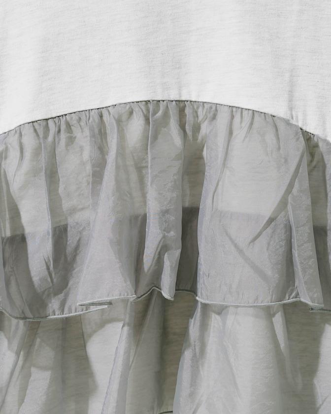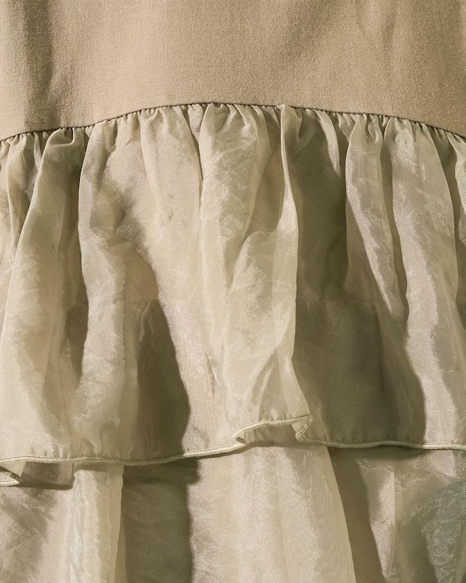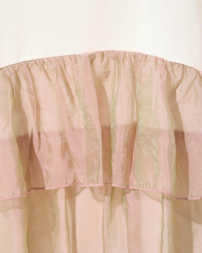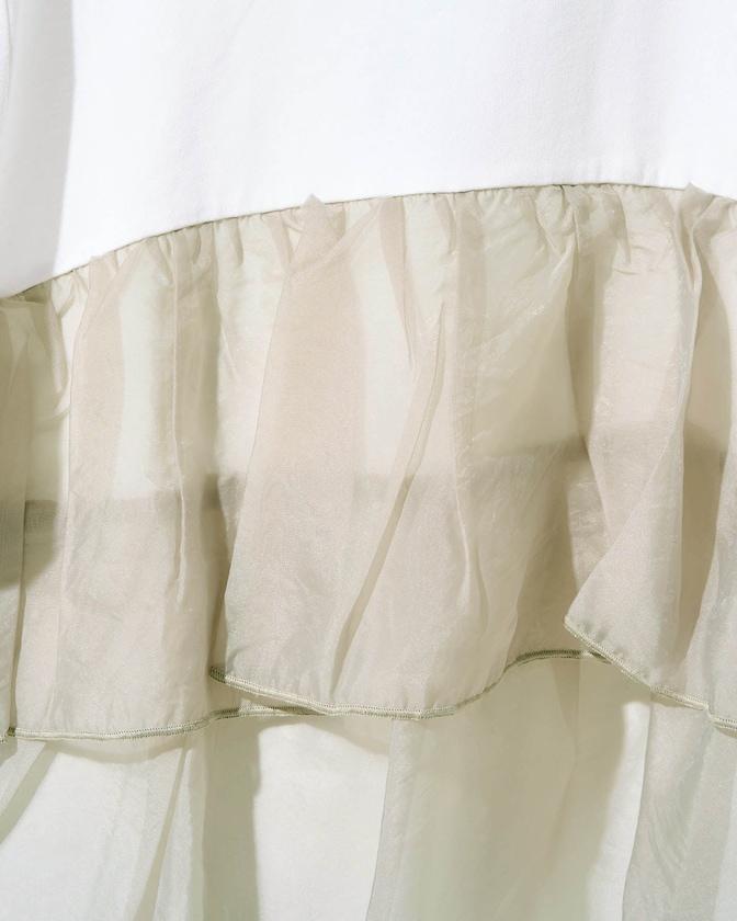 大量使用荷葉邊歐根紗,給人以女性化的印象。