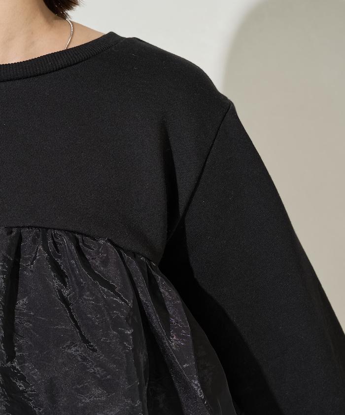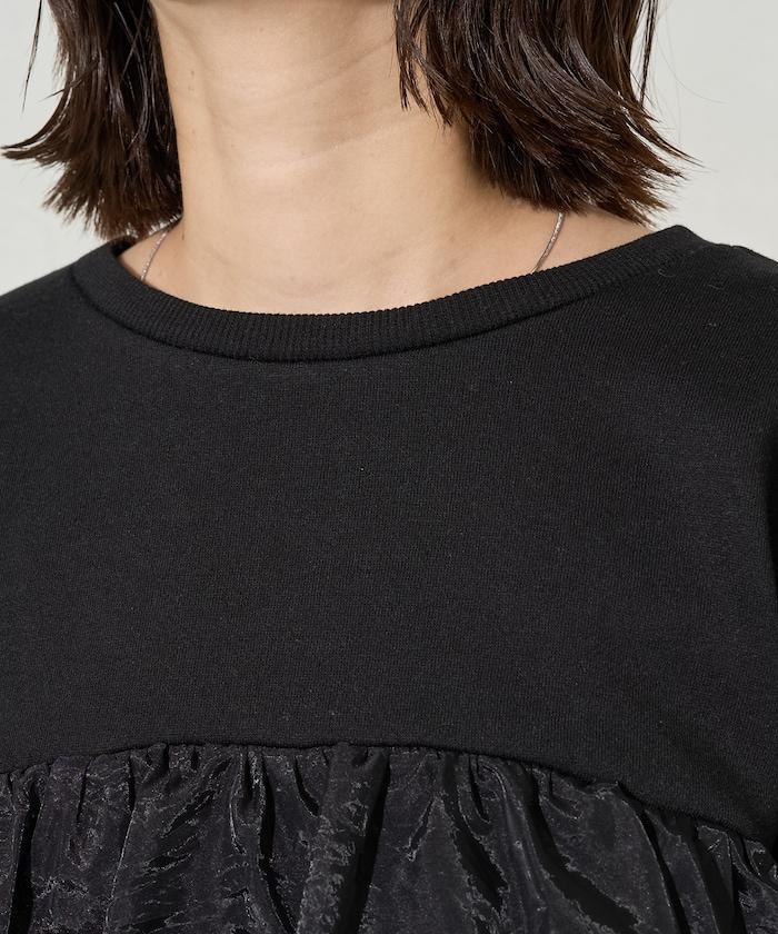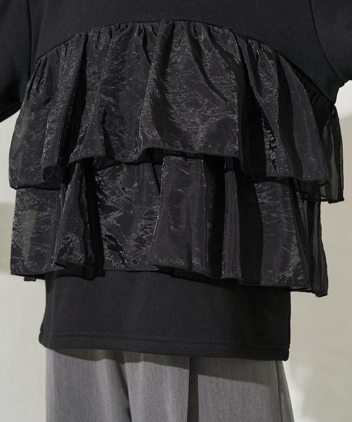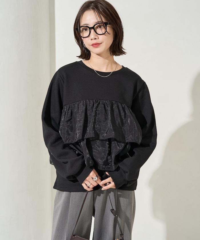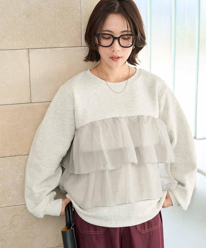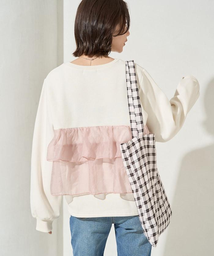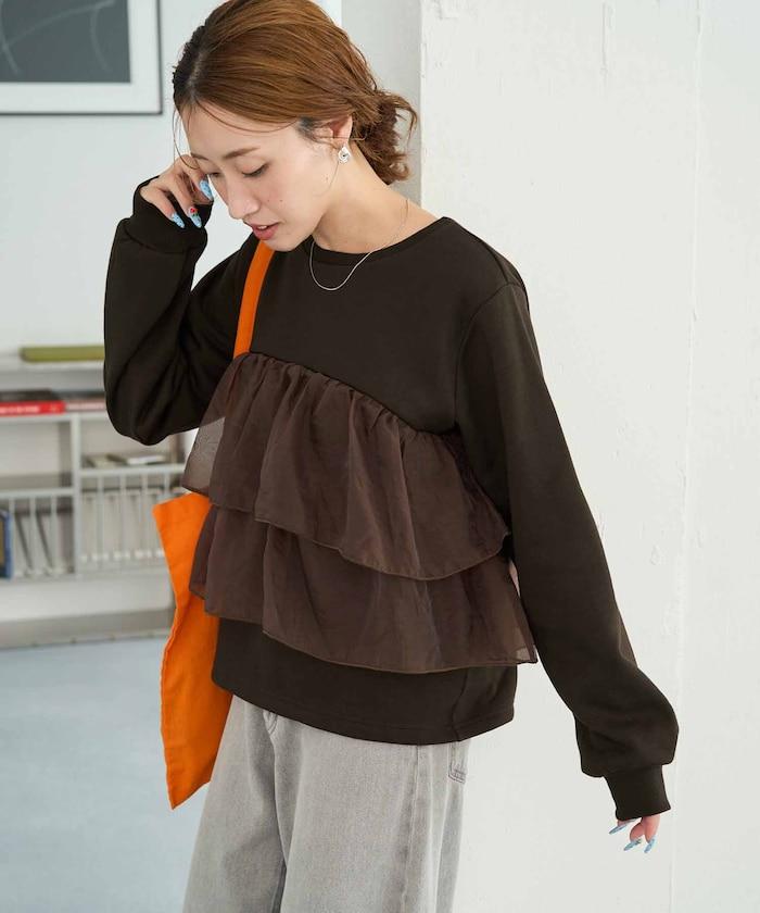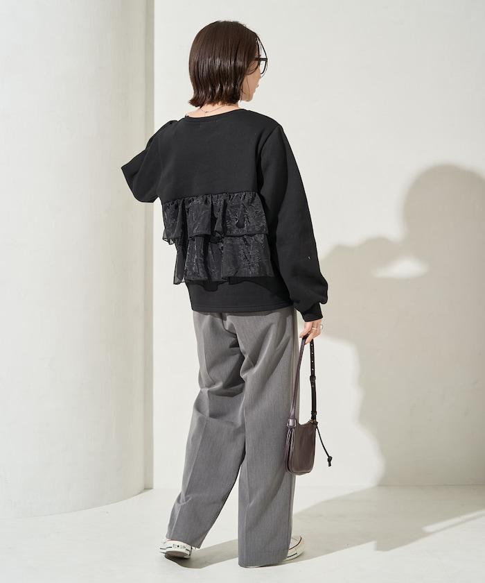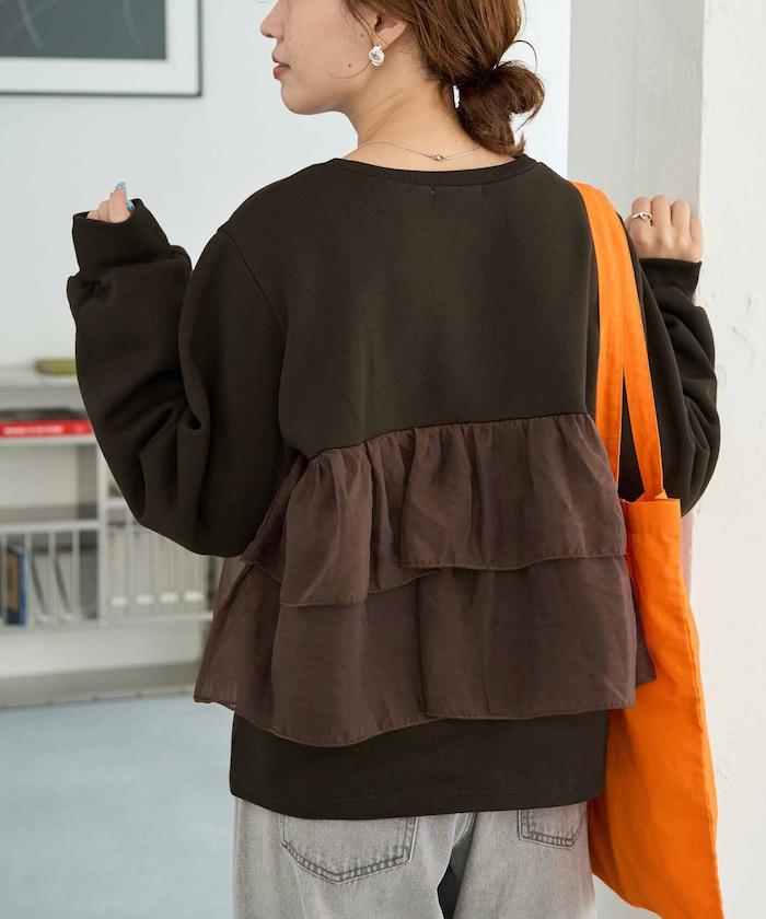 歐根紗拼接荷葉邊加絨衛衣套頭衫