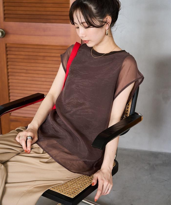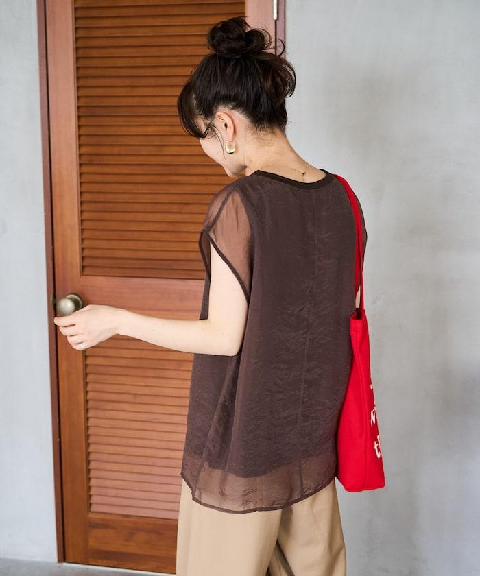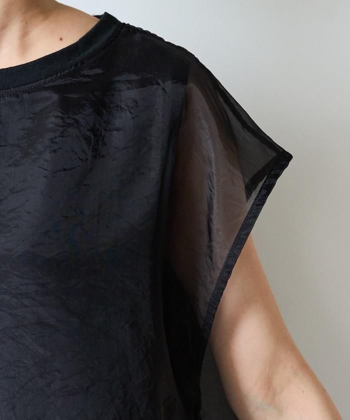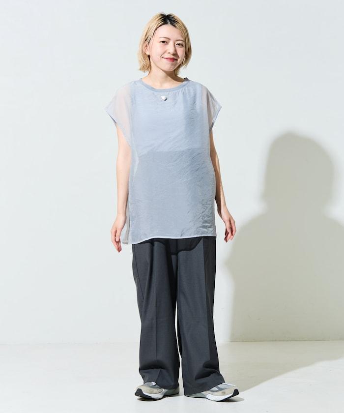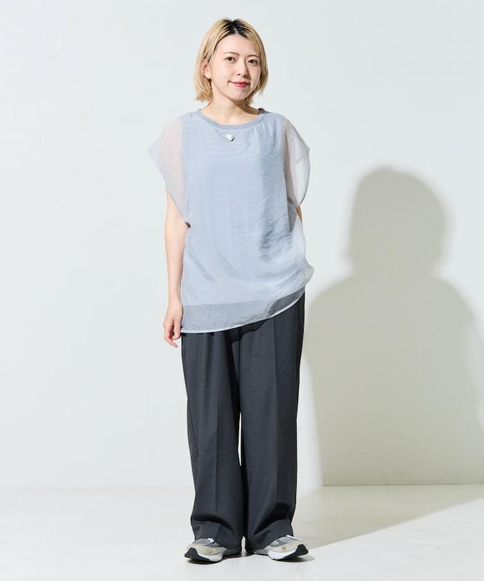 歐根紗的透明感使 T 恤看起來適度優雅,即使搭配休閒褲也不會過於粗糙。