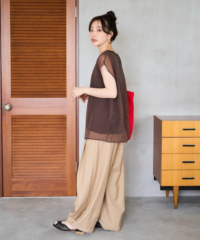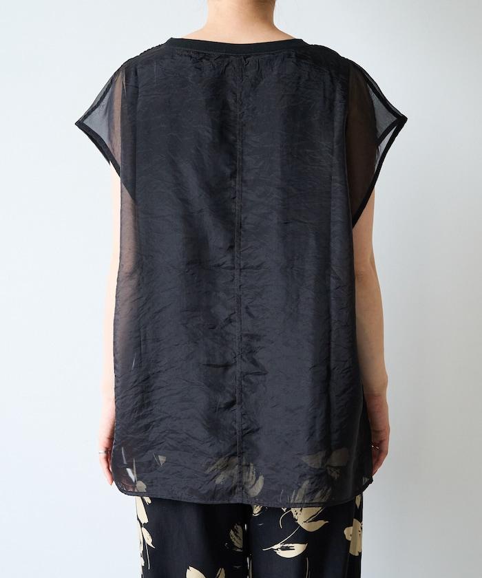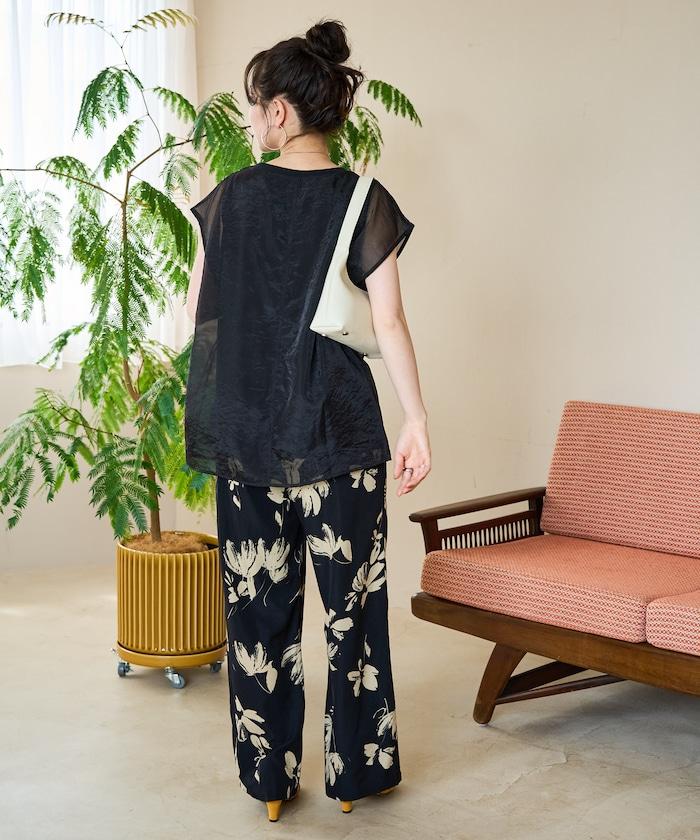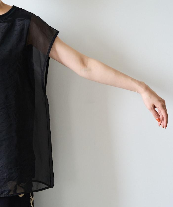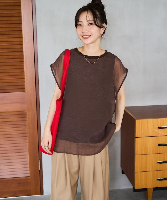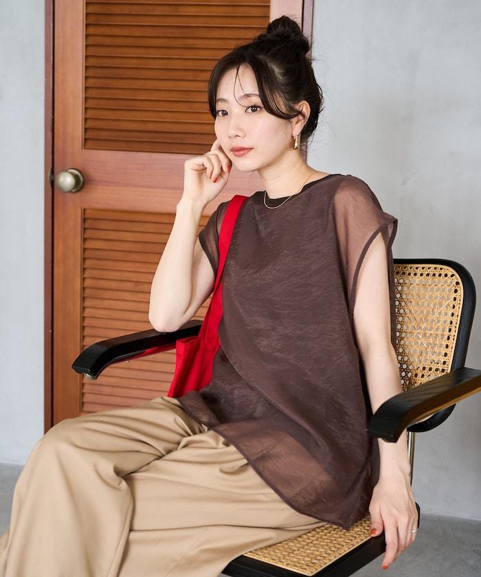 歐根紗的透明感使 T 恤看起來適度優雅,即使搭配休閒褲也不會過於粗糙。
