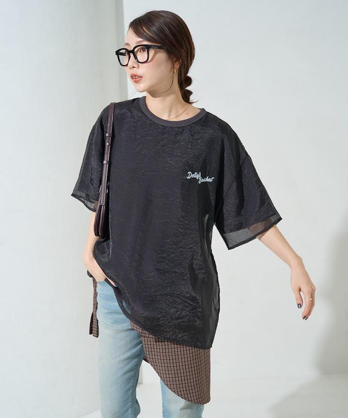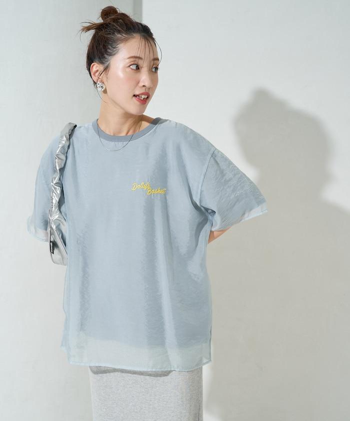 可愛的多層 T 恤,背後飾有歐根紗和刺繡圖案。