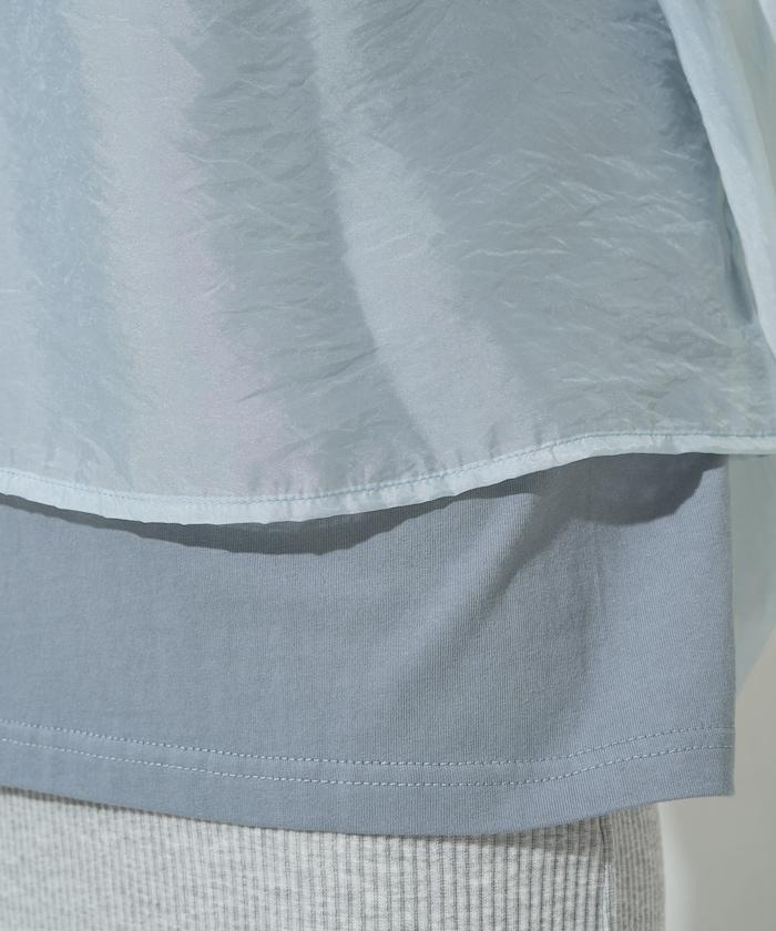 帶organdie和剪裁縫製層疊圖案的插肩短袖 T 恤