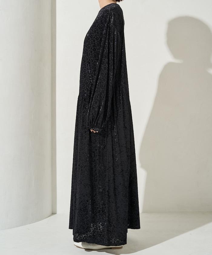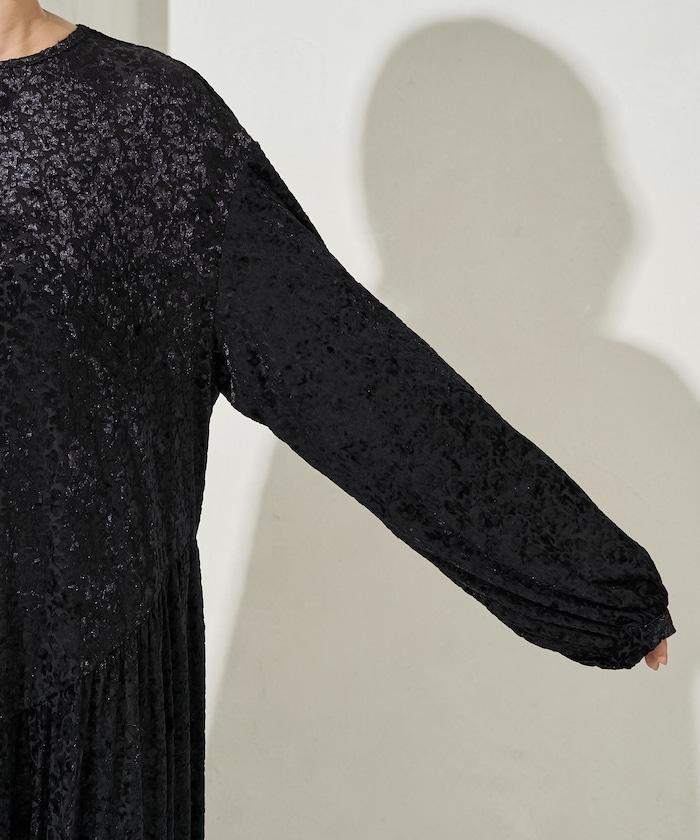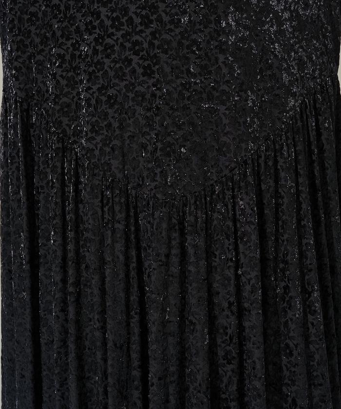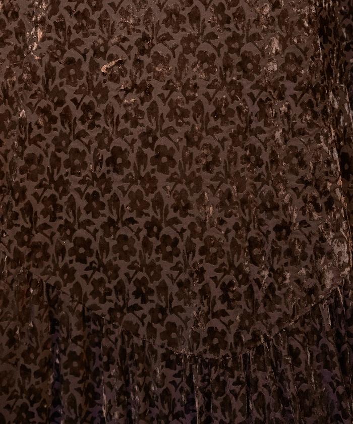 天鵝絨蛋白石面料上的花朵圖案營造出迷人的外觀,高透視度的連衣裙在您移動時熠熠生輝。