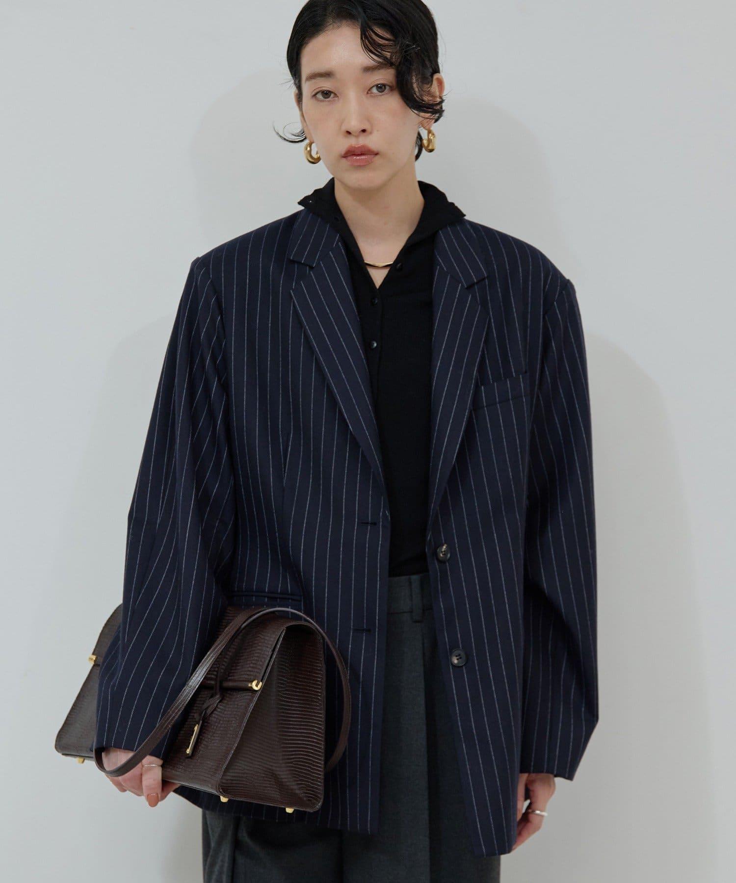 超大號墊肩夾克,腰部塑形,線條柔美。