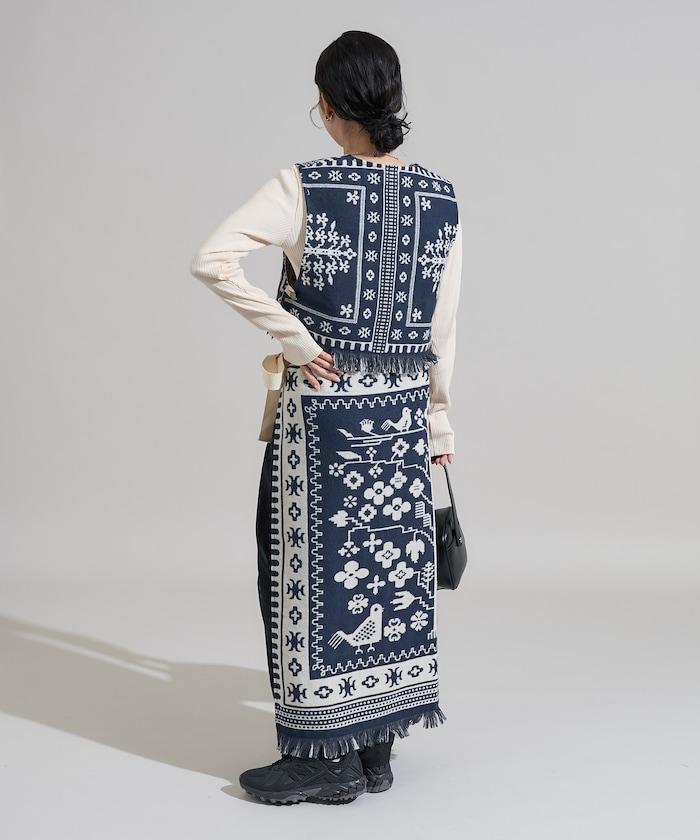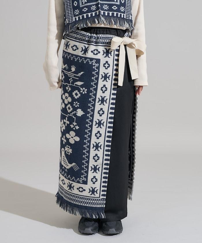 毛毯改造風格裹身半身裙<可搭配套裝>