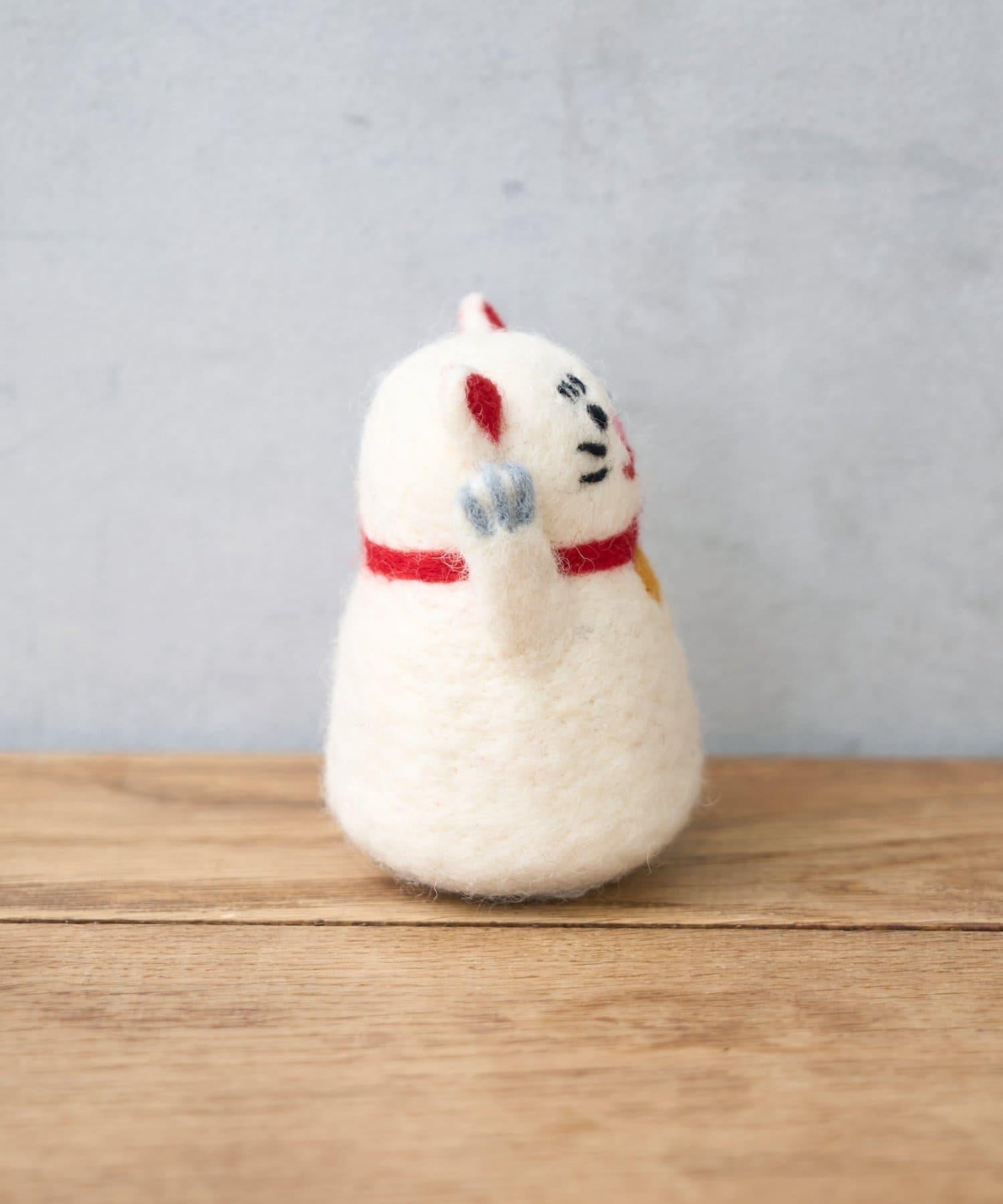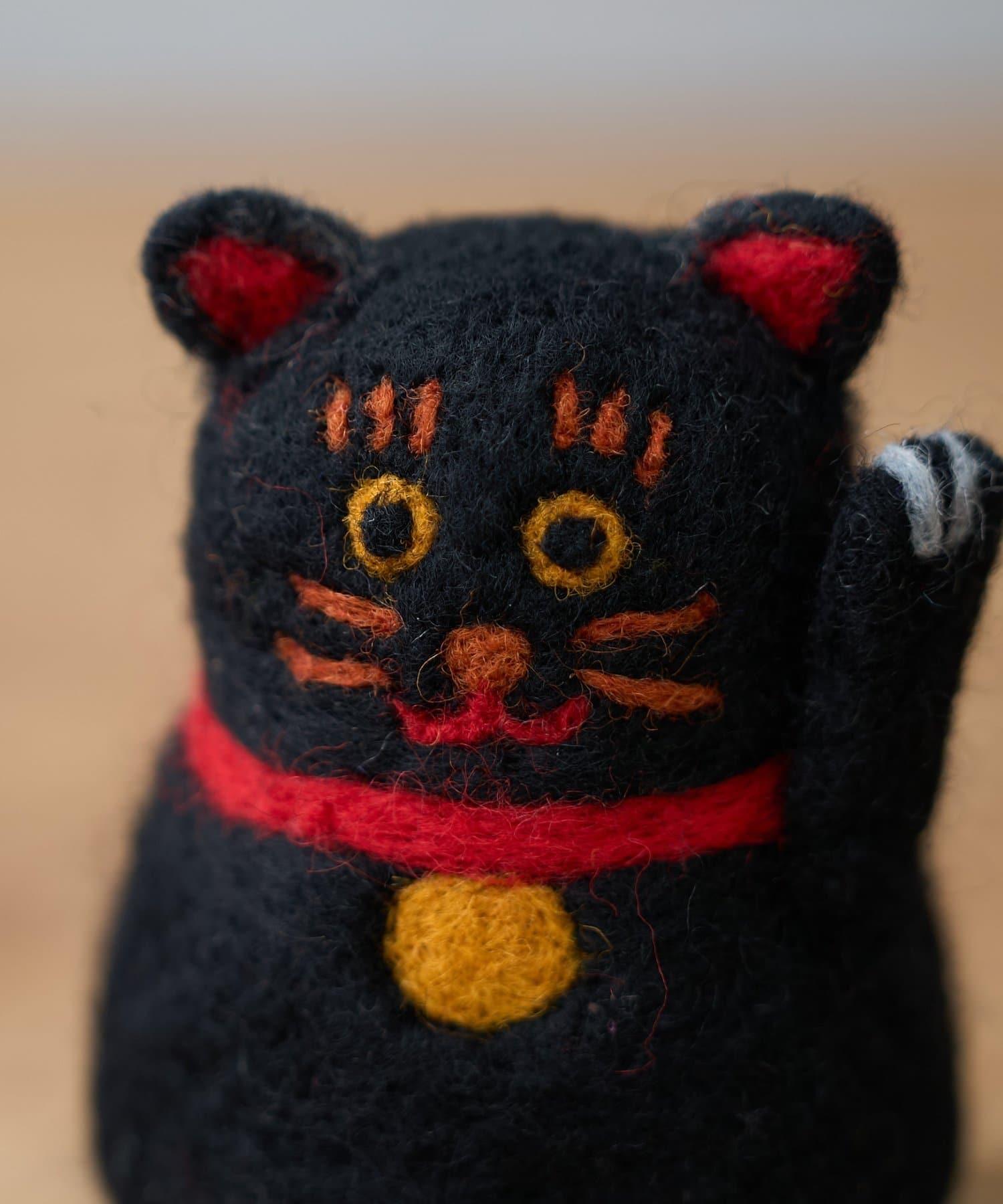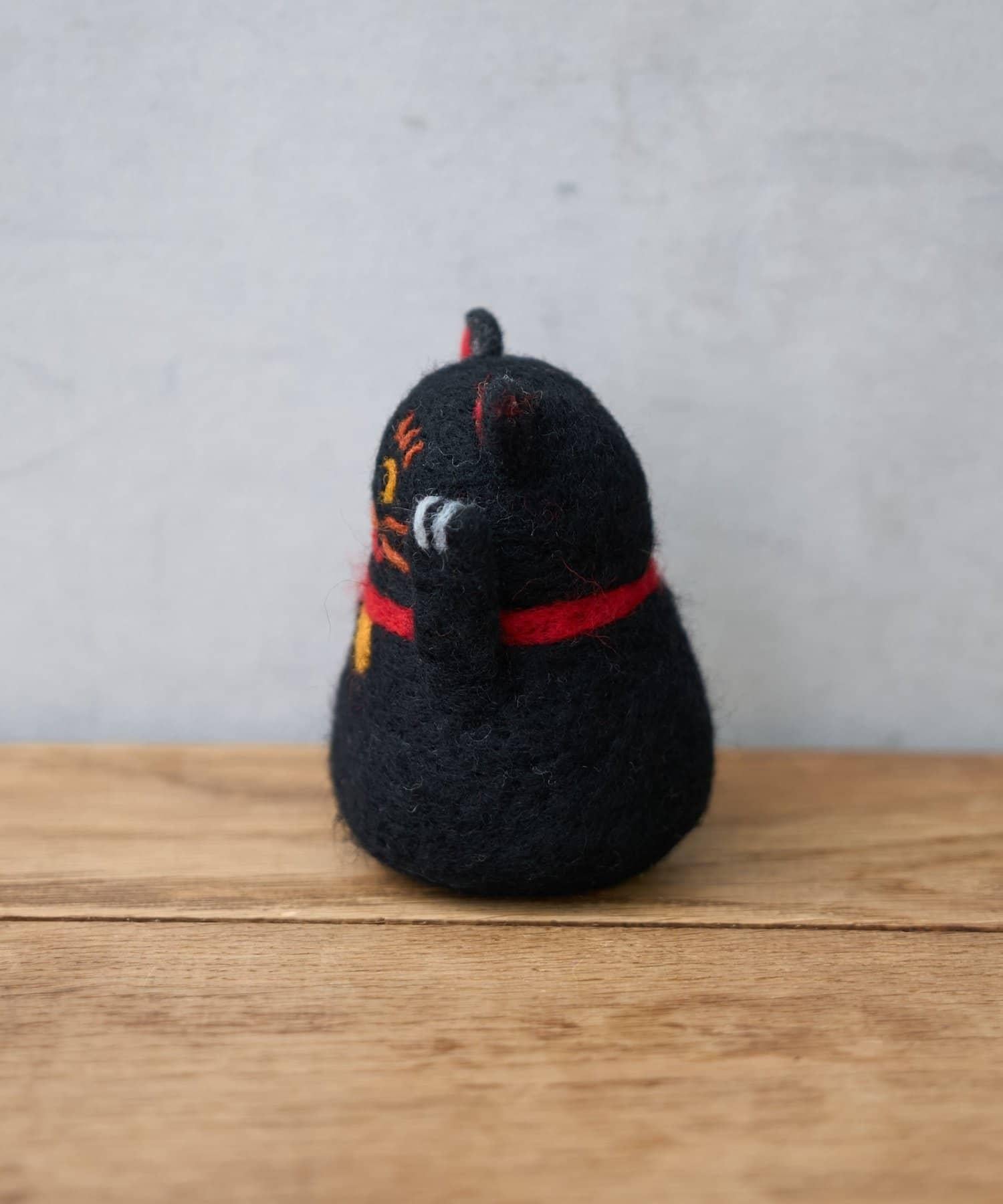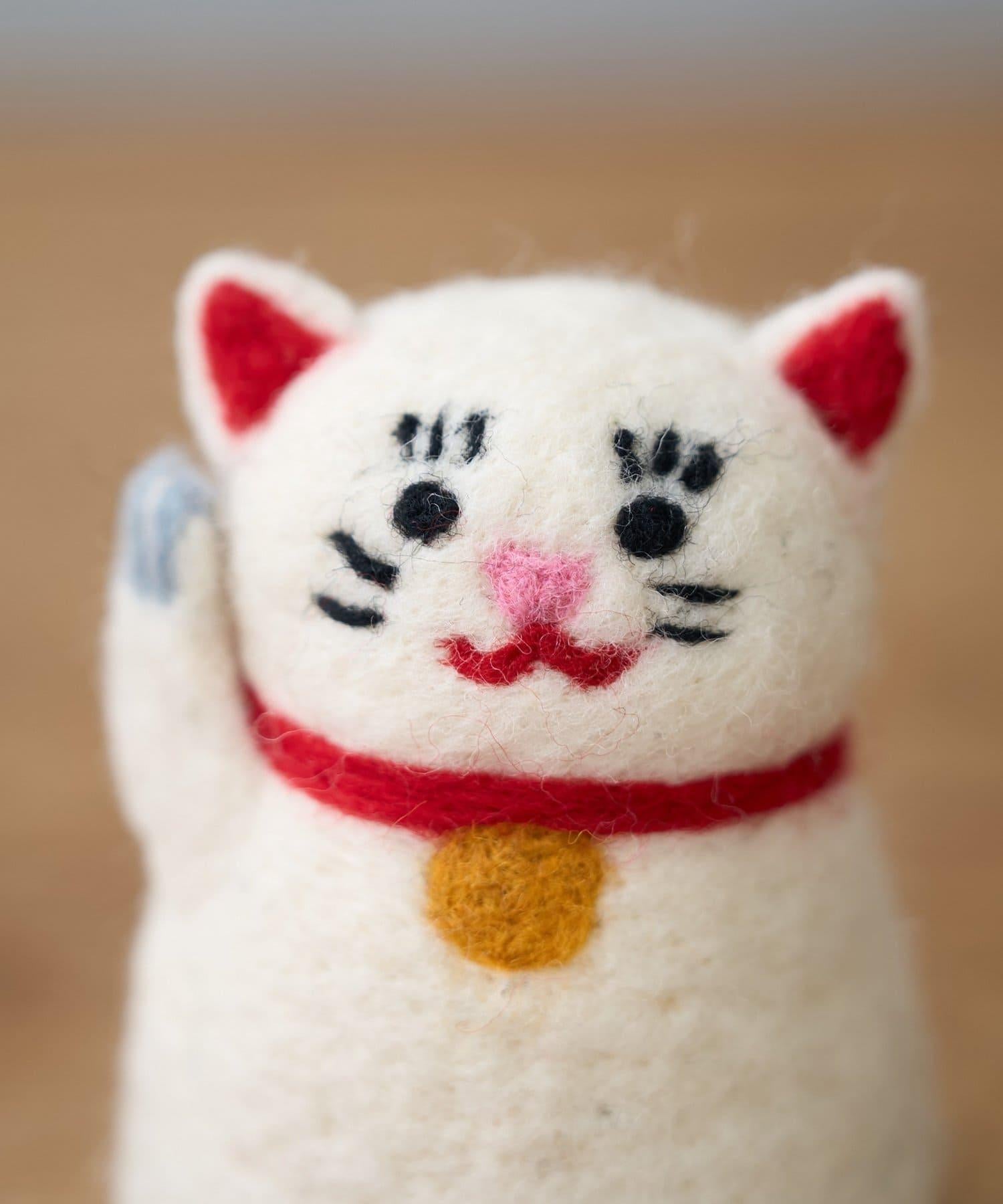 用溫暖的毛氈製作的 Maneki 貓吉祥物。