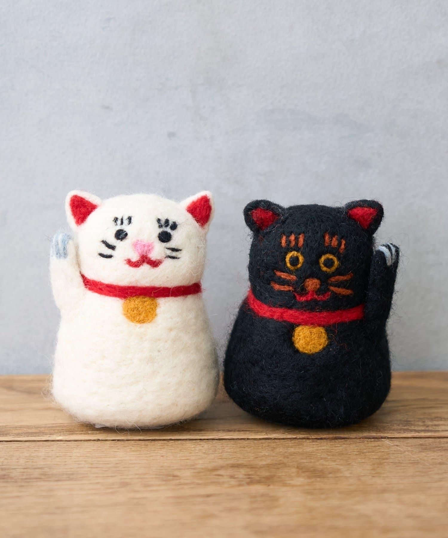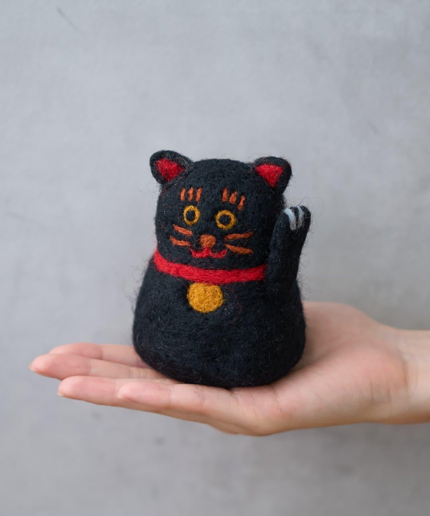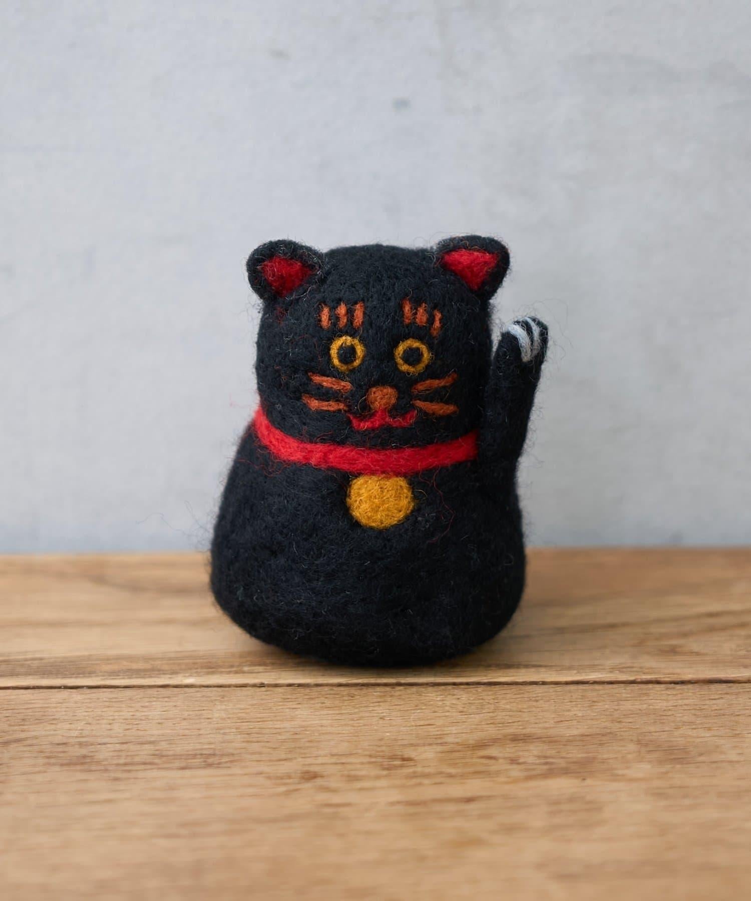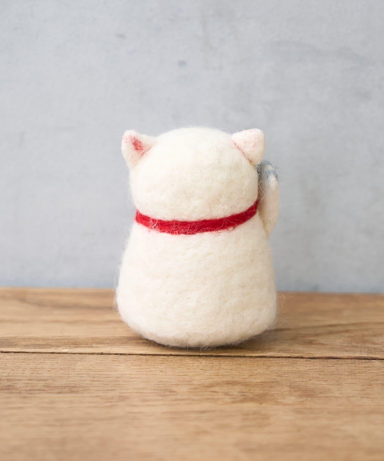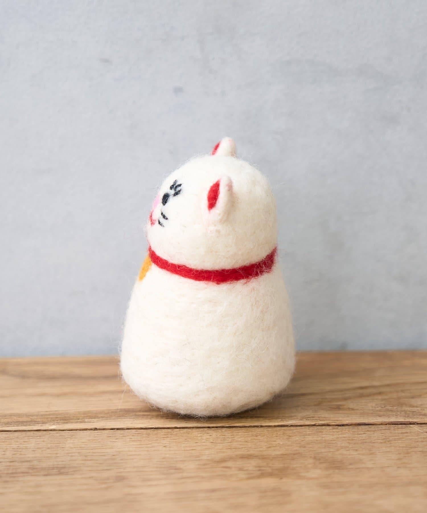 用溫暖的毛氈製作的 Maneki 貓吉祥物。