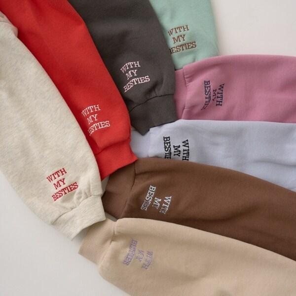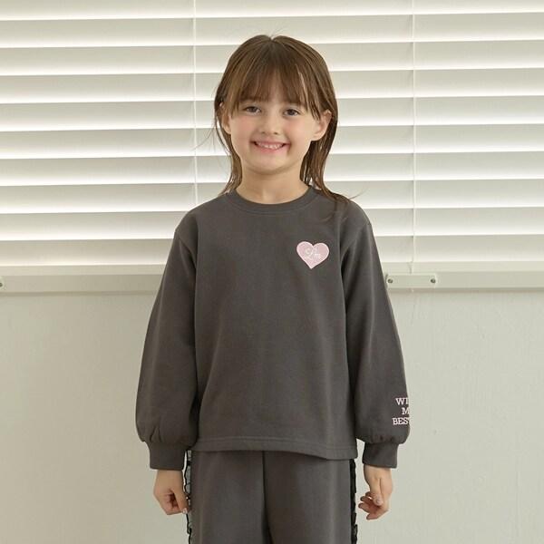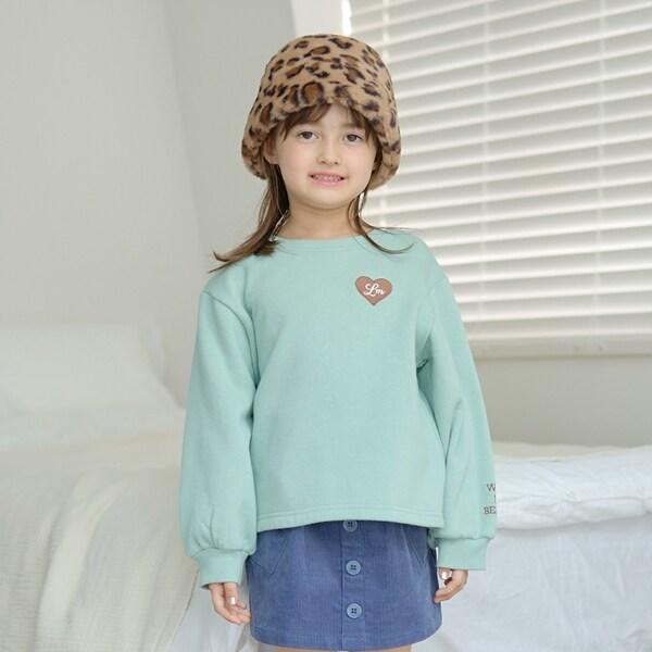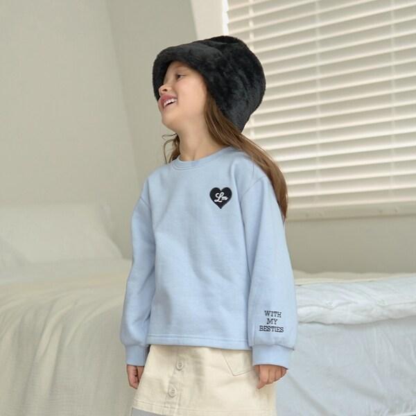 【毛玉バイバイ裡起毛裡毛】愛心刺繡泡泡袖加絨衛衣