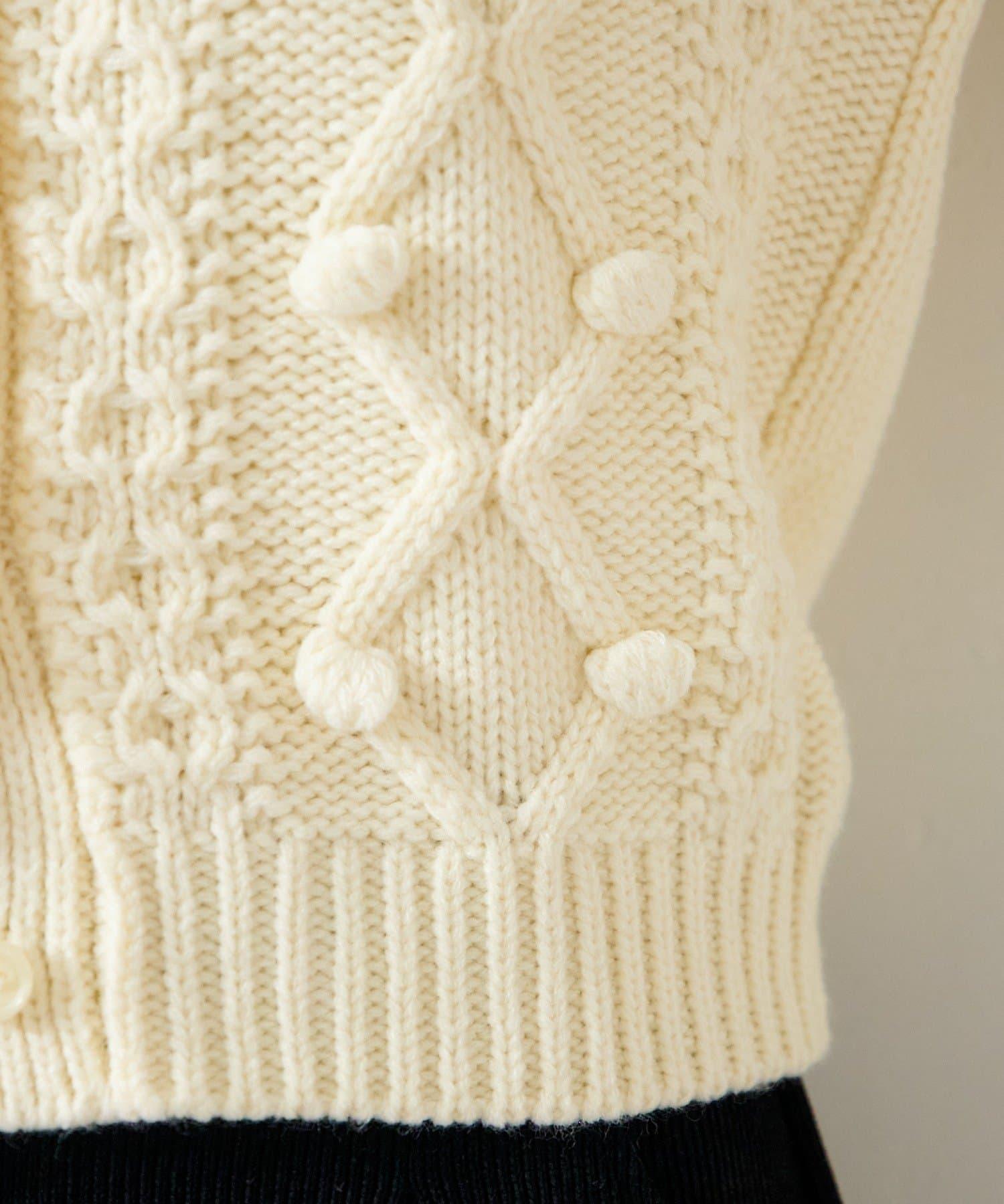 立體的絨球裝飾與優雅的針織圖案相結合,打造出一件極具存在感的單品。
