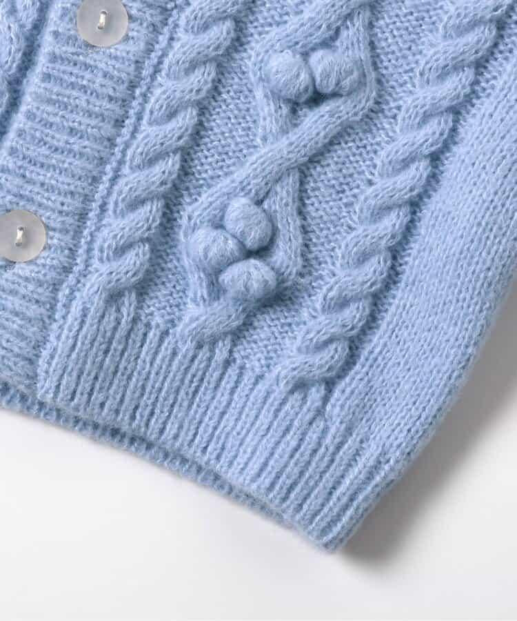 apres les cours "Pom-Pom Knit Baby Cardigan "是一款方便的單品,在寒冷時可快速穿上。可與內衣*疊穿。