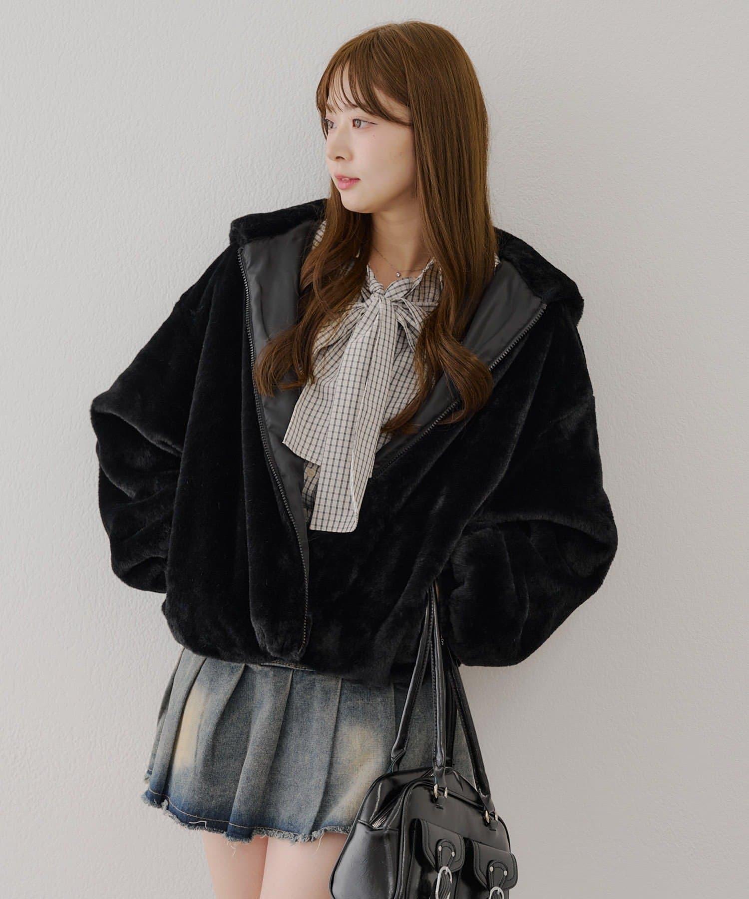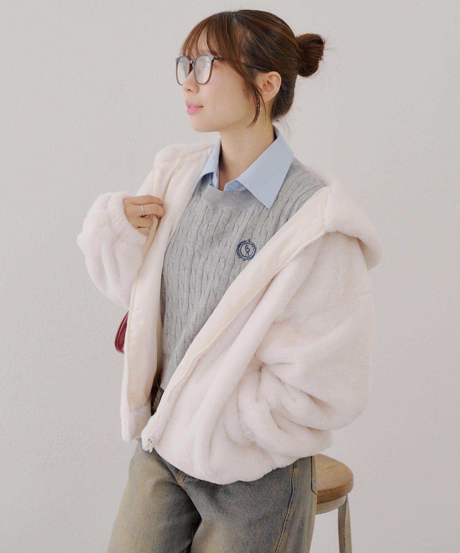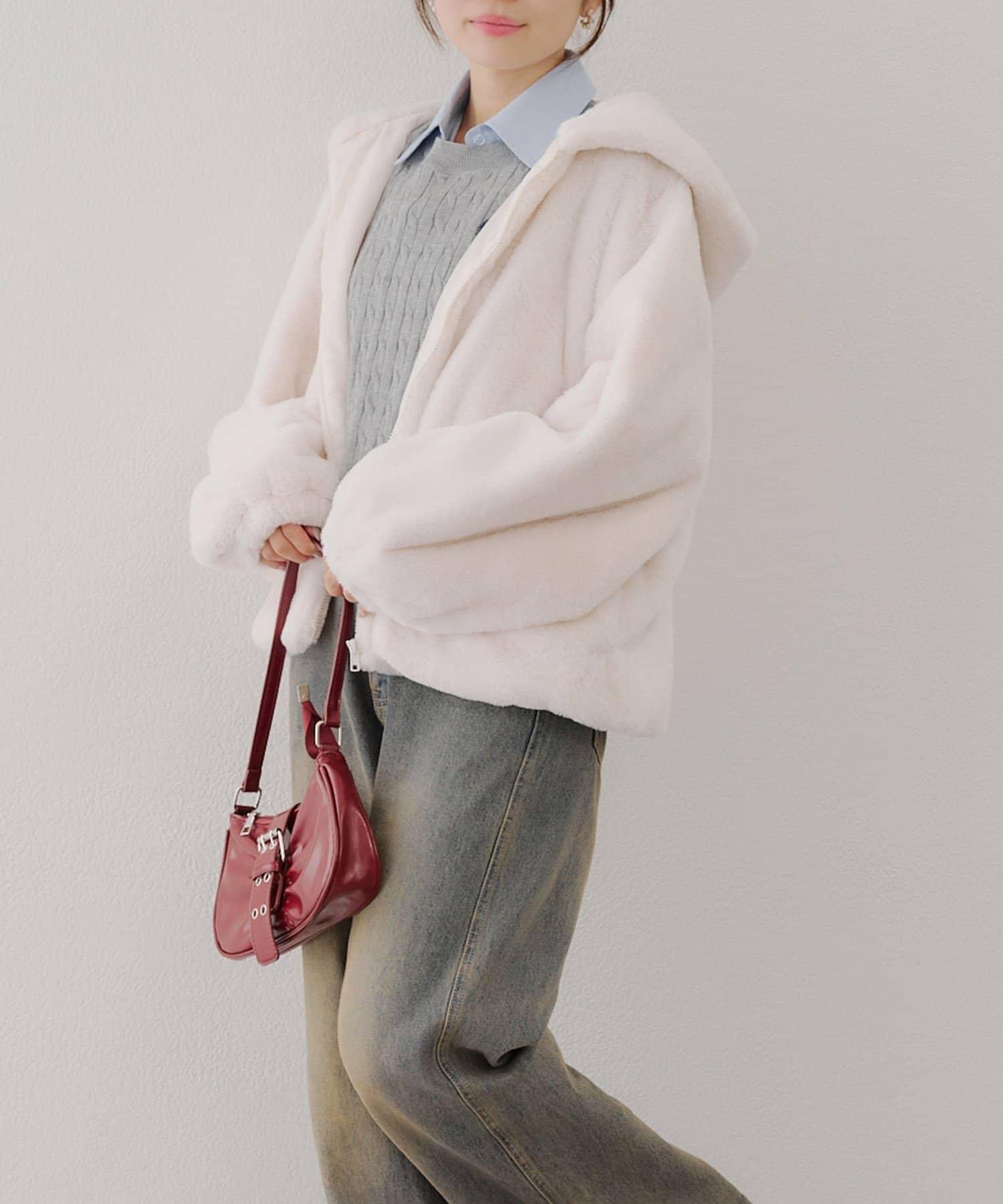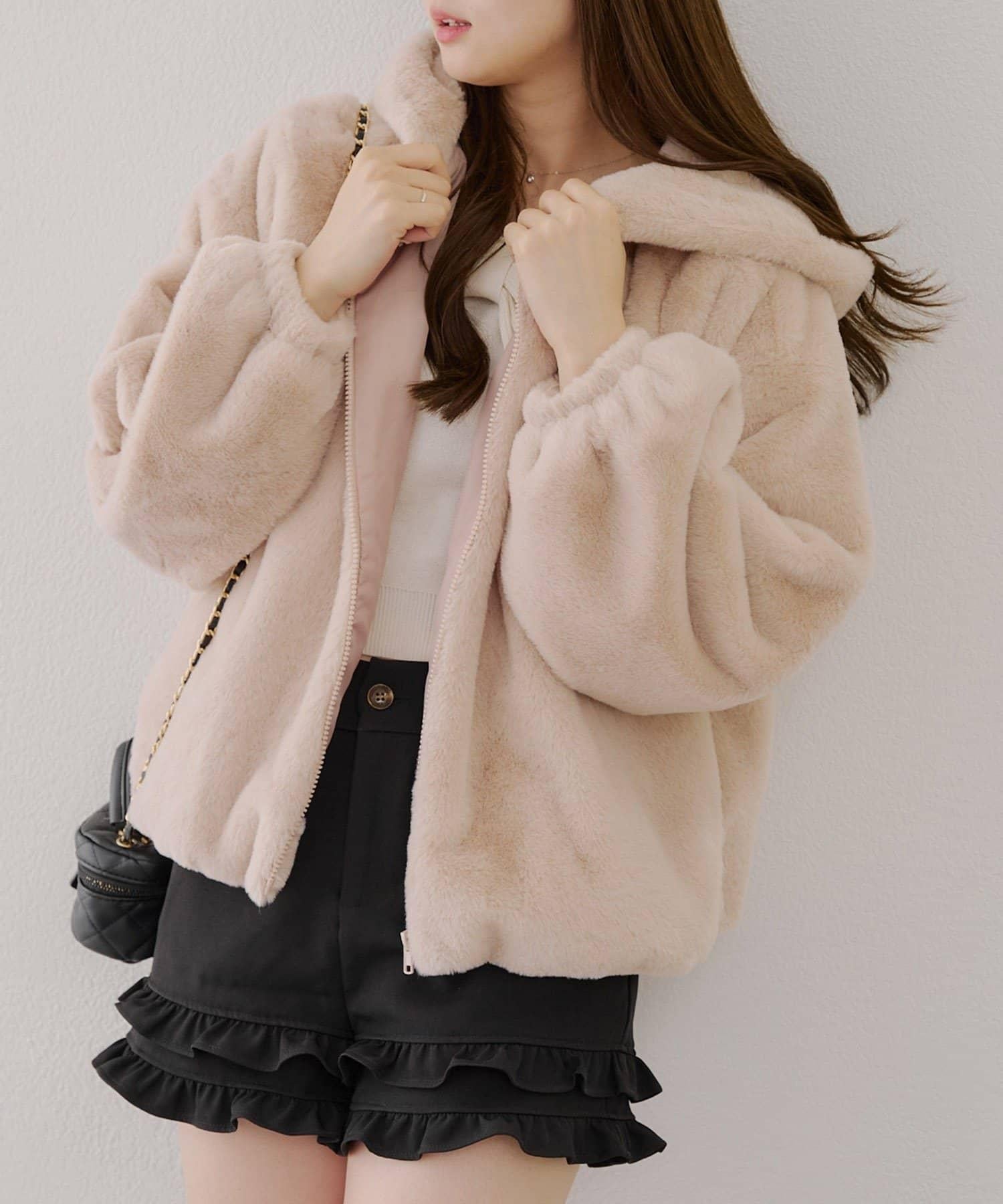 寒冷天氣裡的可愛與溫暖♪帶兜帽的毛皮罩衫