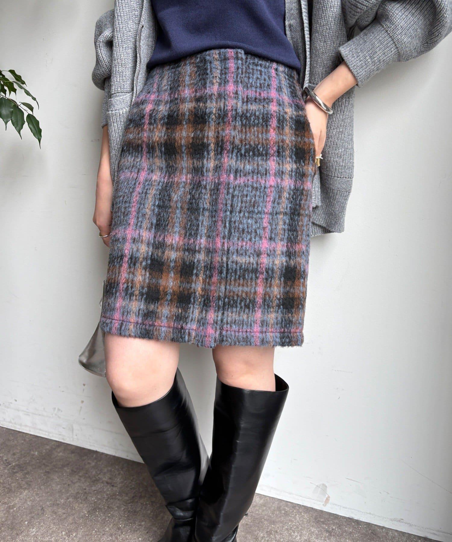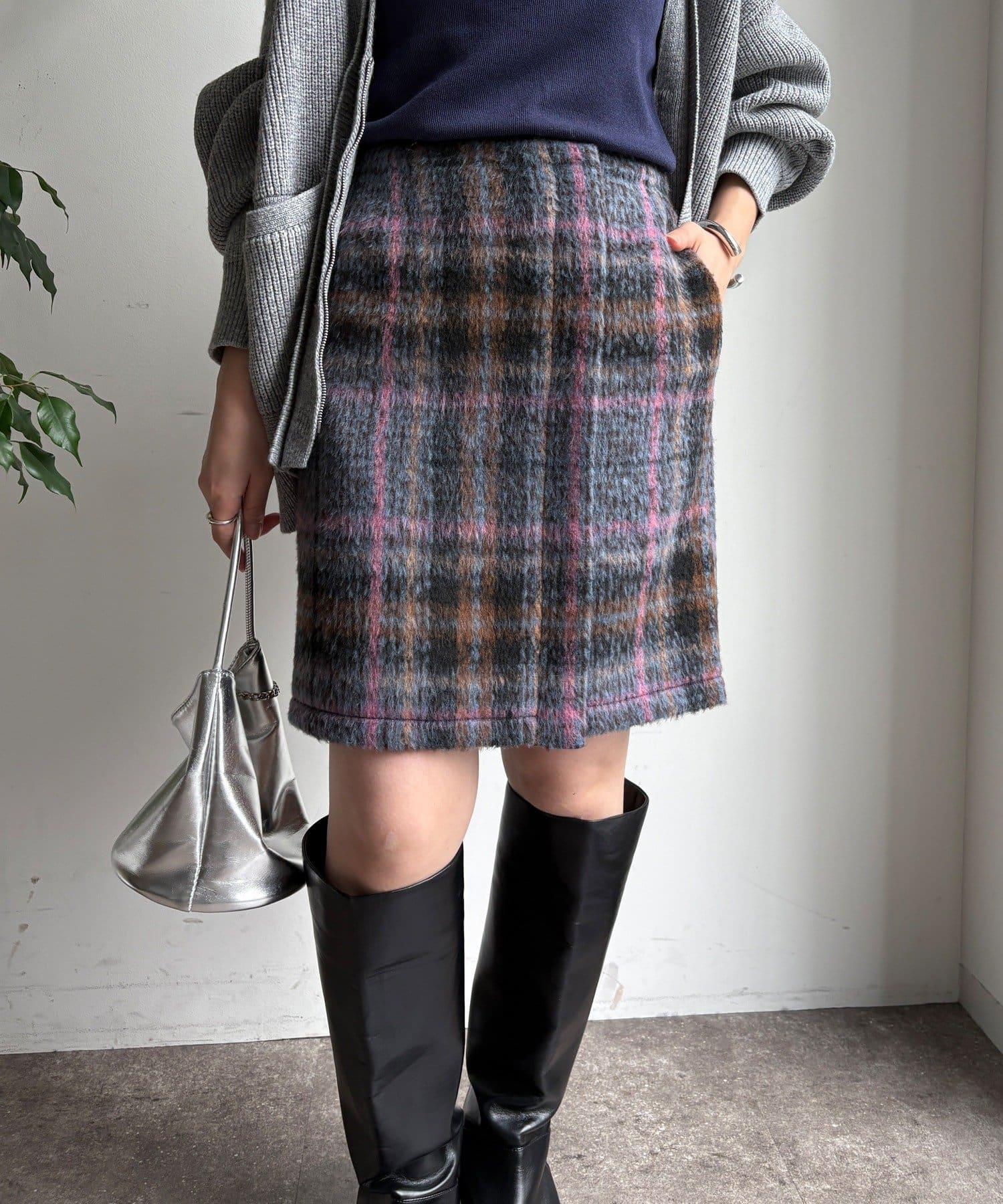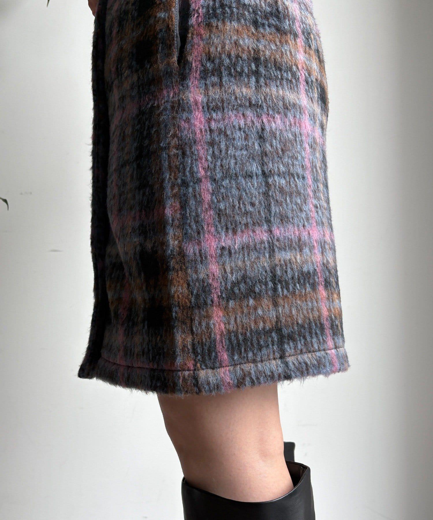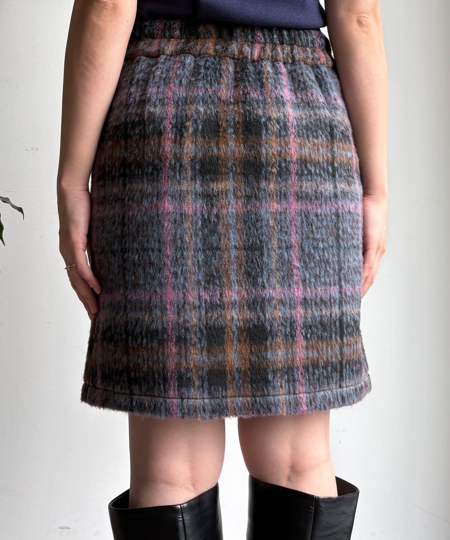 毛絨格紋迷你裙