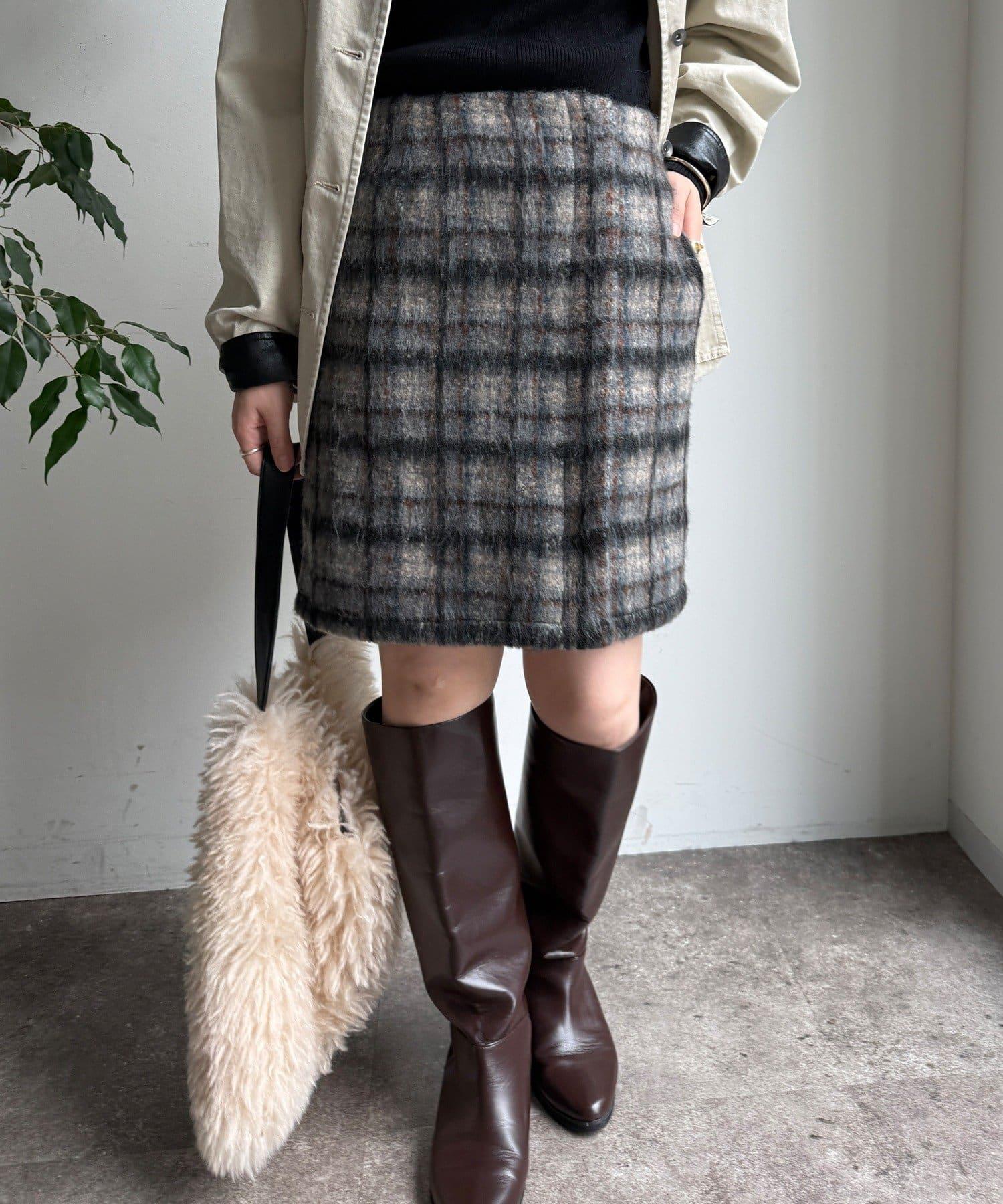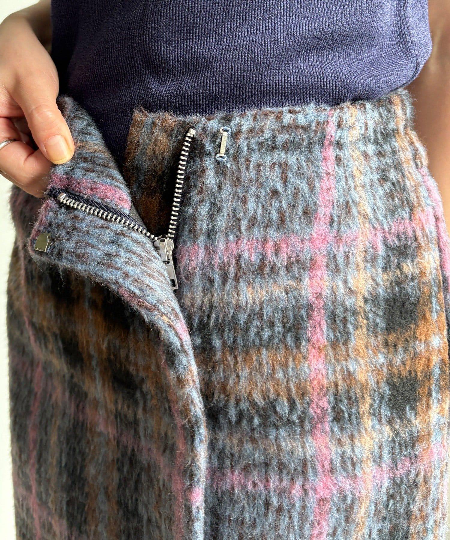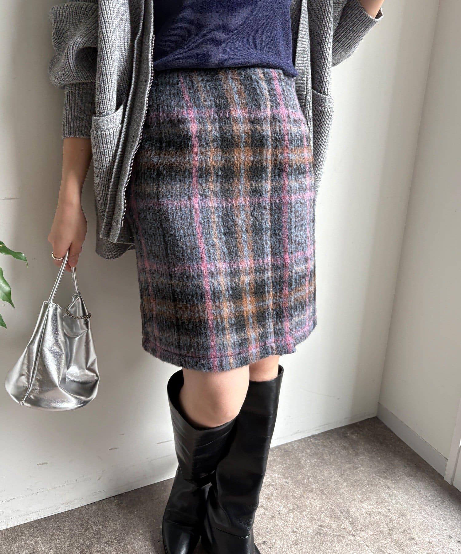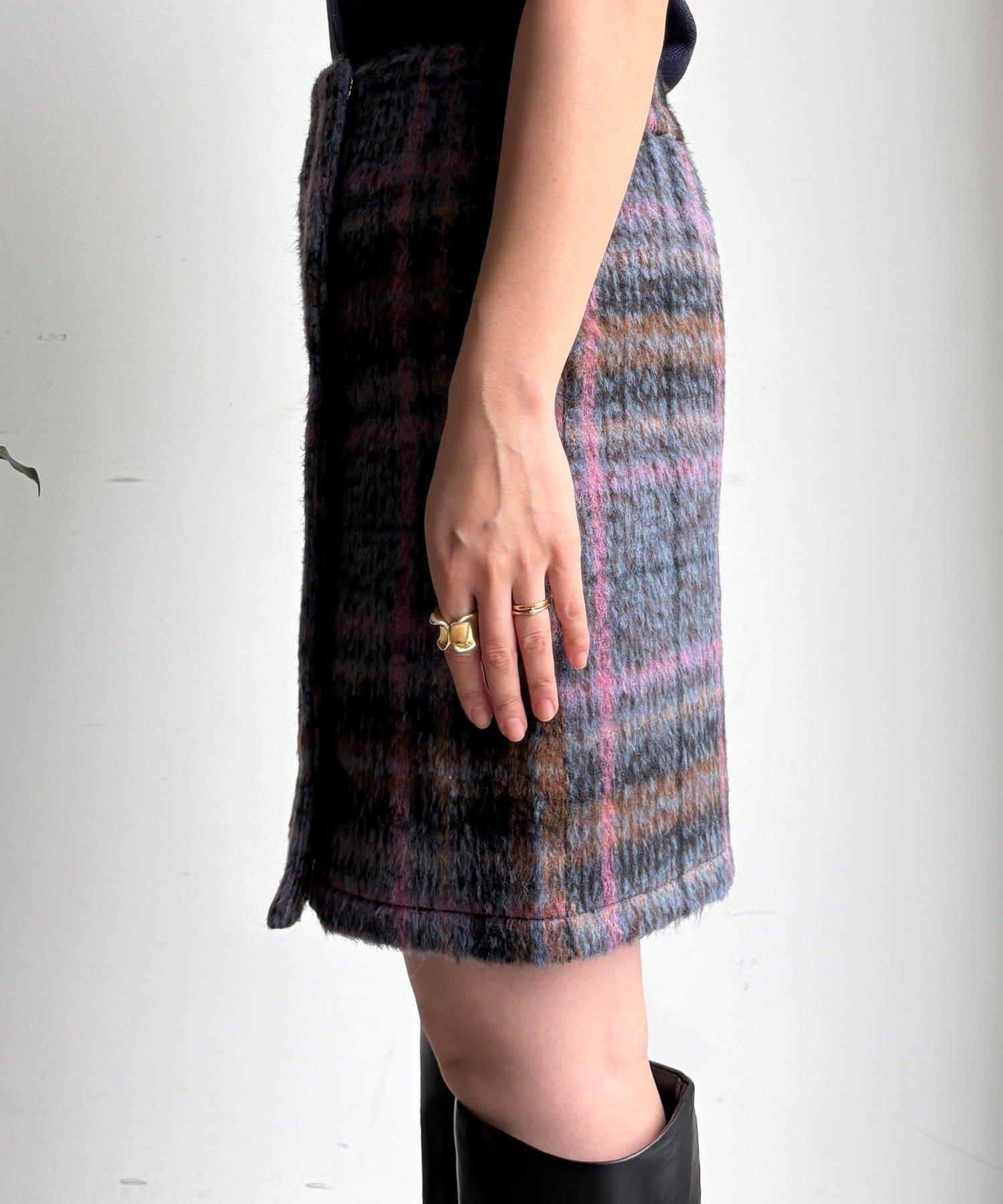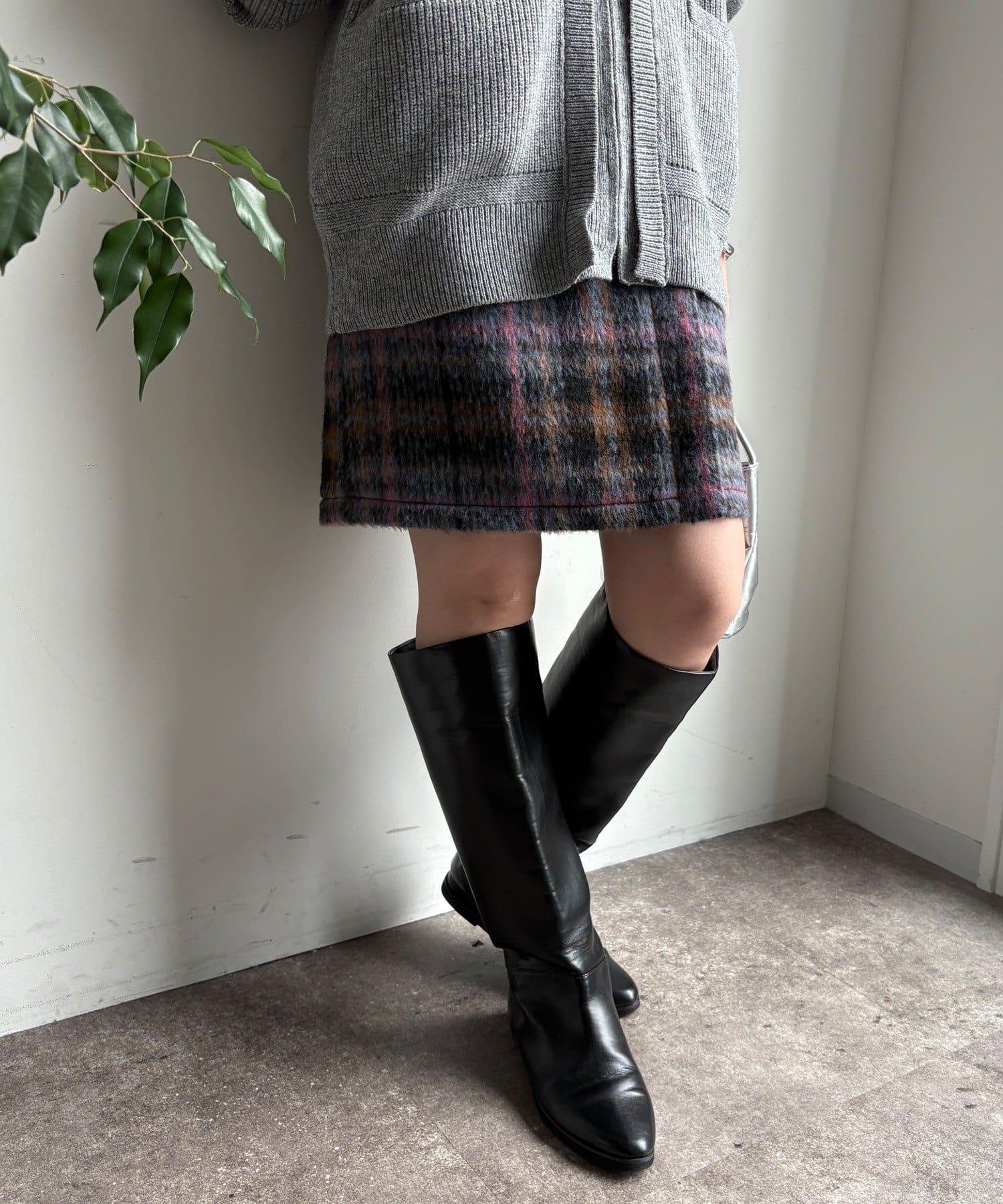 毛絨格紋迷你裙