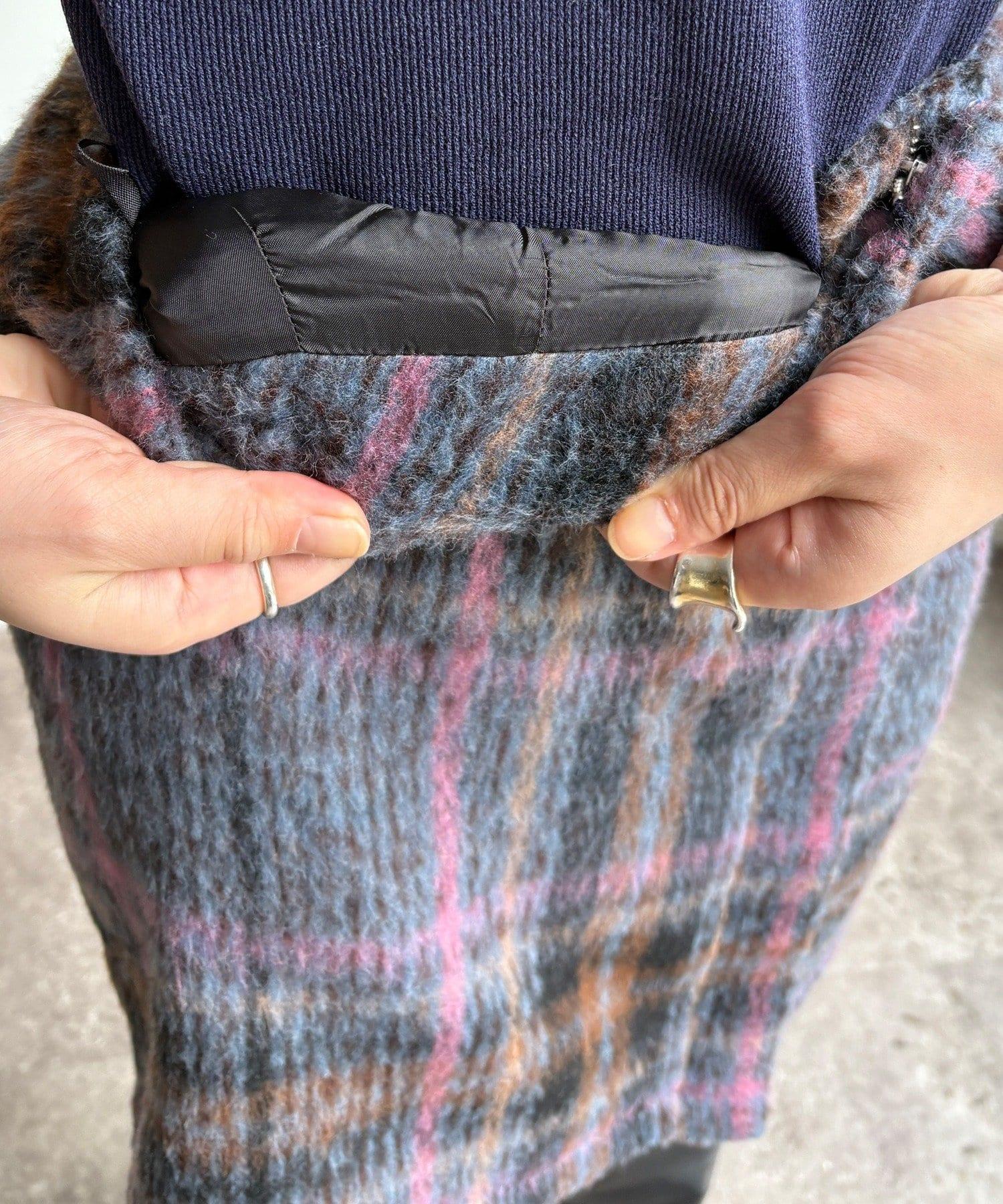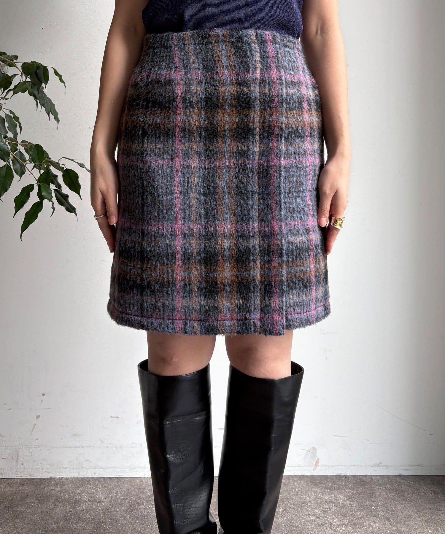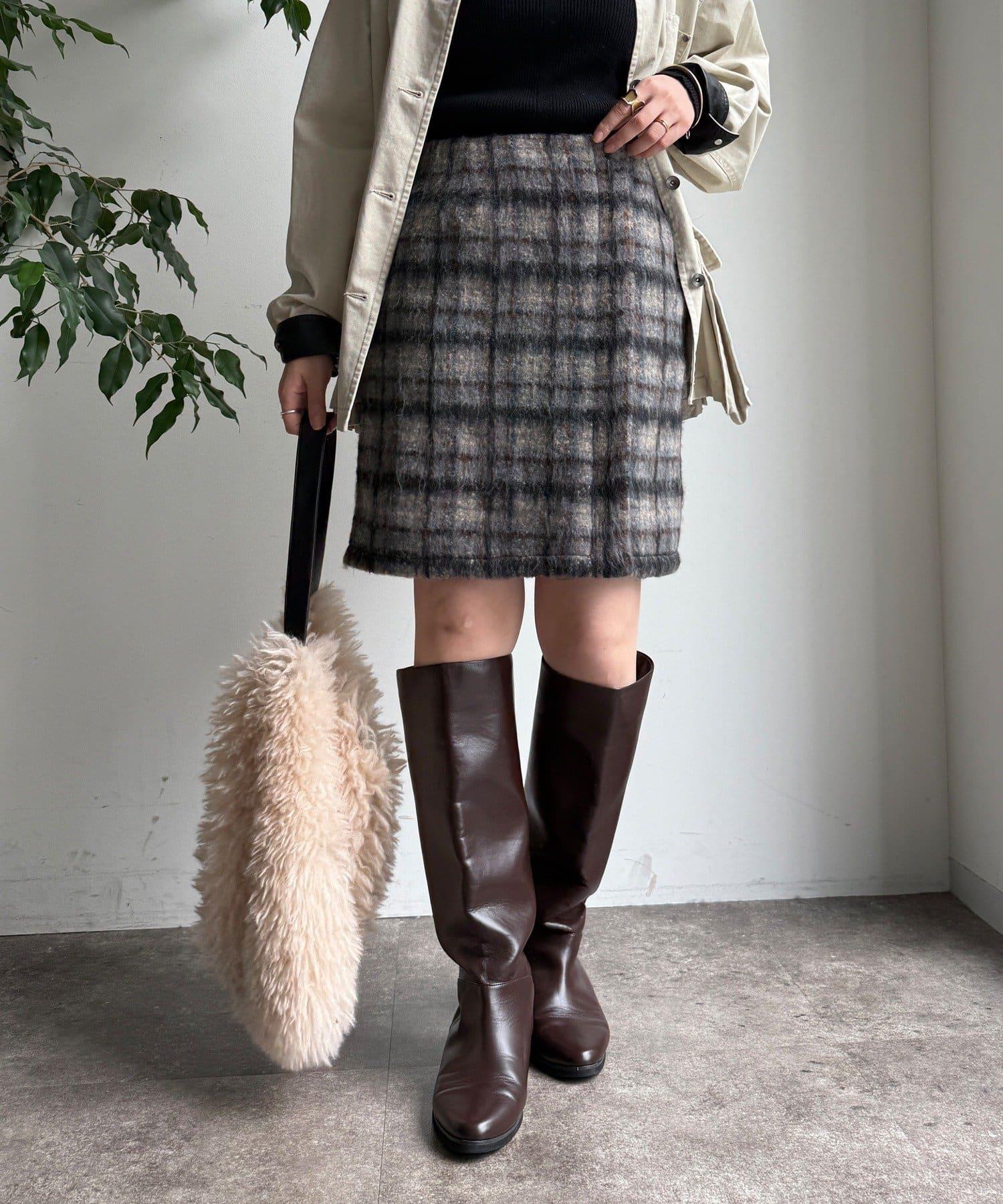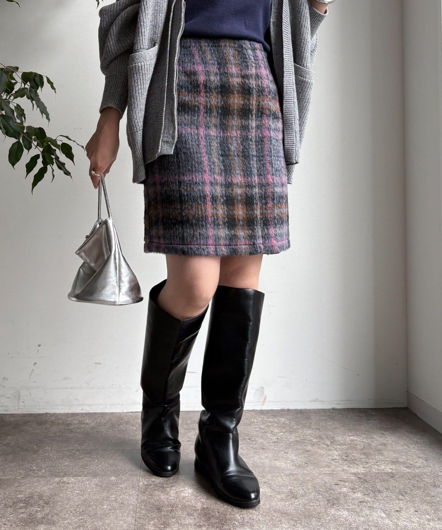毛絨格紋迷你裙
