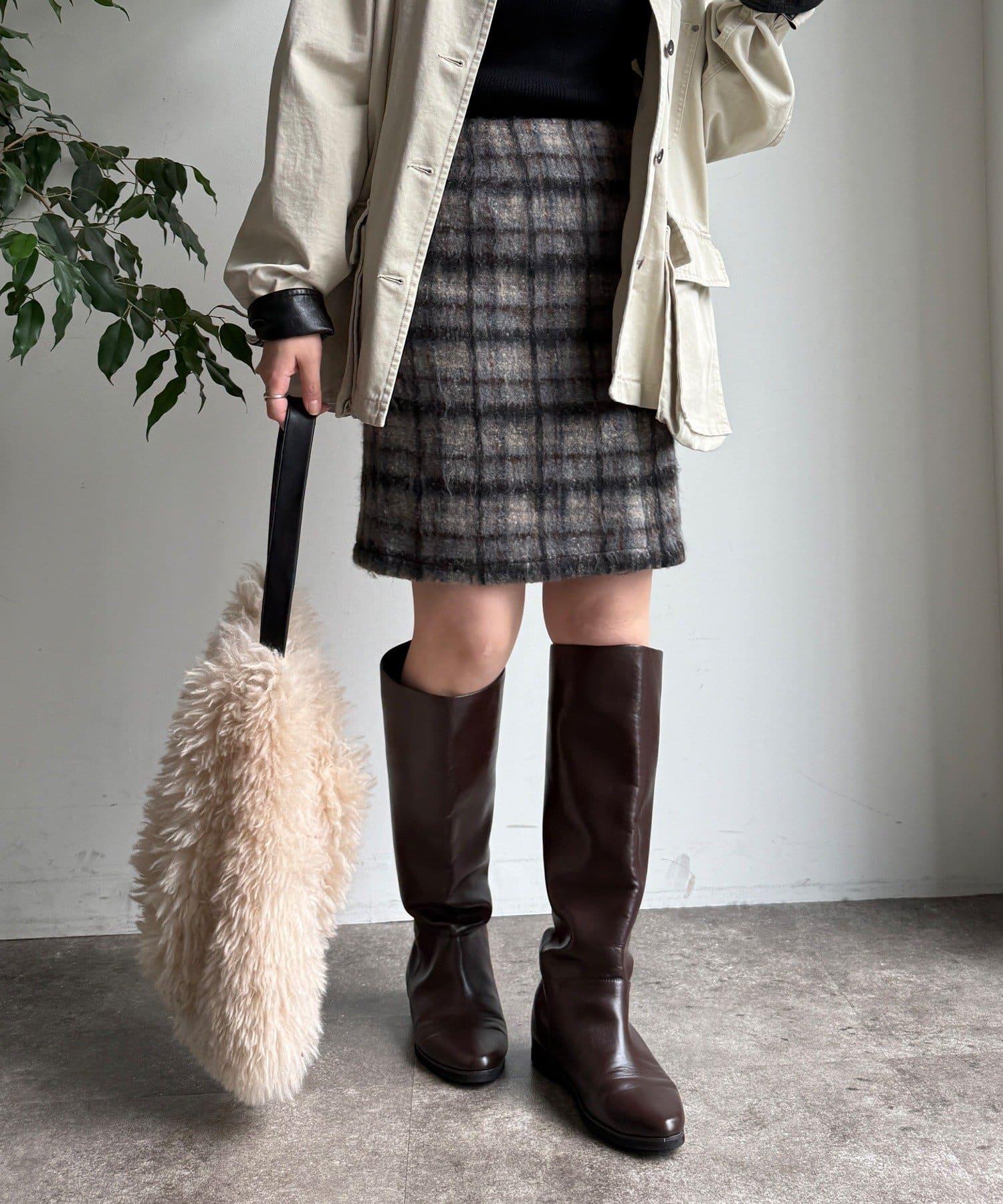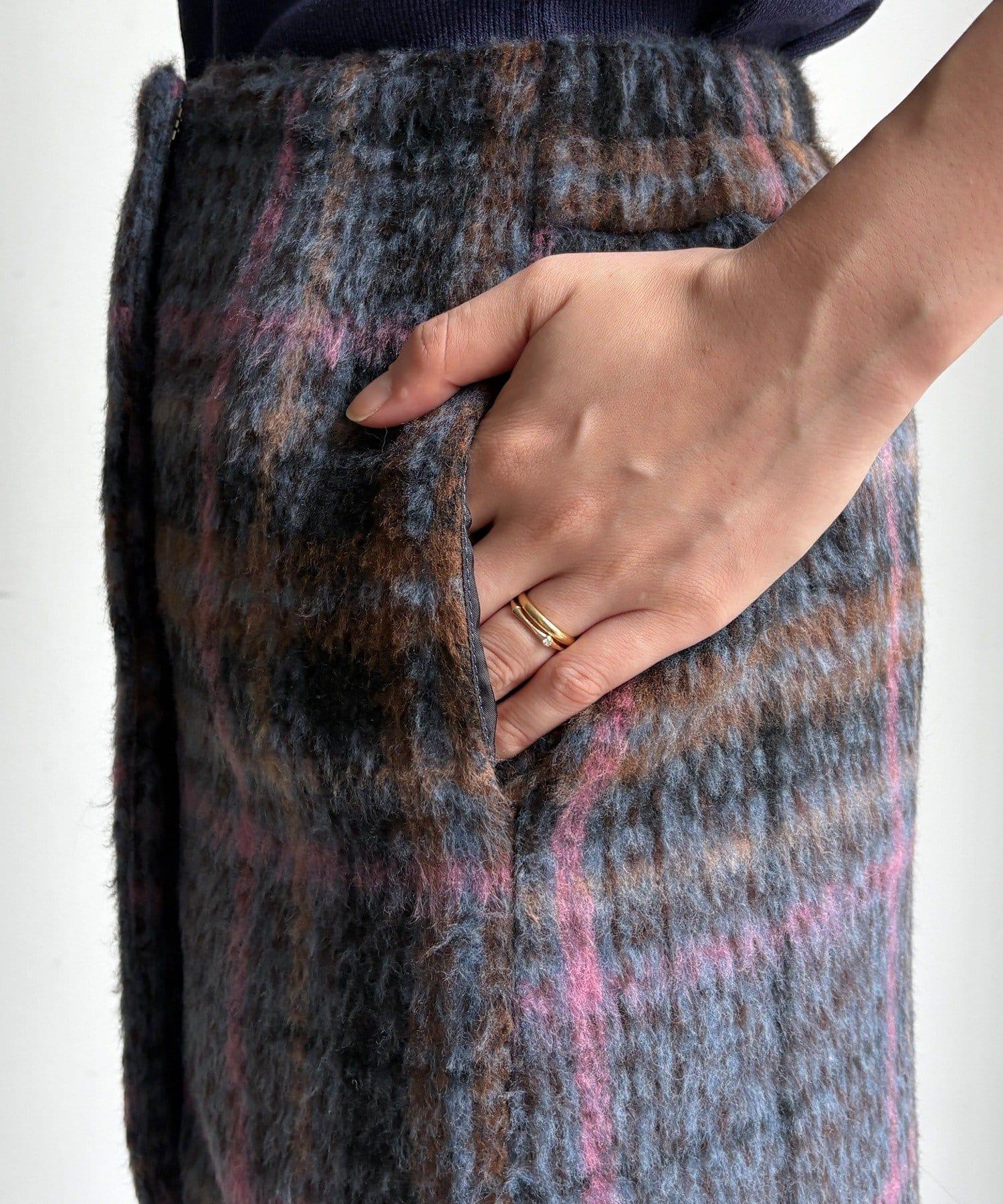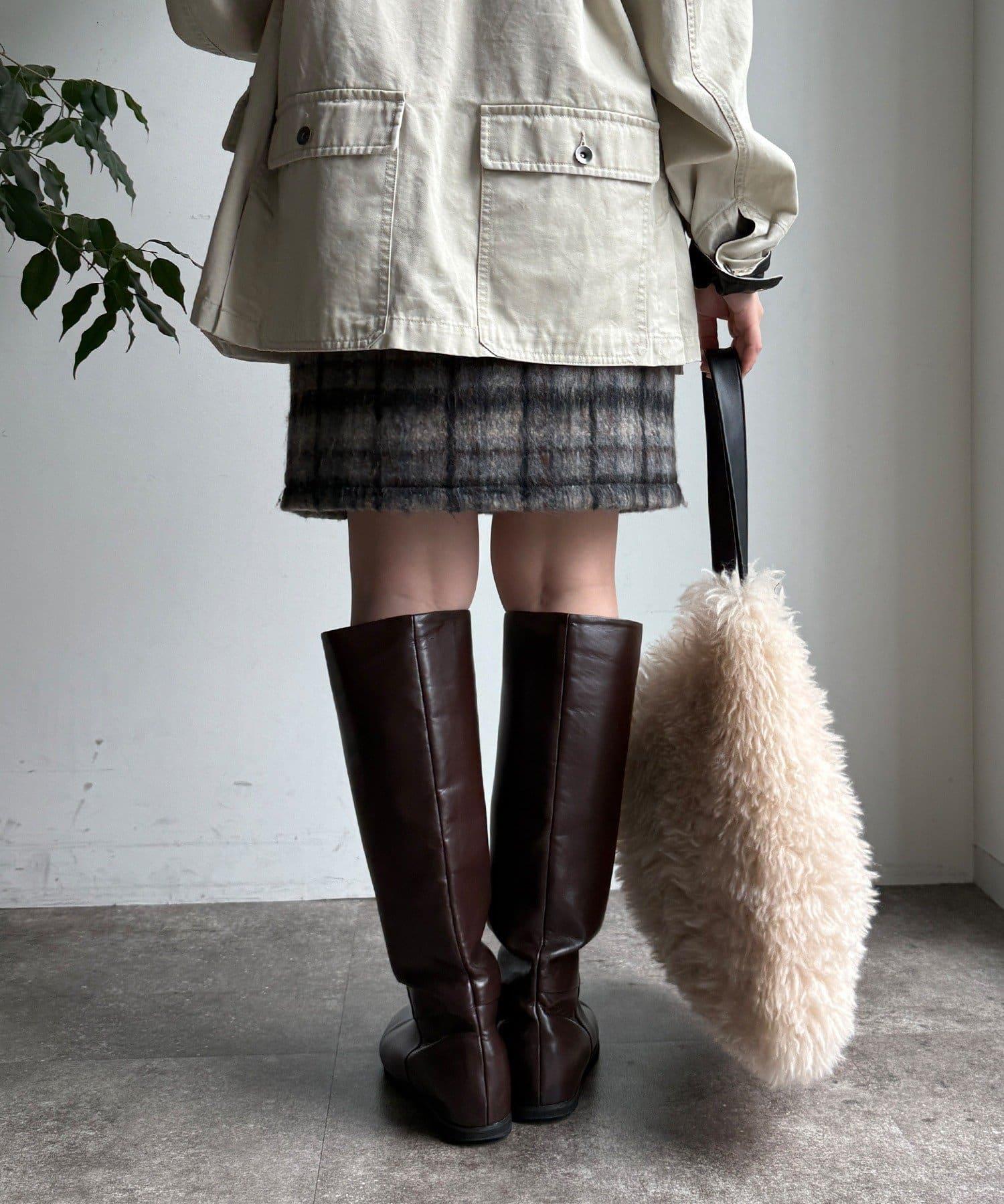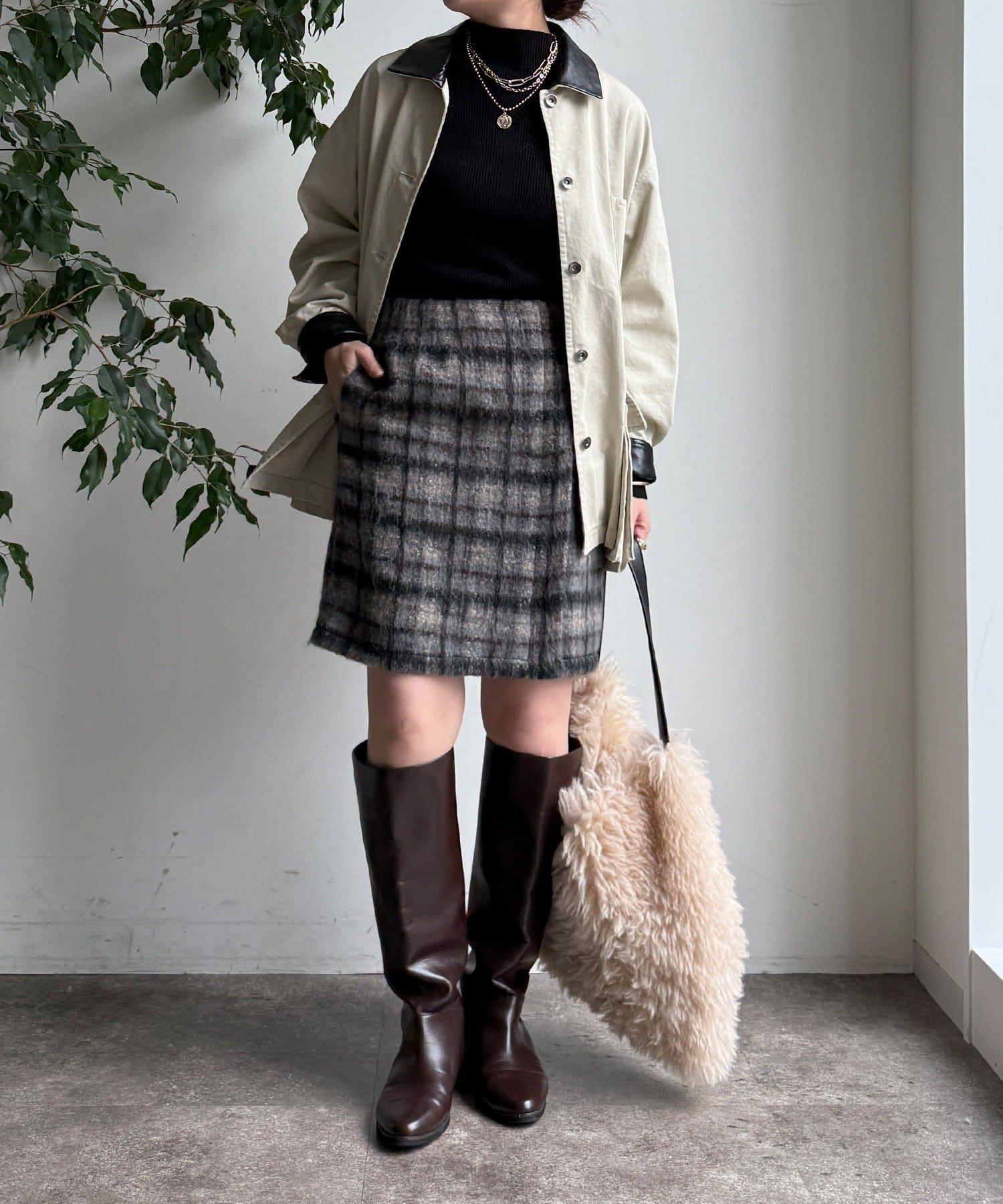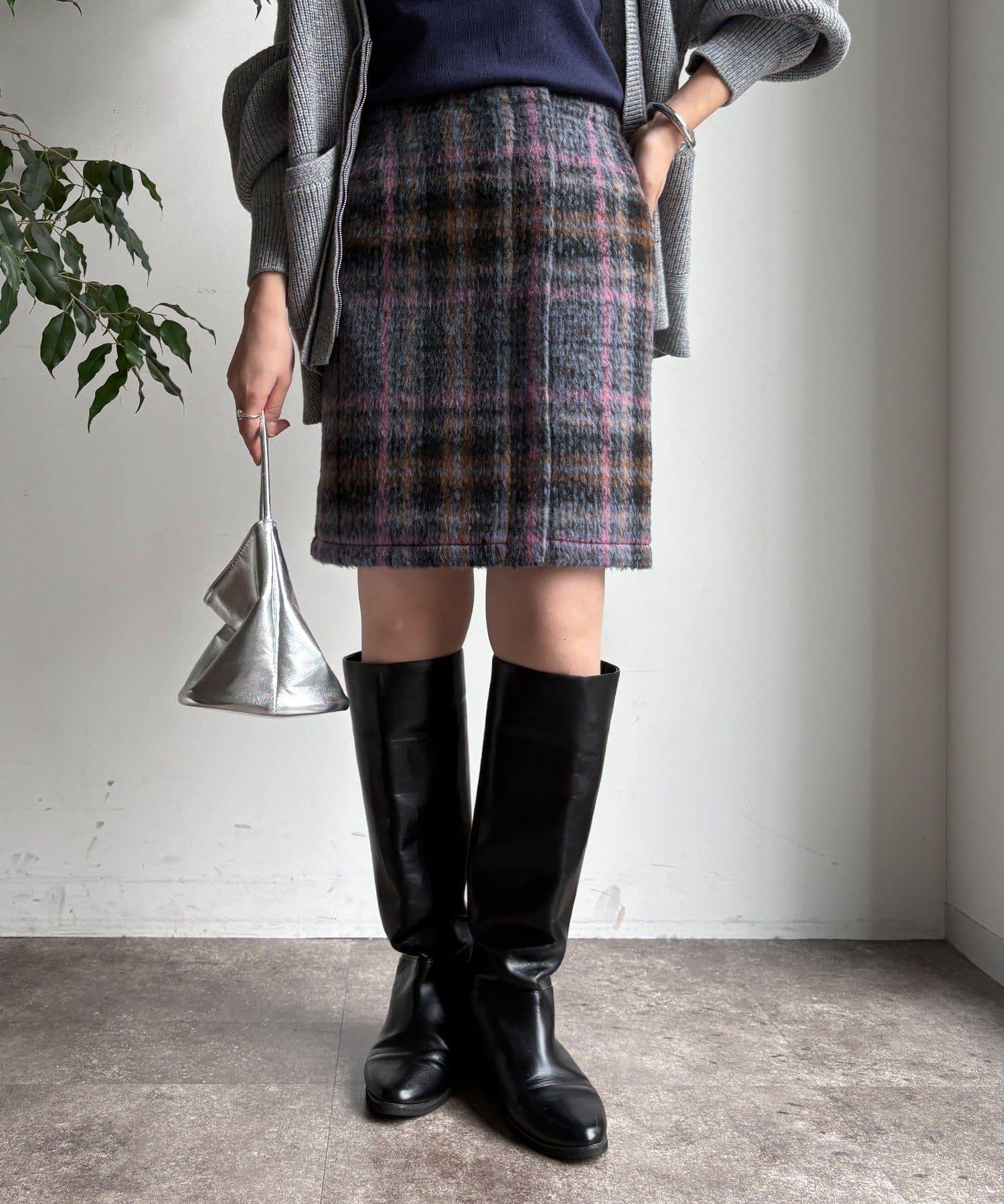毛絨格紋迷你裙