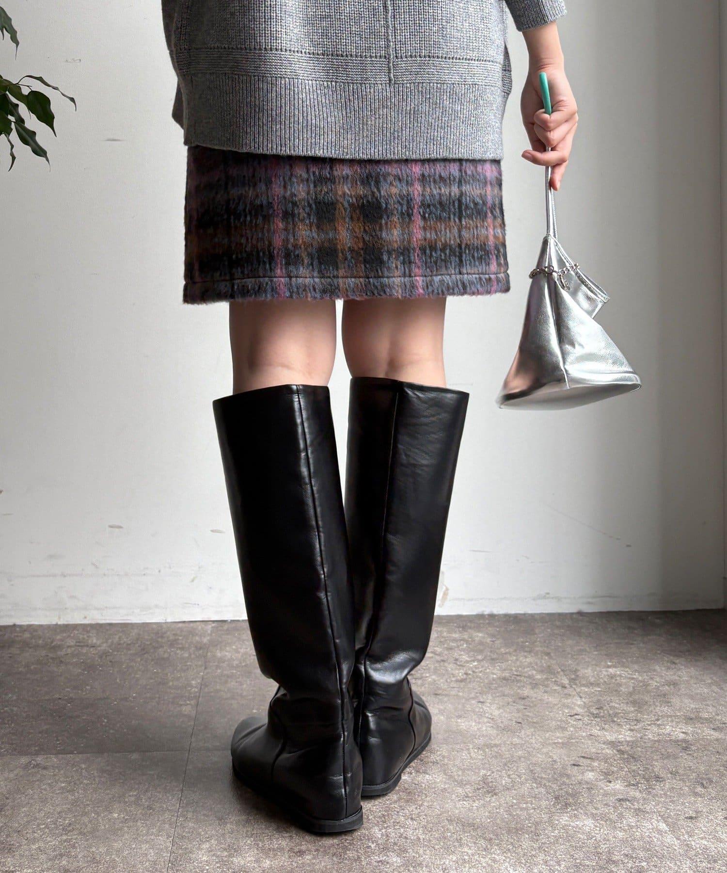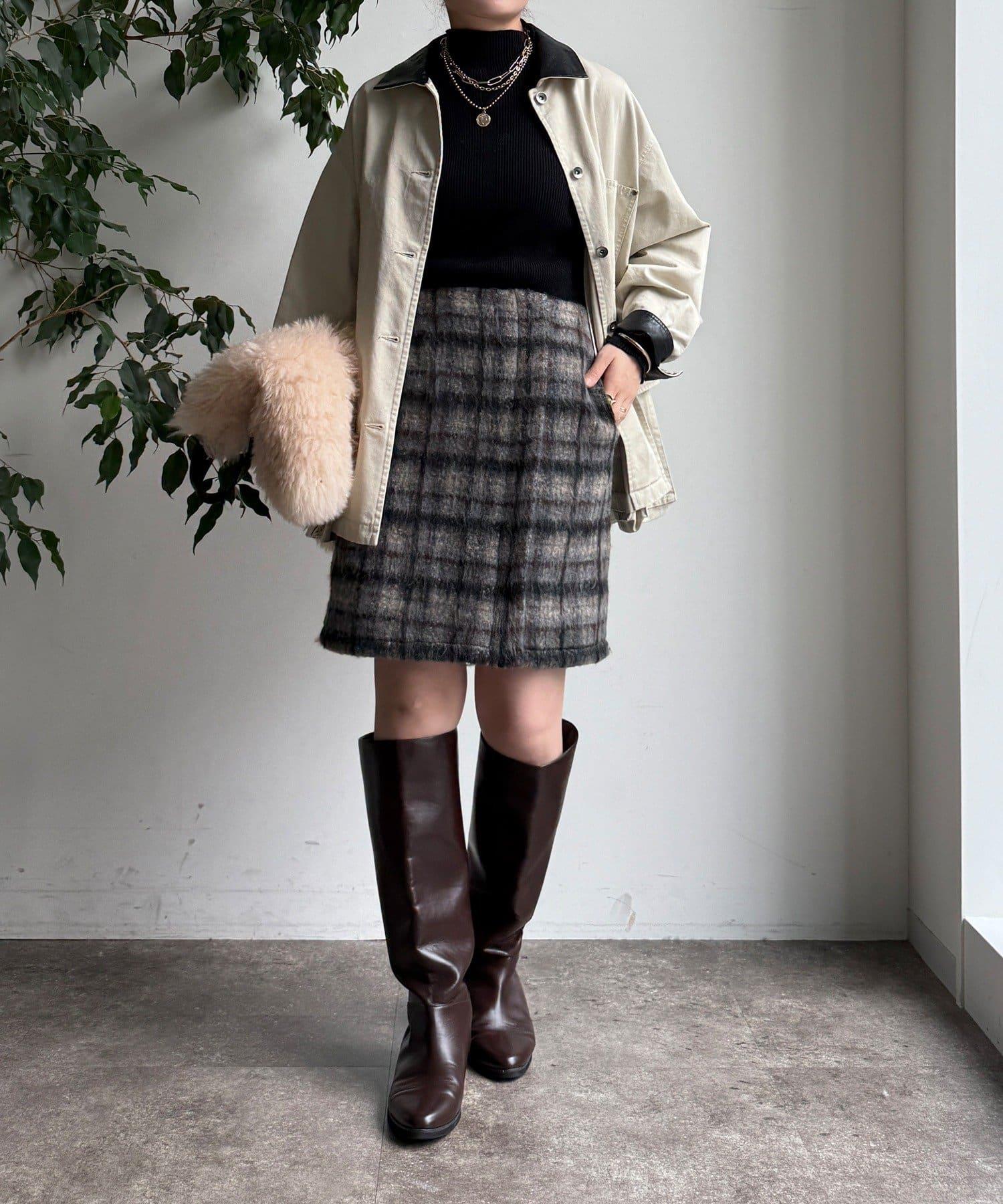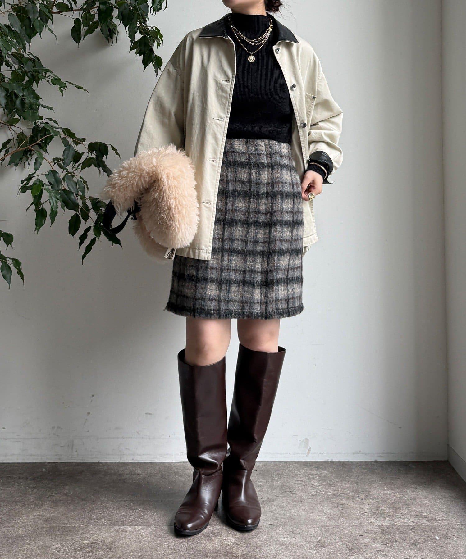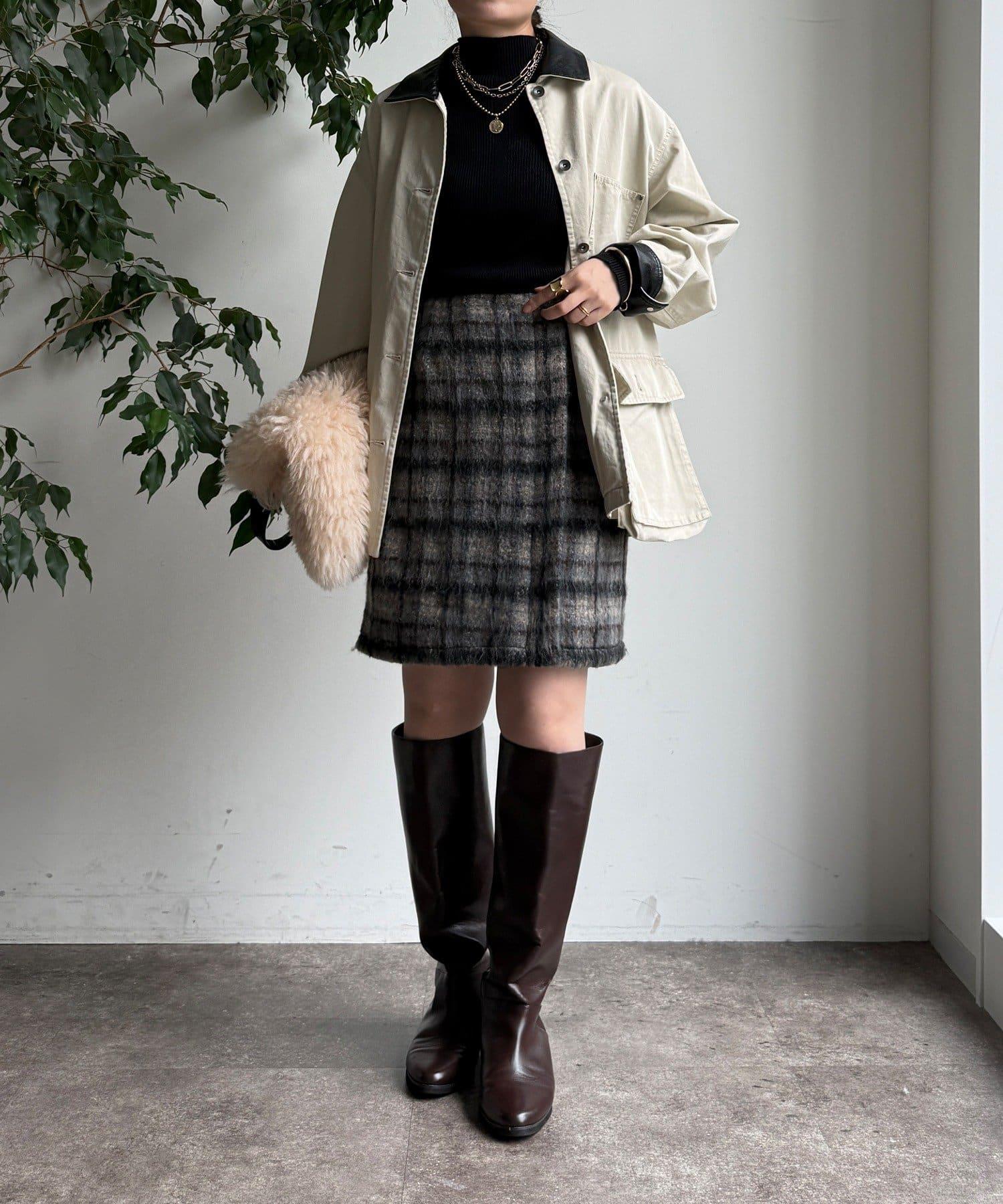 毛絨格紋迷你裙