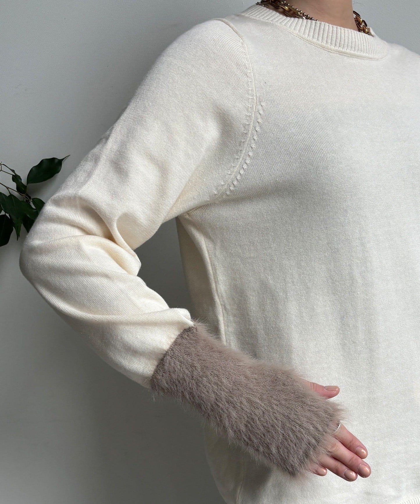 蓬鬆的絨毛材質袖子為簡約而不古怪的設計錦上添花,給人以優雅的印象。袖口有一個洞的設計,可以把大拇指穿過去,這樣就可以一直溫暖到手,看起來也很可愛◎。