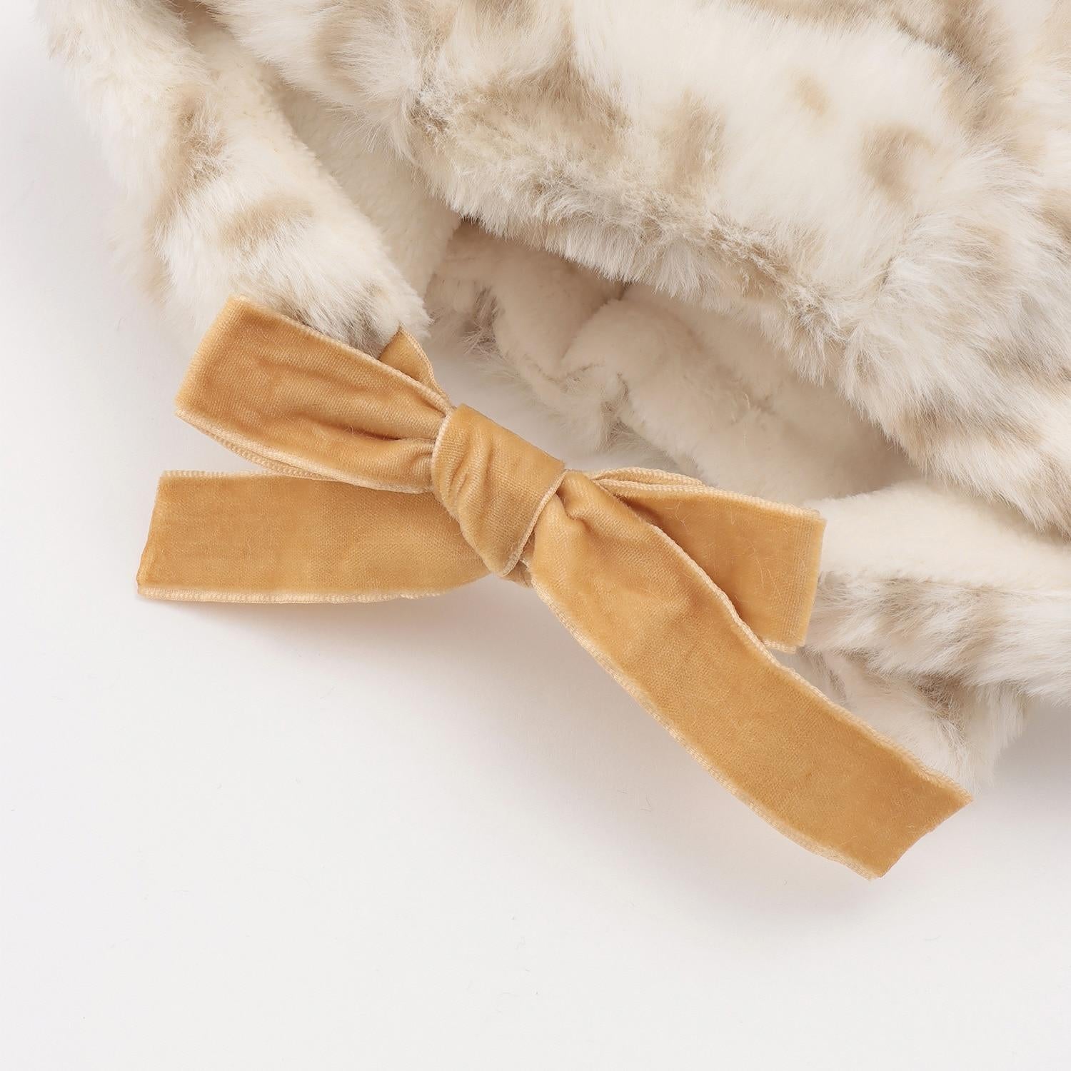 它還配有一條絲絨緞帶,可牢牢固定在下巴下方。