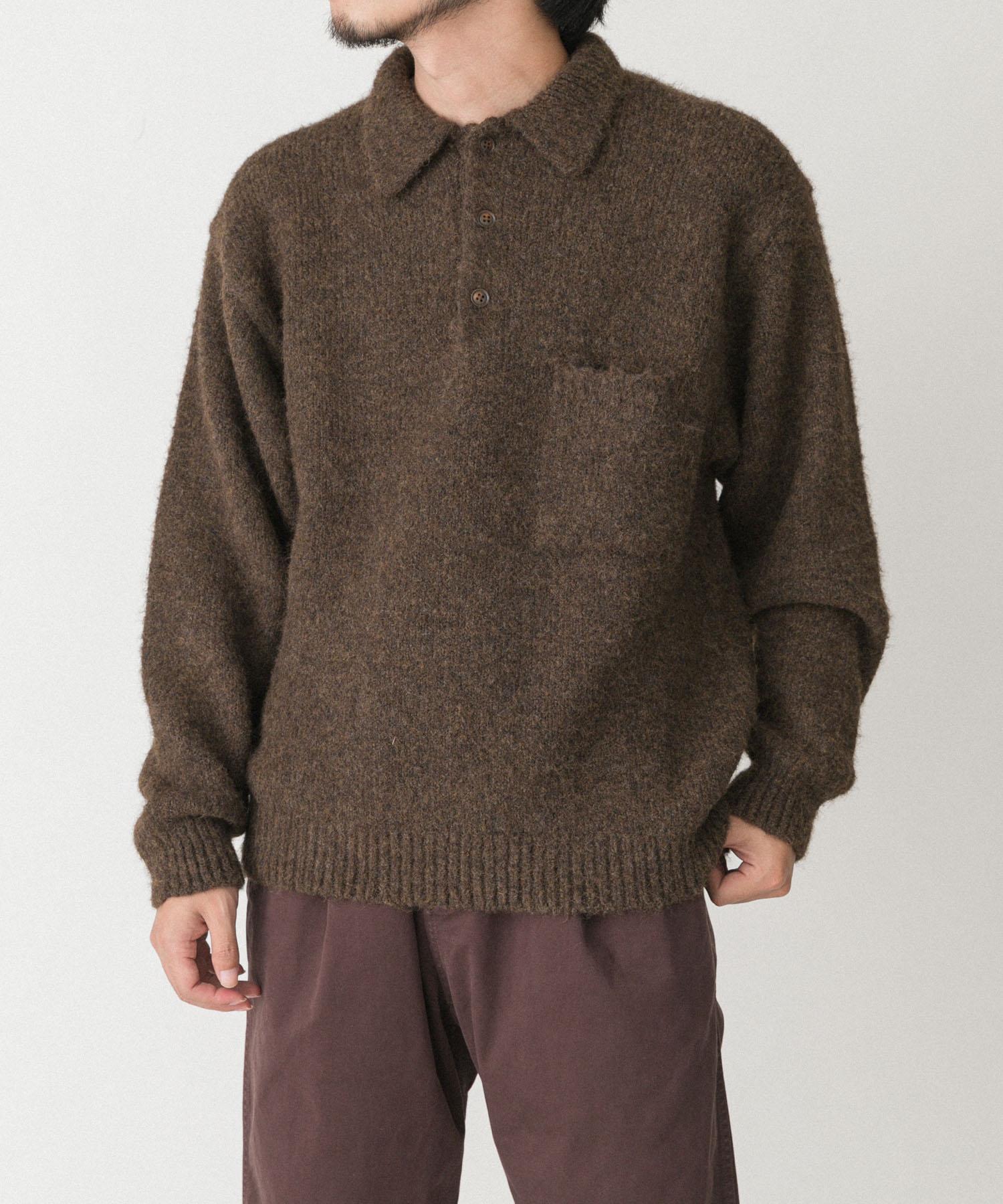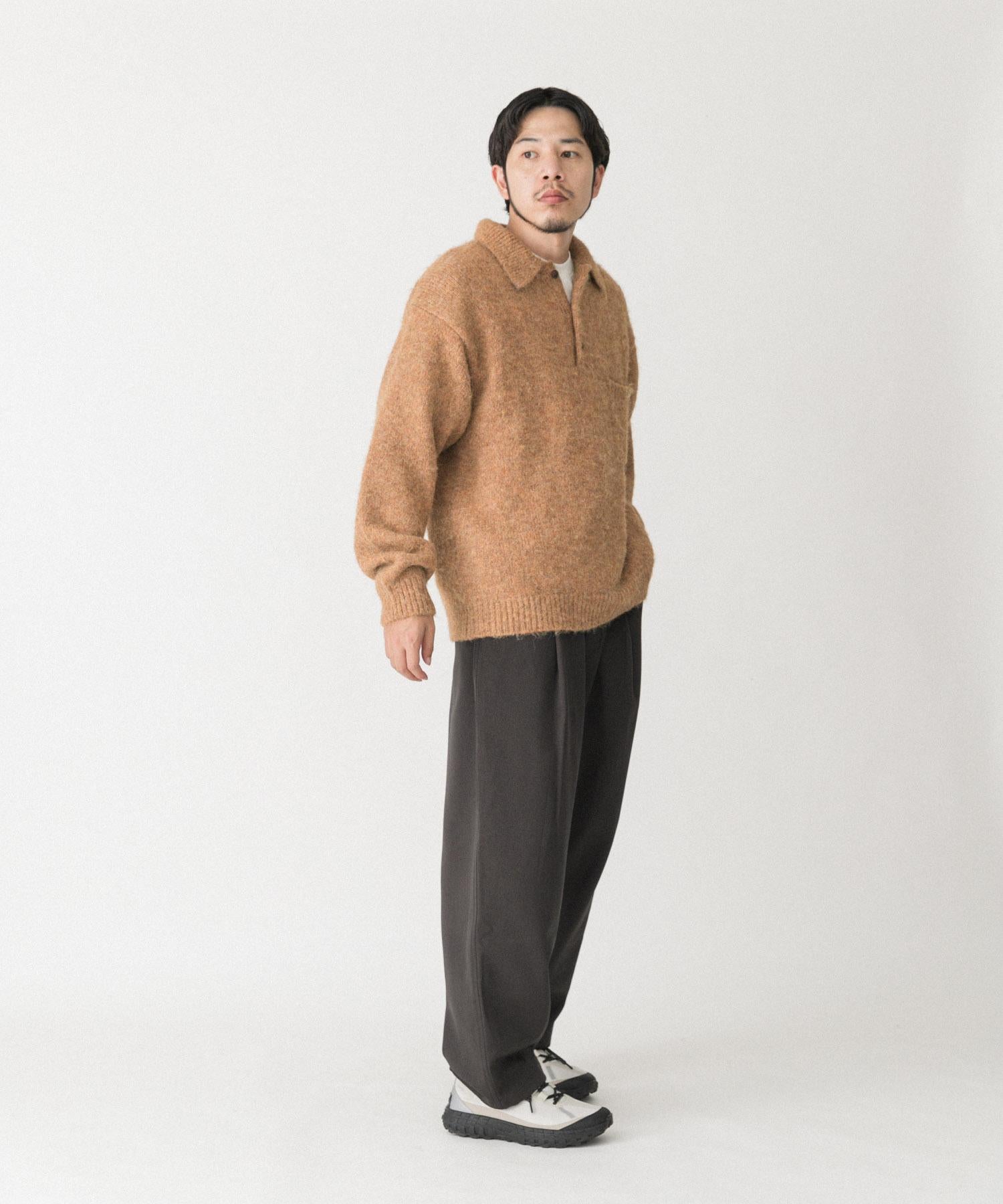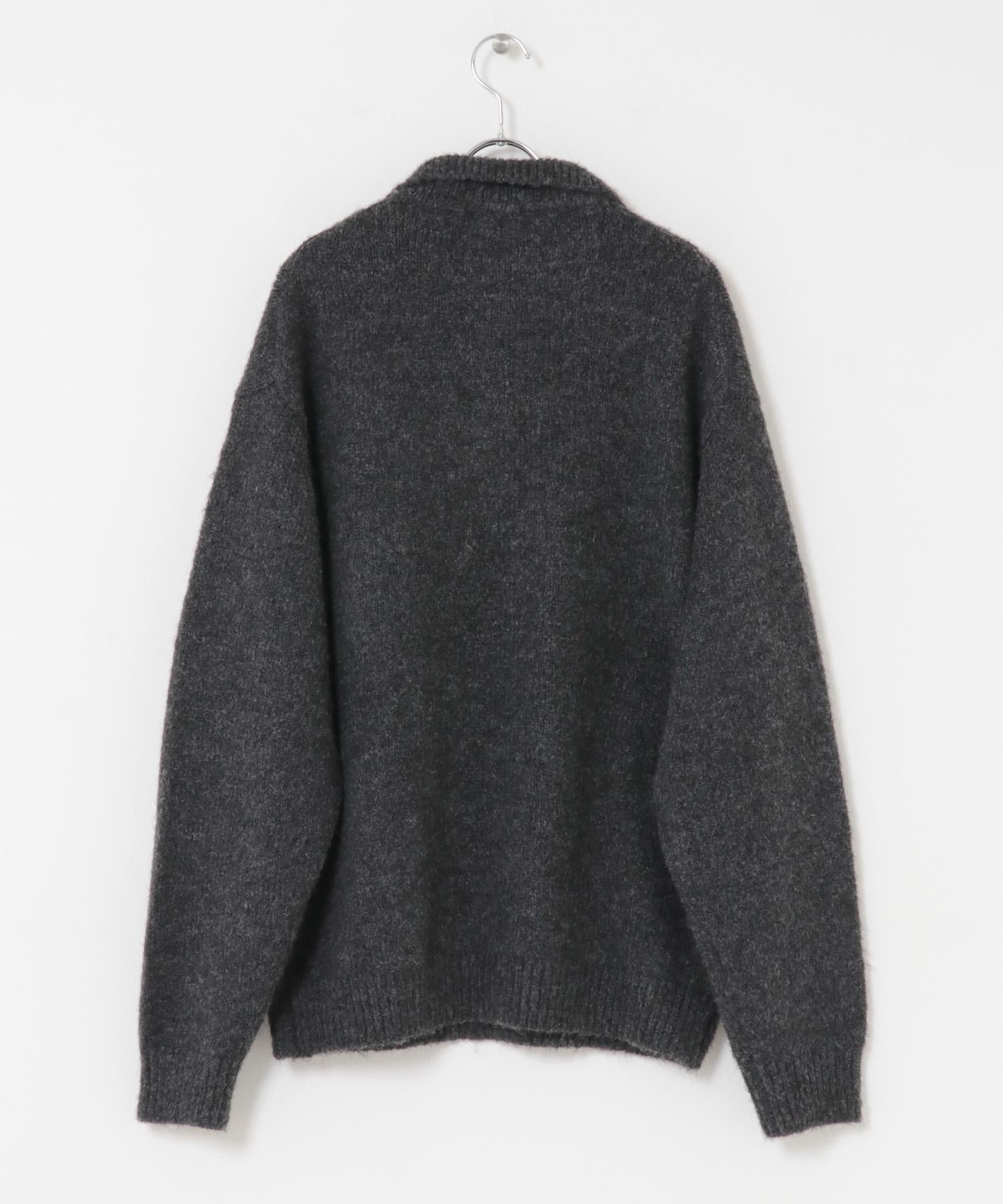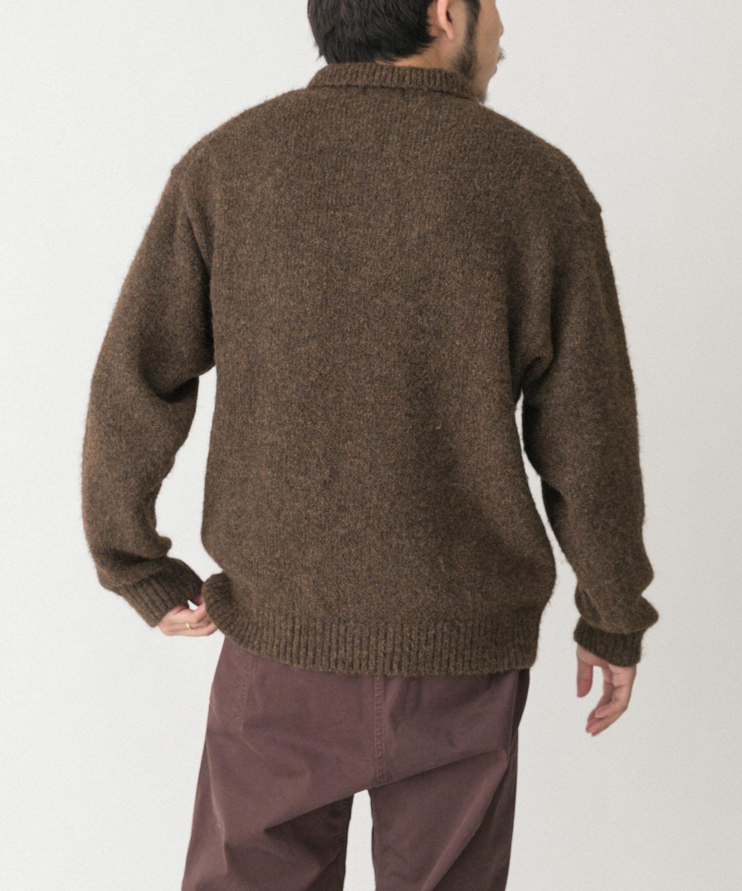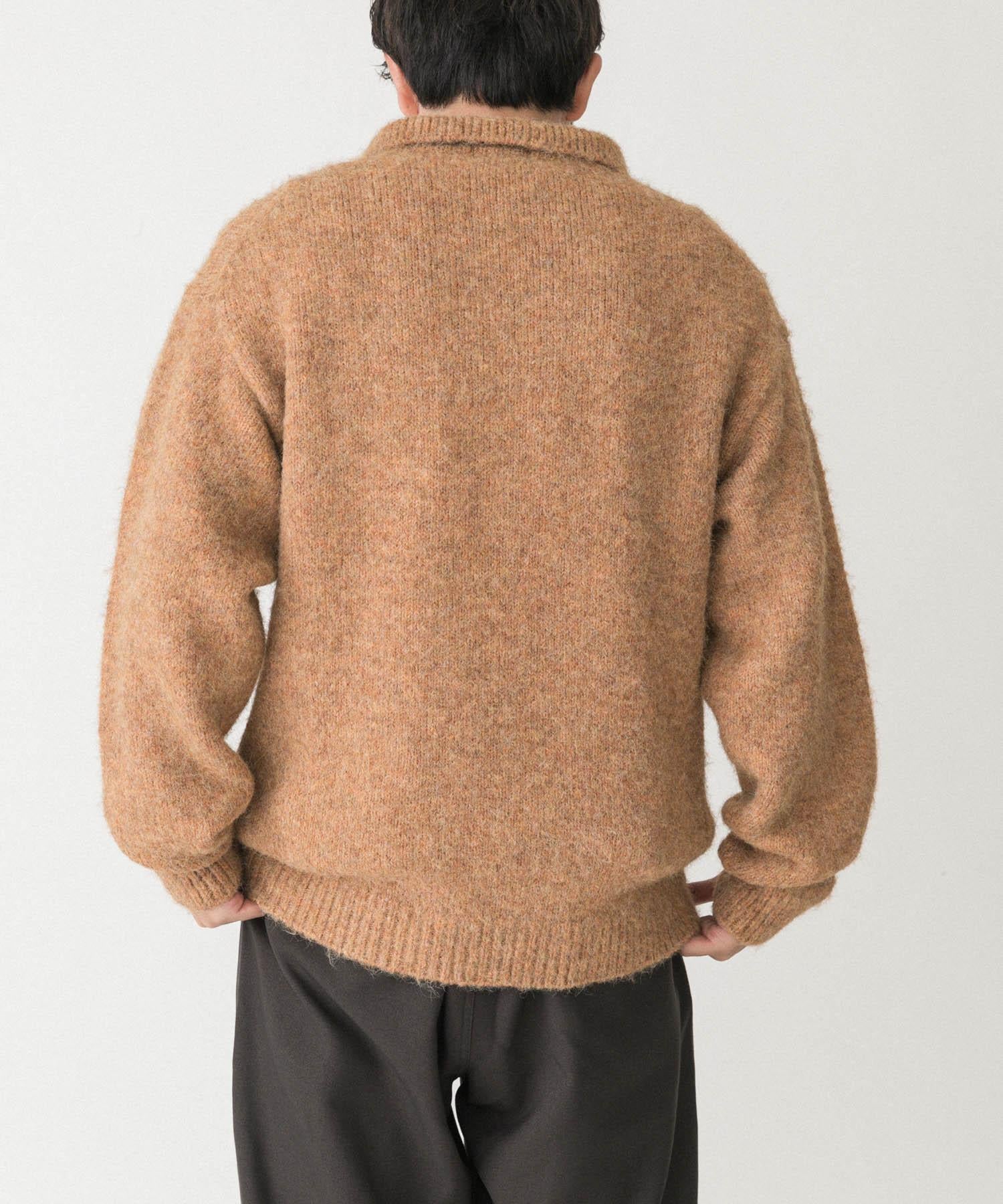 毛絨針織翻領套頭衫