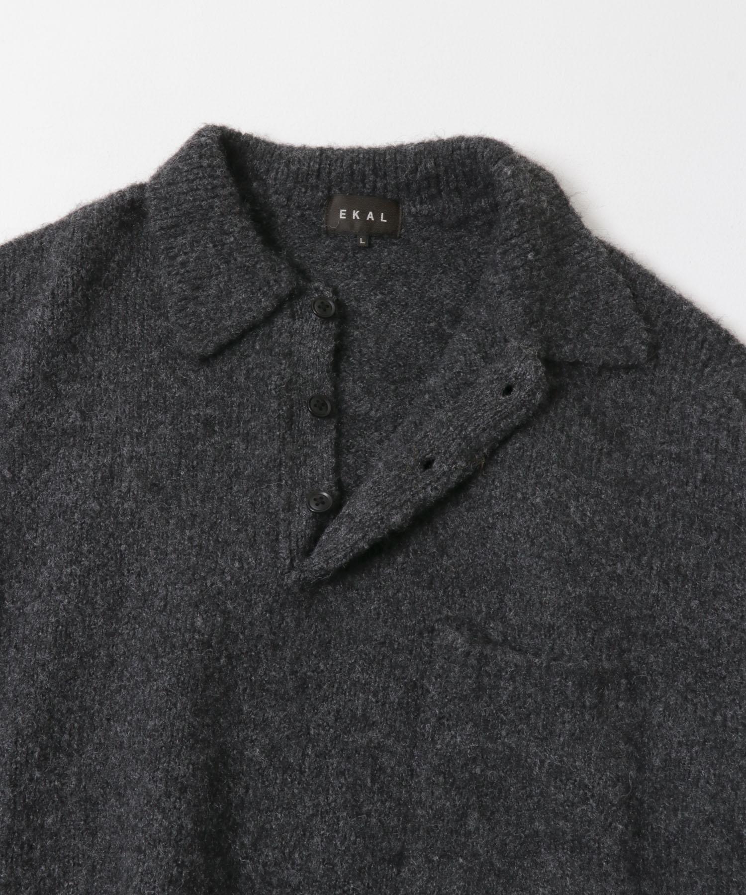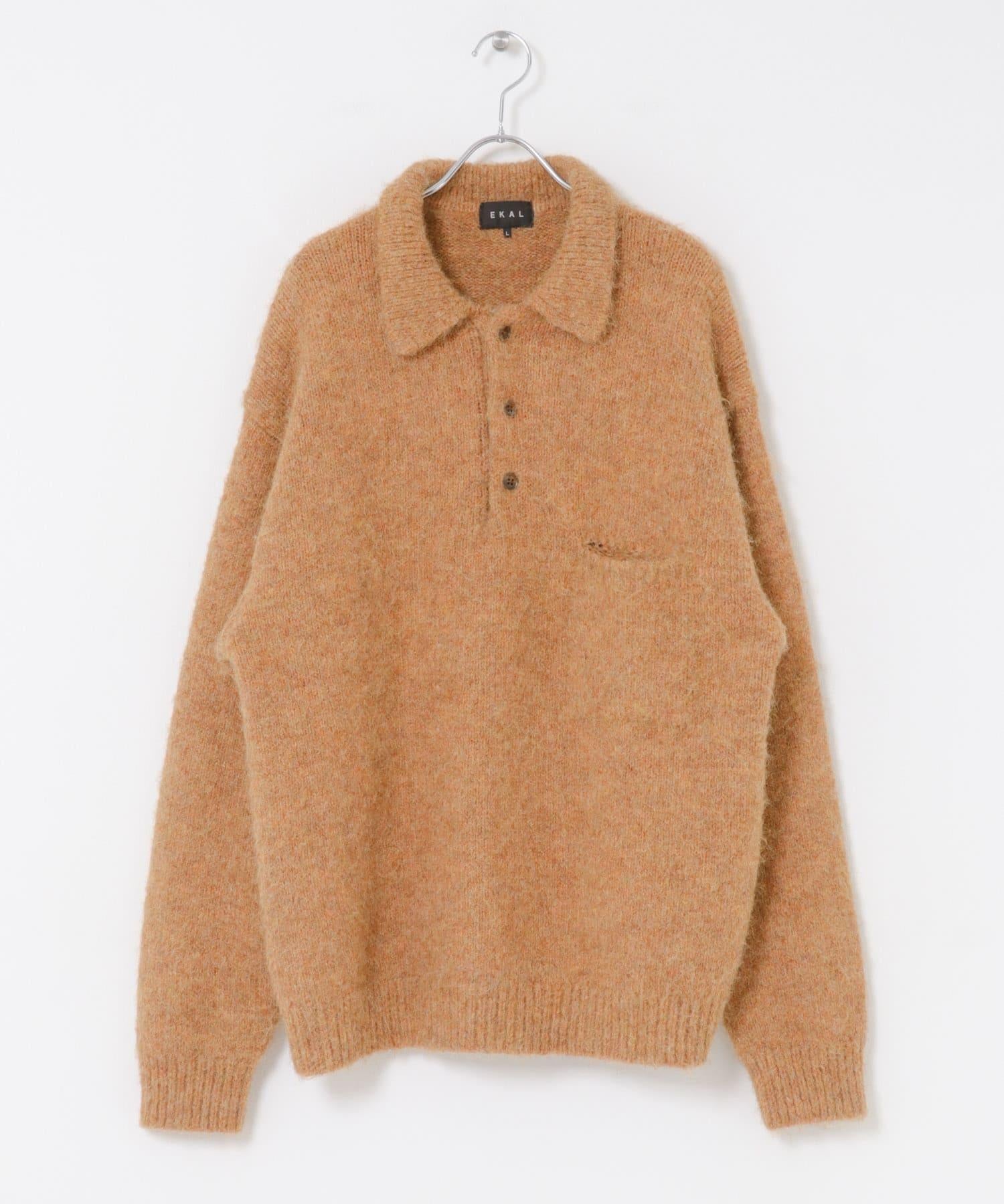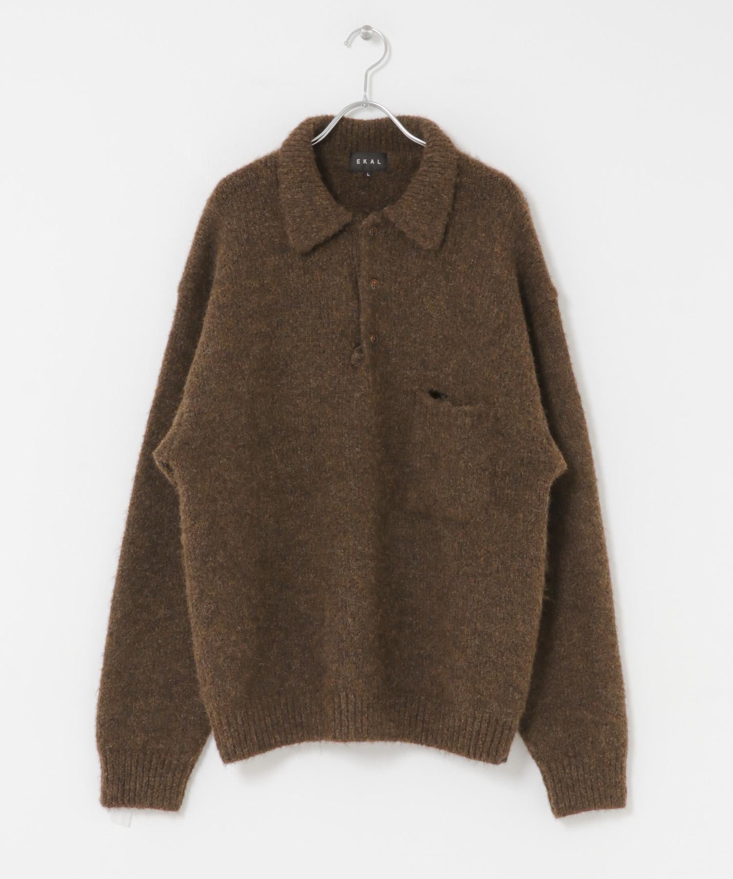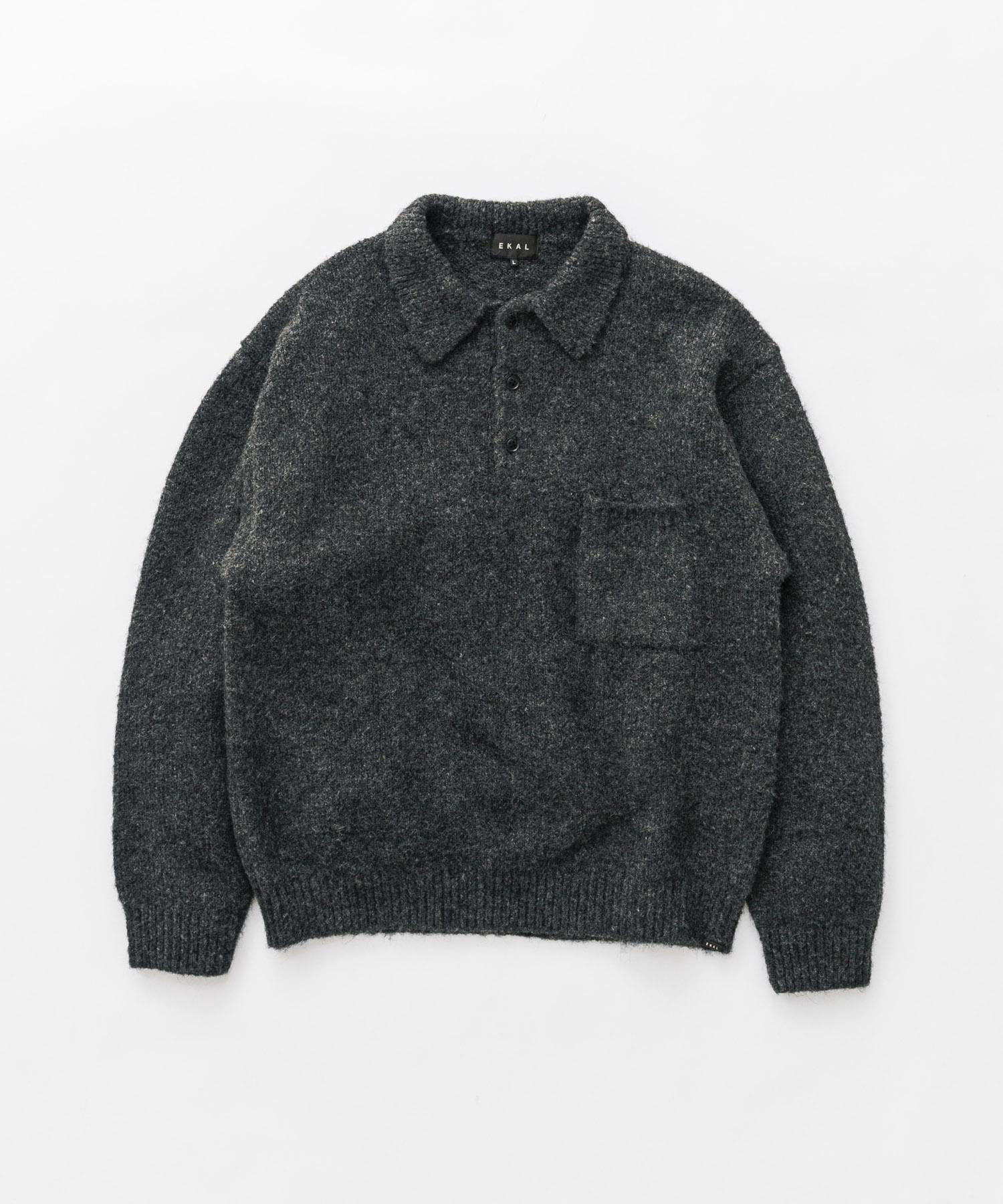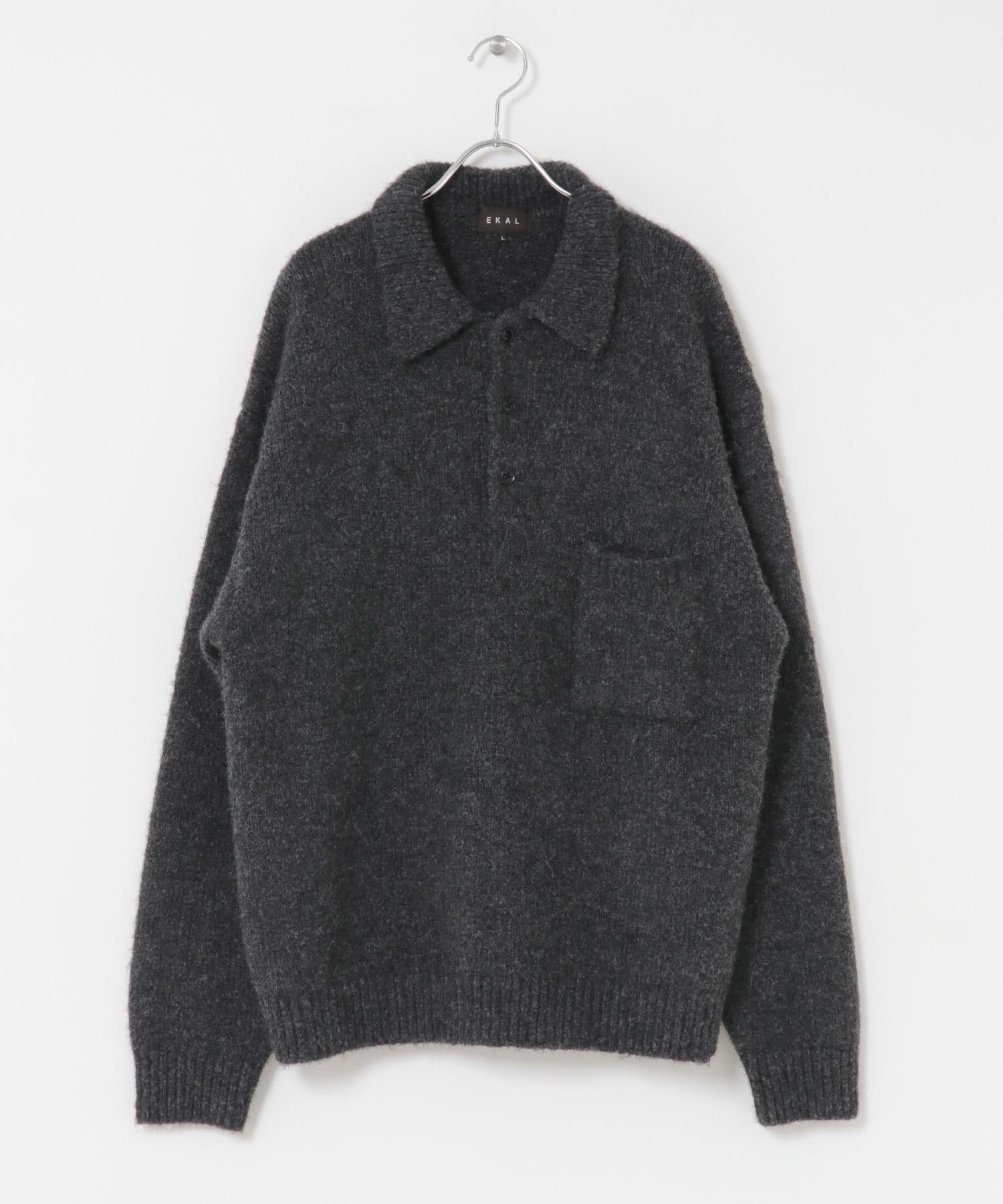 毛絨針織翻領套頭衫