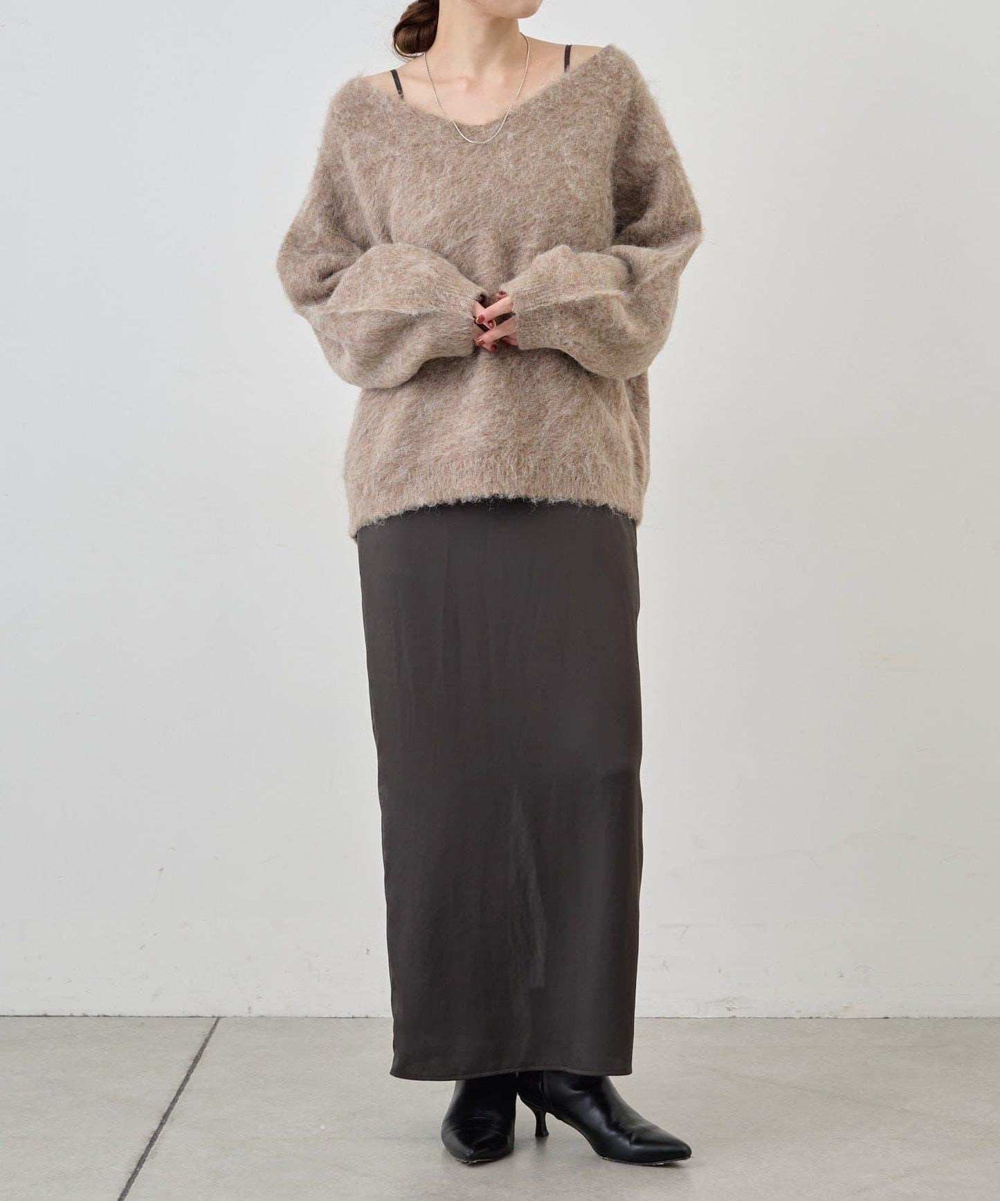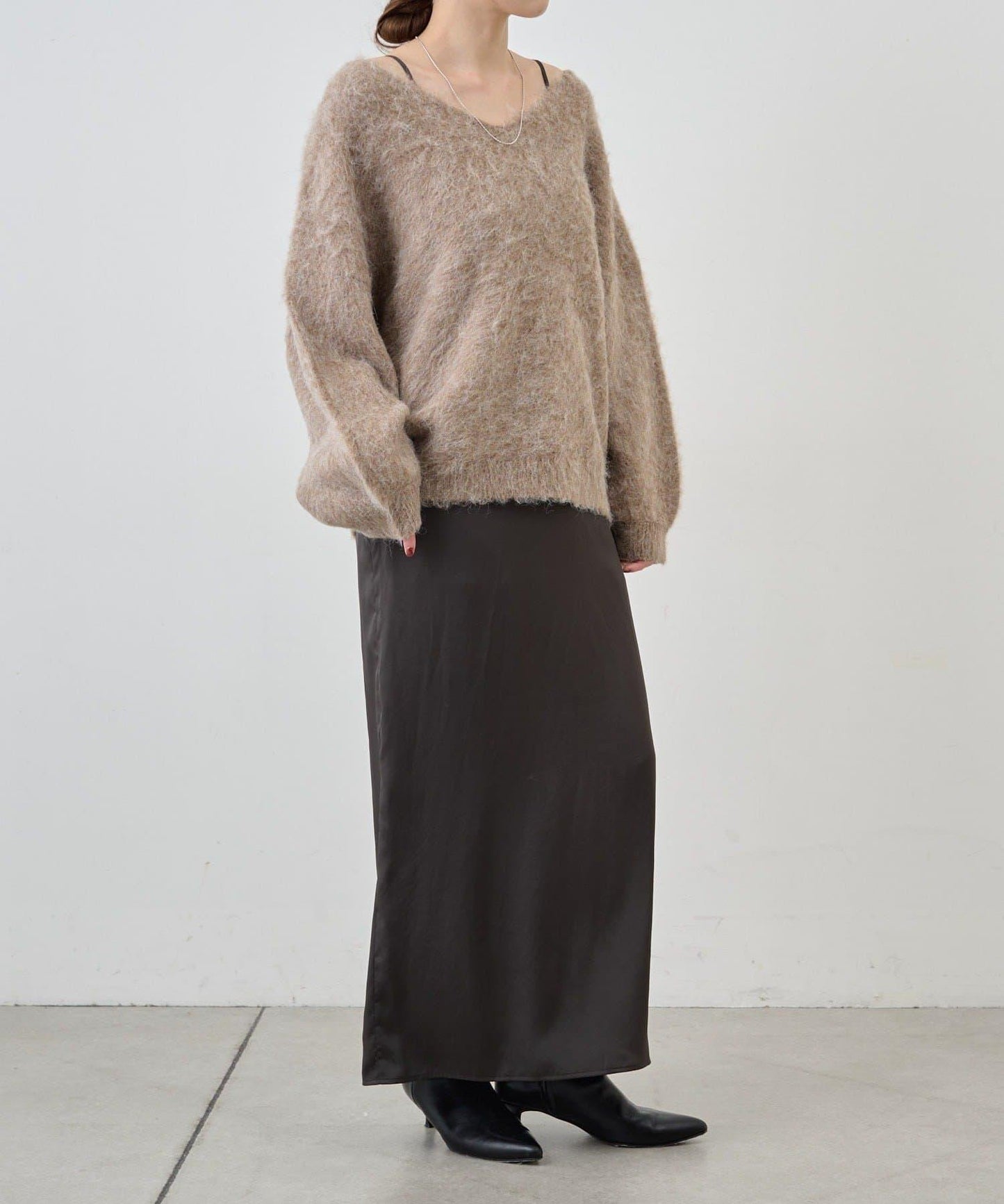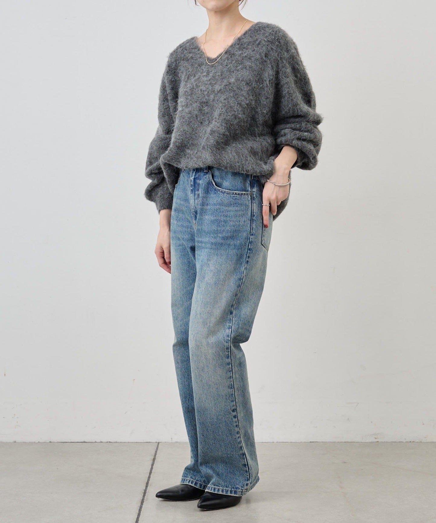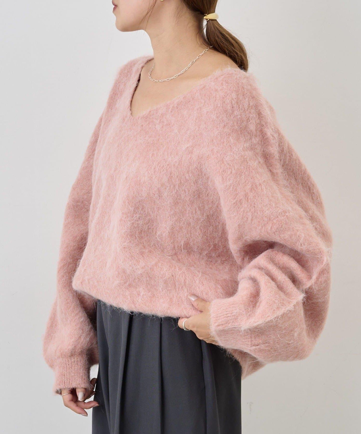 單穿也很好看。長毛絨針織套頭衫。