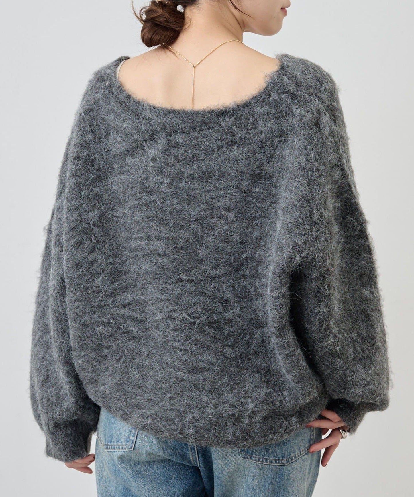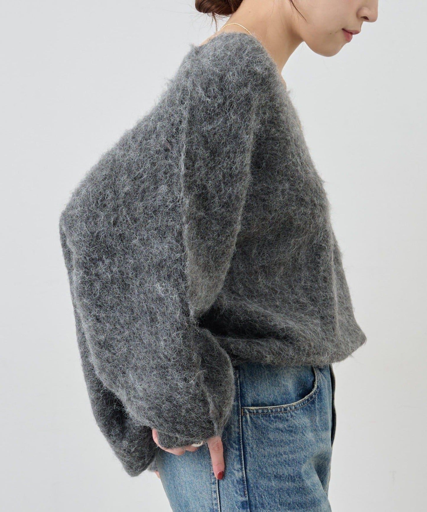 蓬鬆質感的長毛絨針織衫。