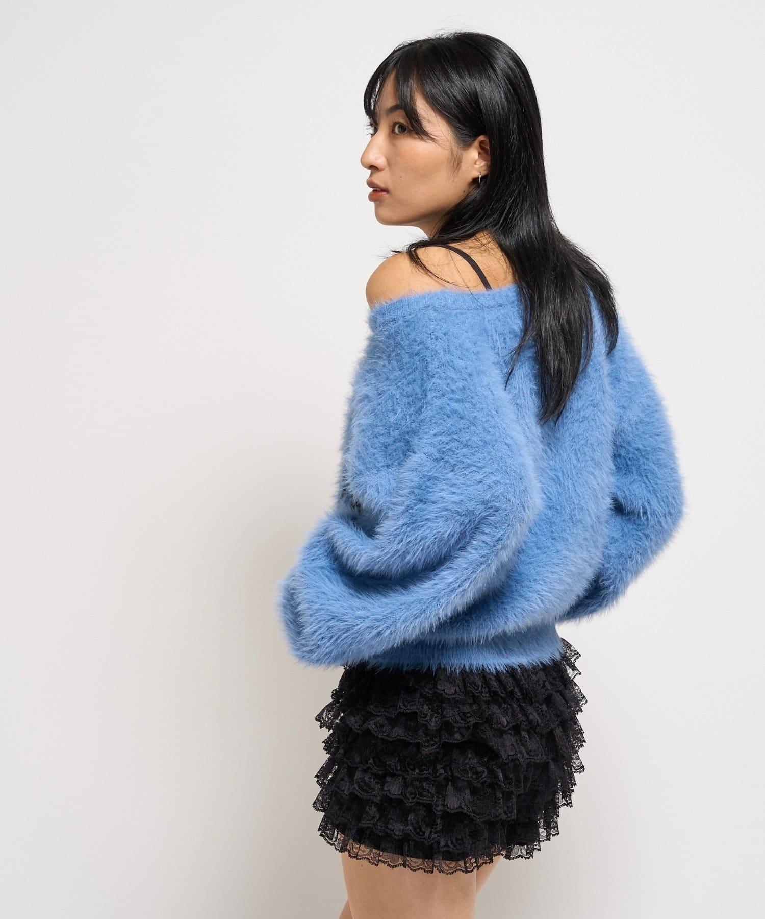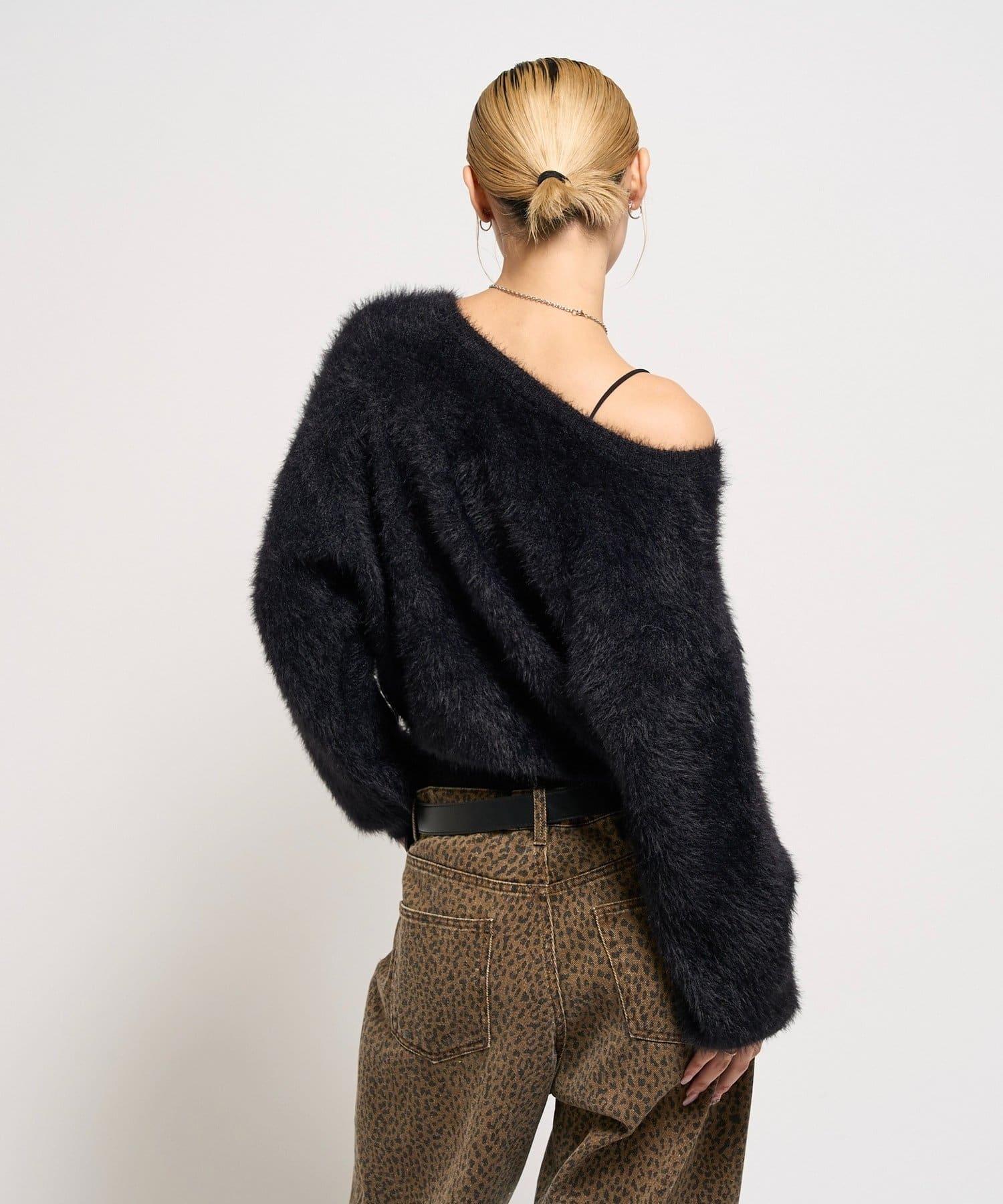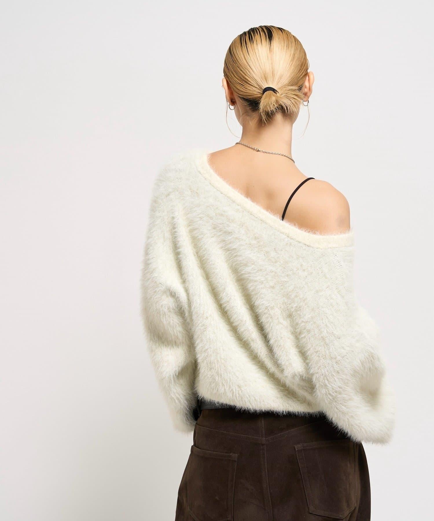 可愛蓬鬆的毛茸茸!標誌性露肩針織衫,秋冬必備。