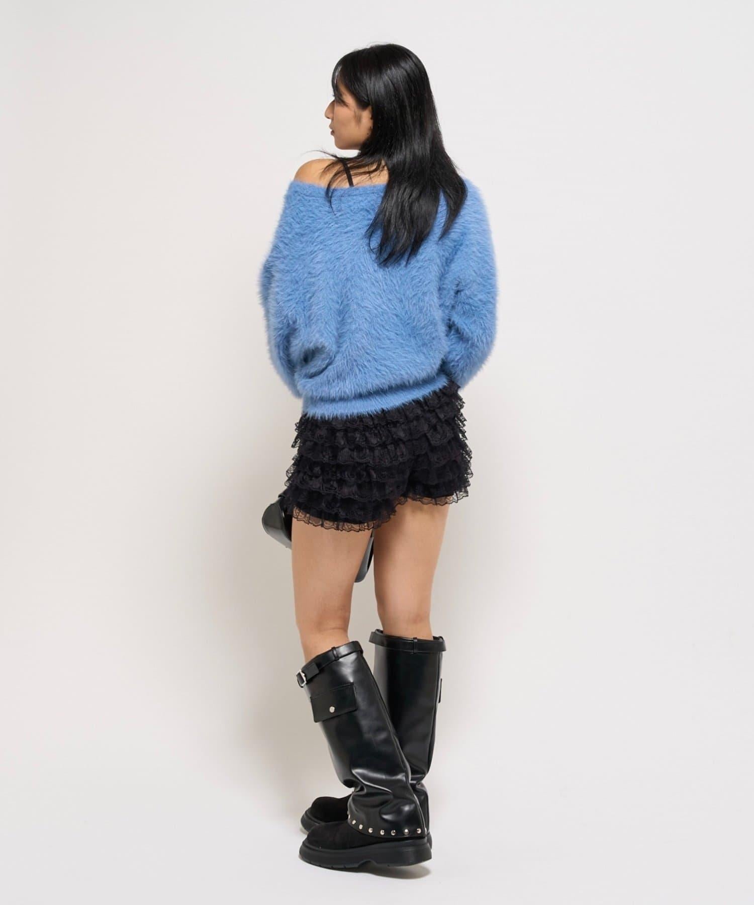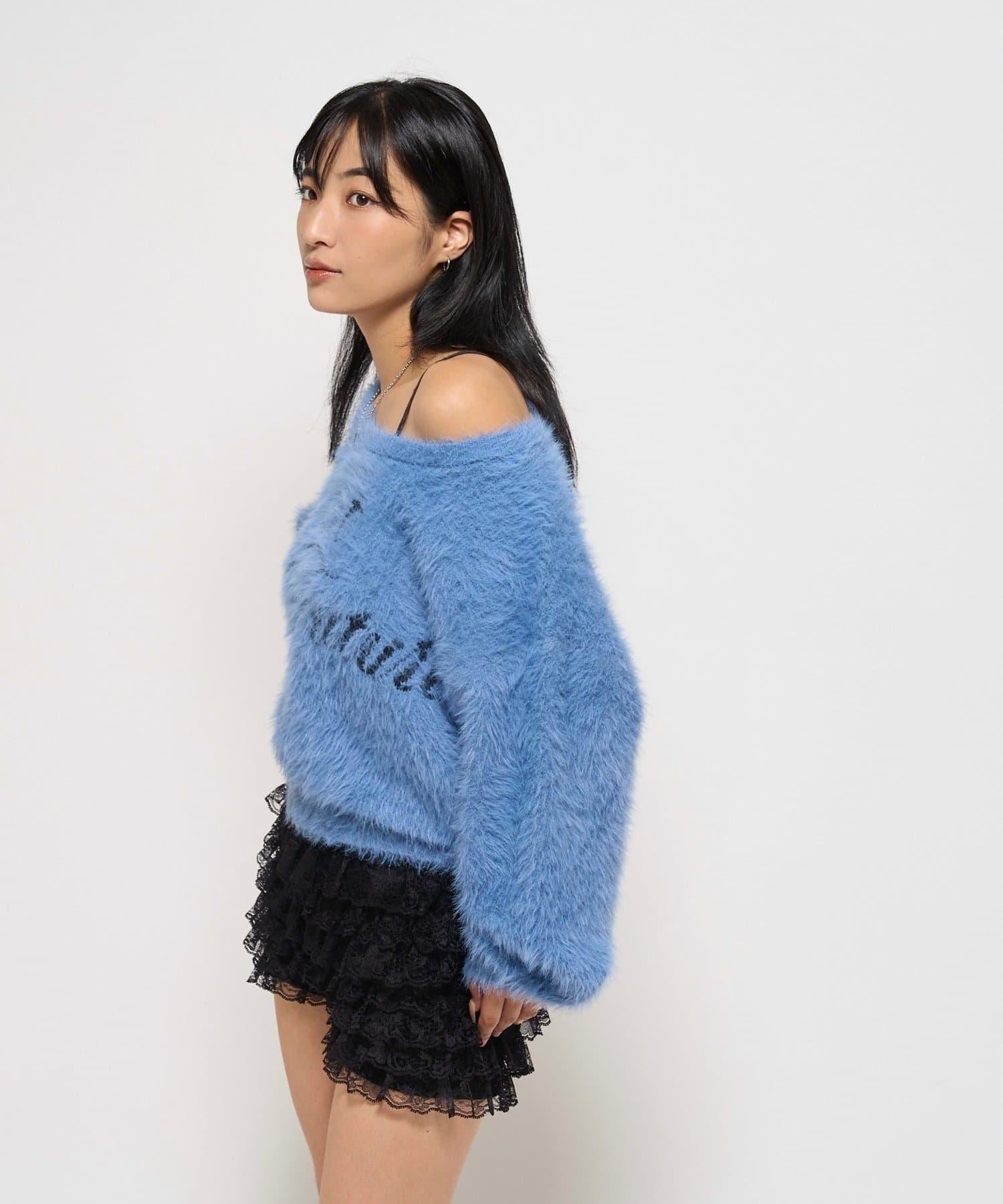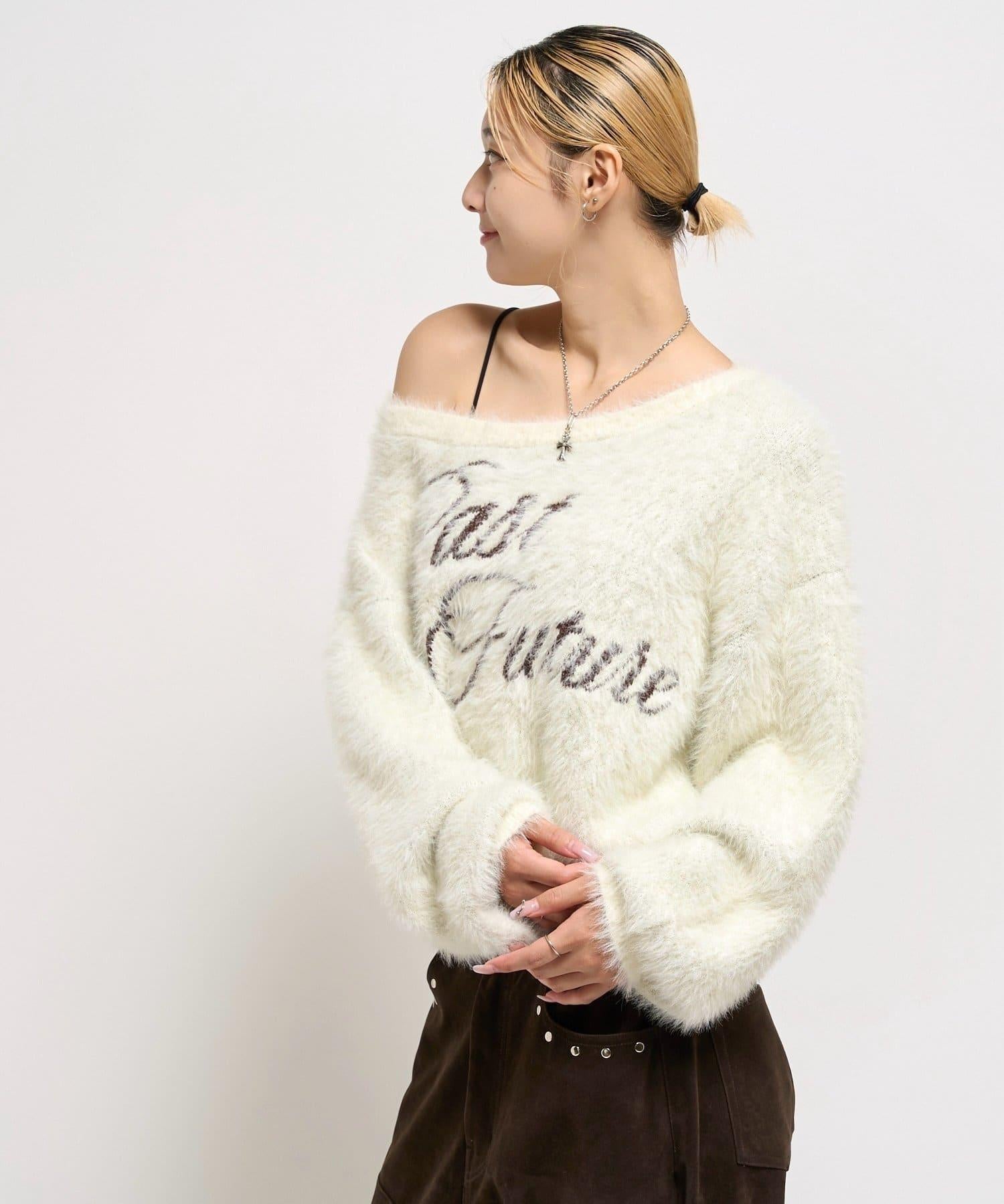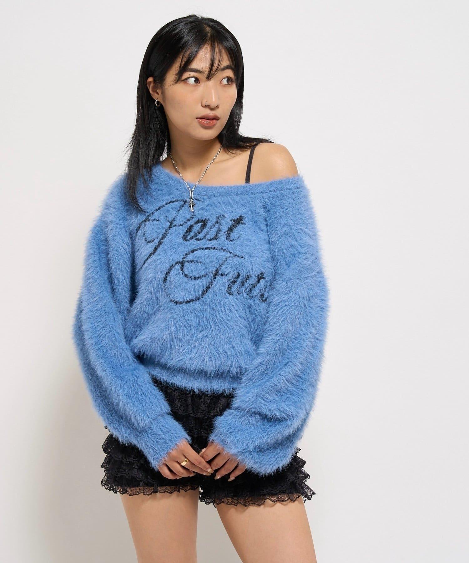 可愛蓬鬆的毛茸茸!標誌性露肩針織衫,秋冬必備。
