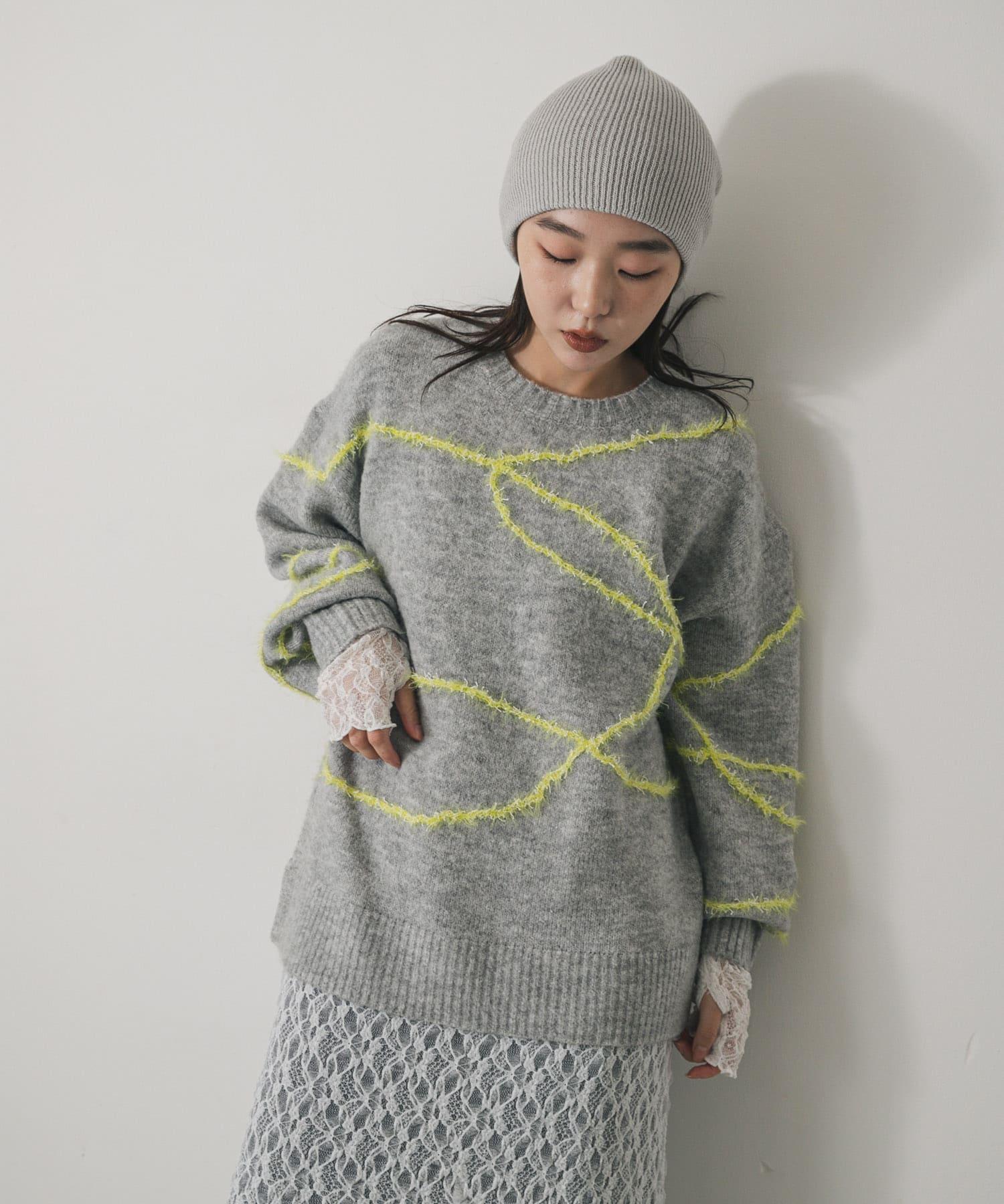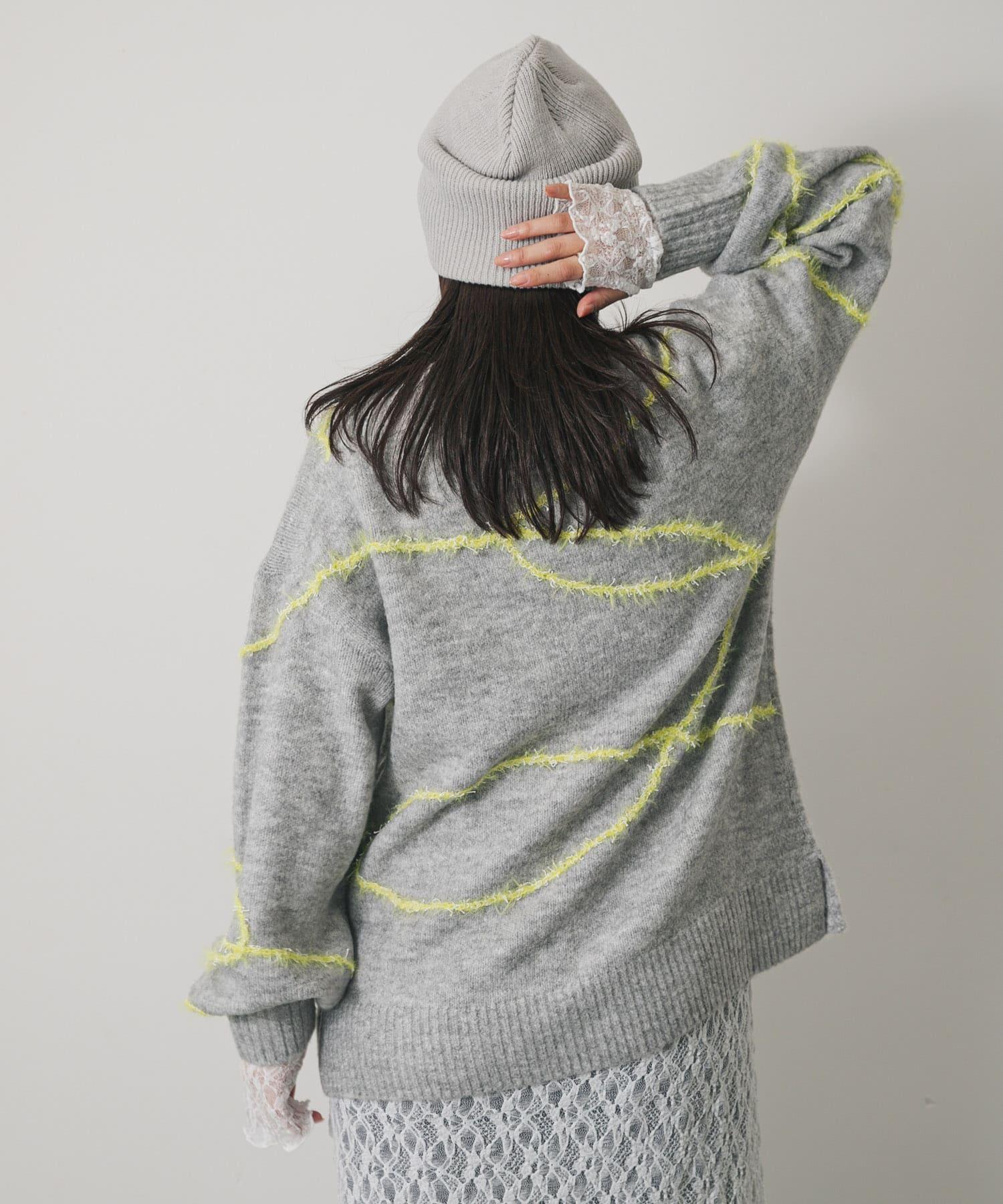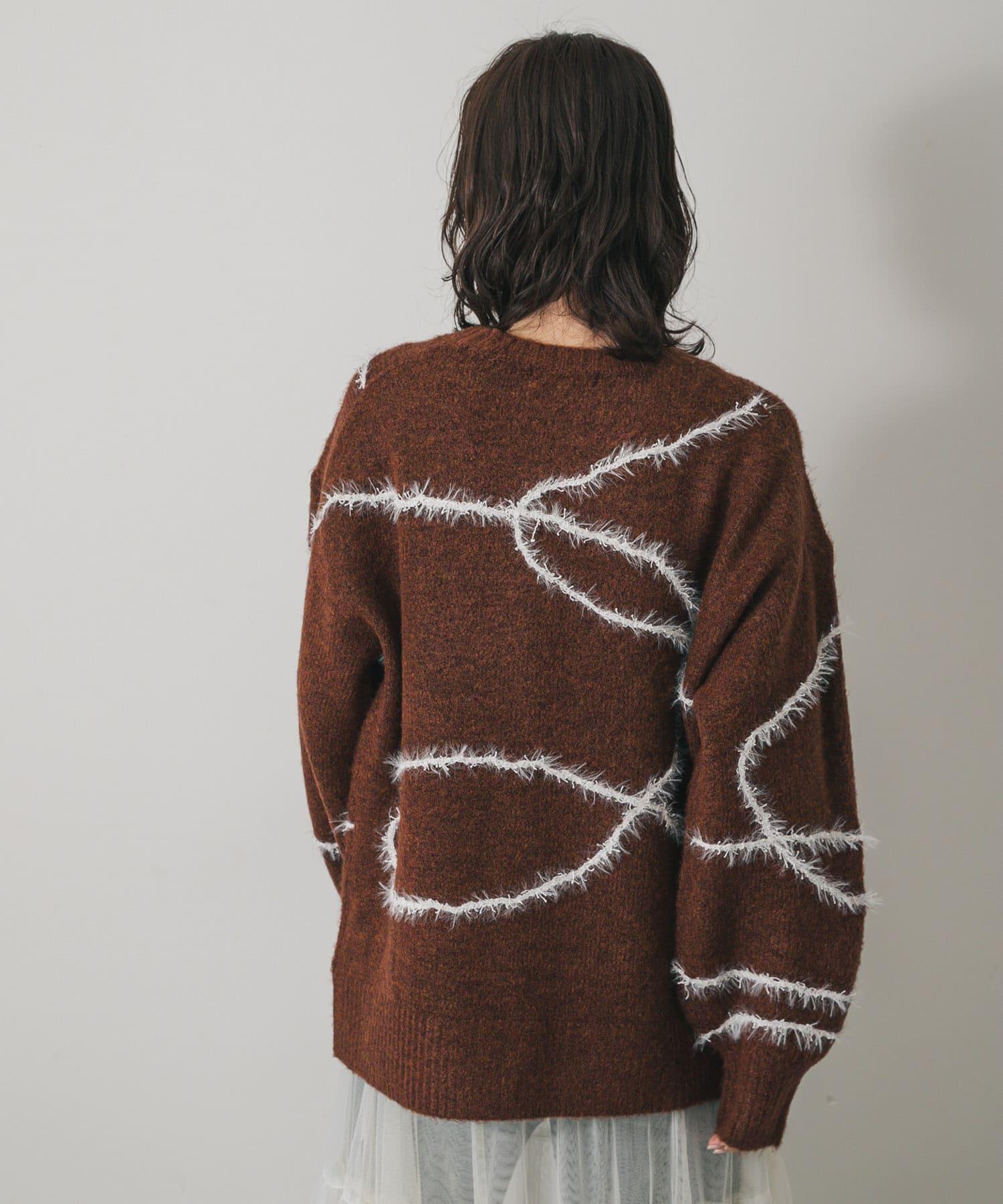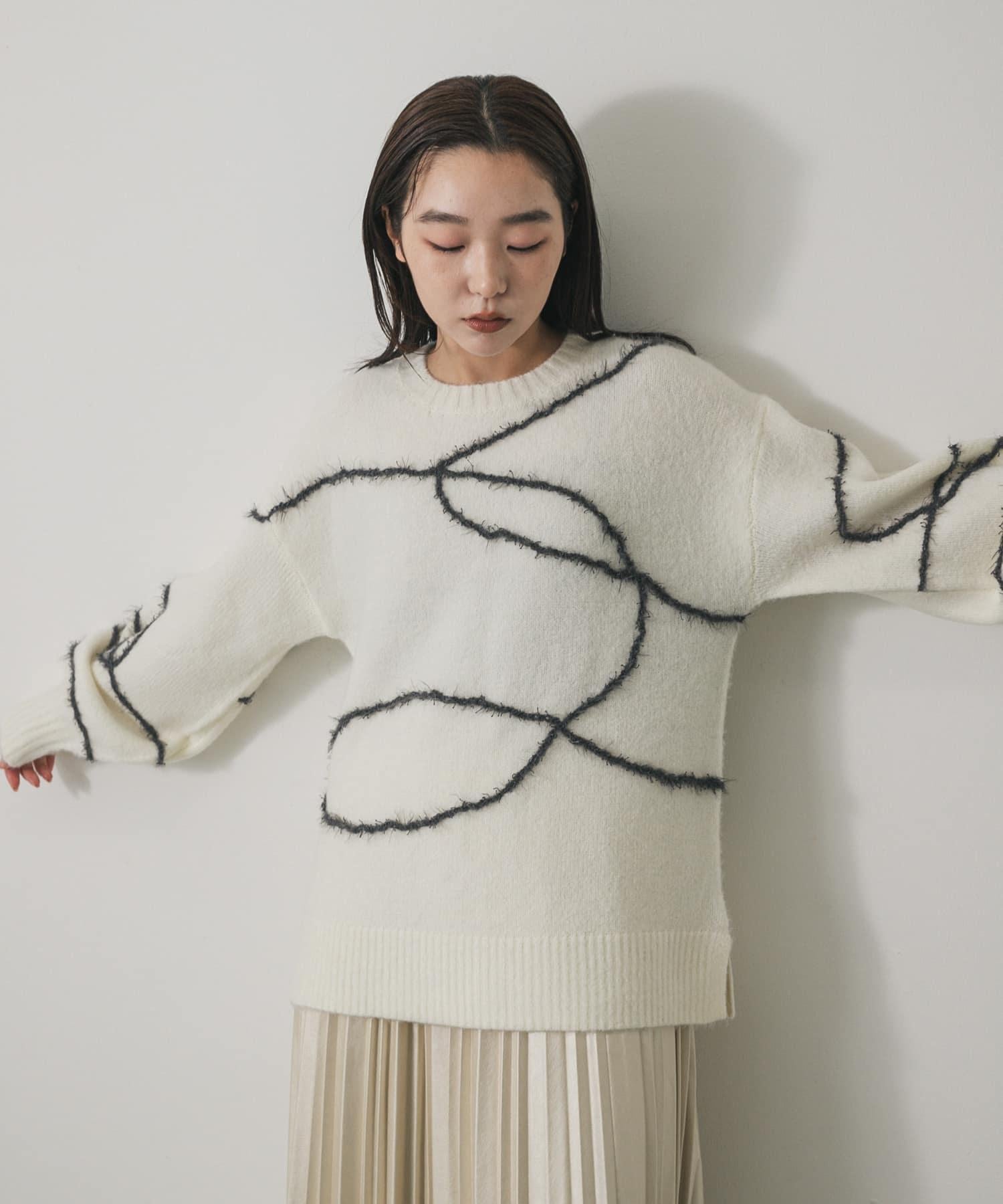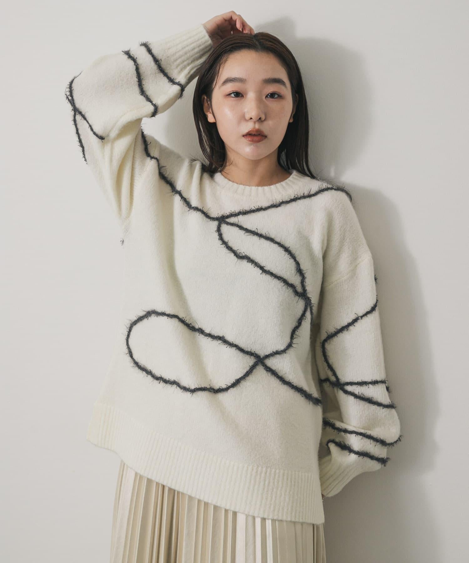 毛邊線條寬鬆針織衫