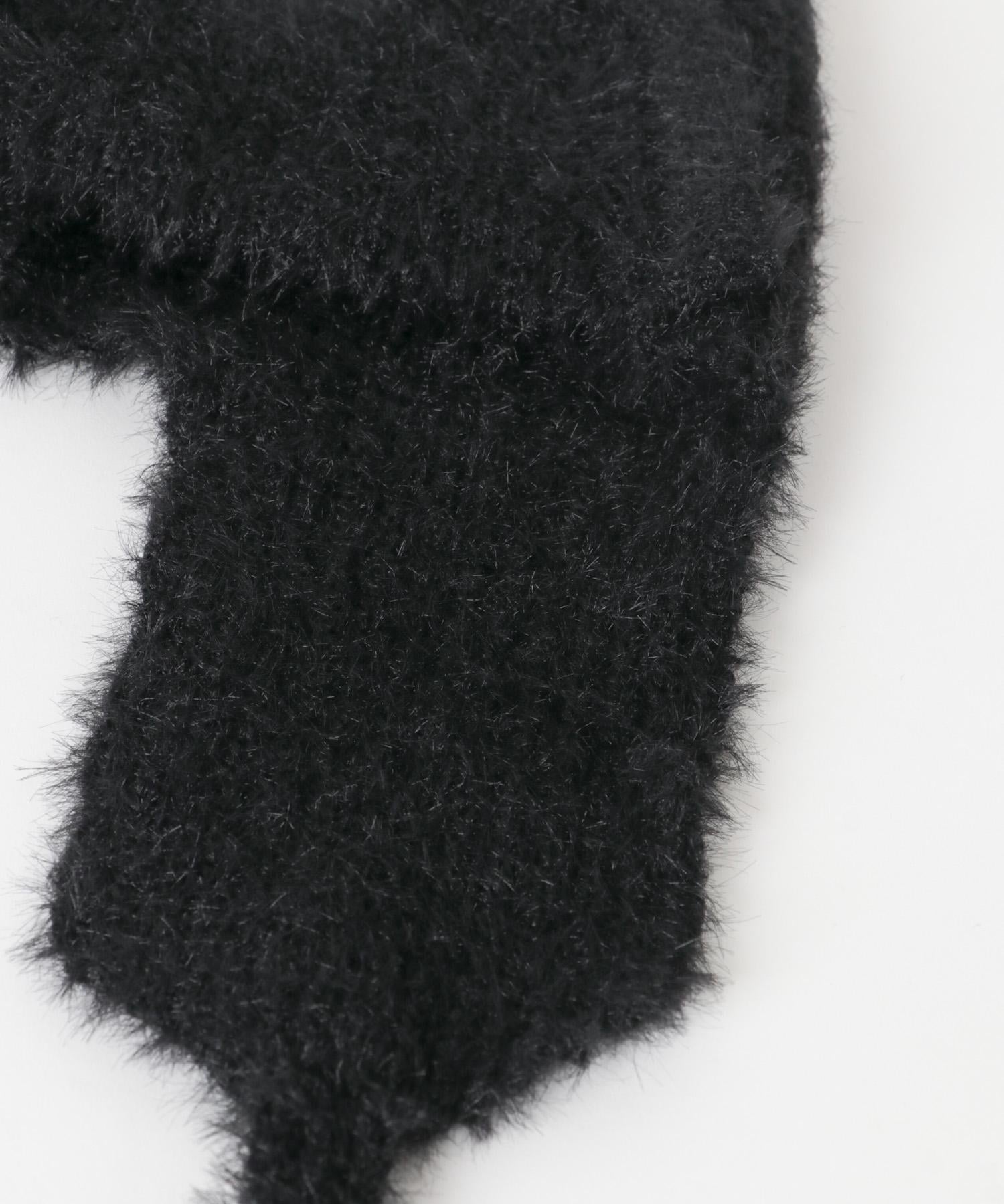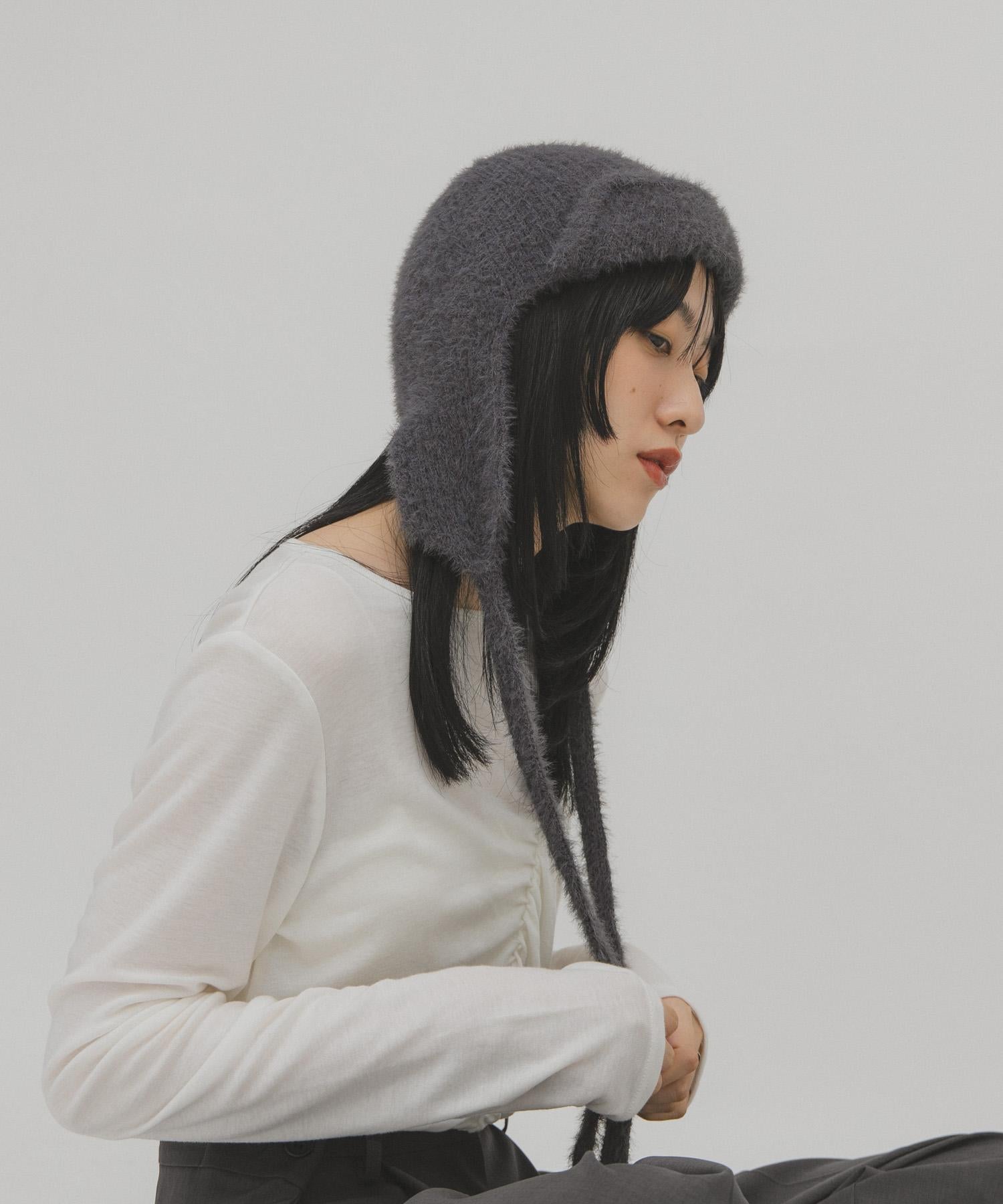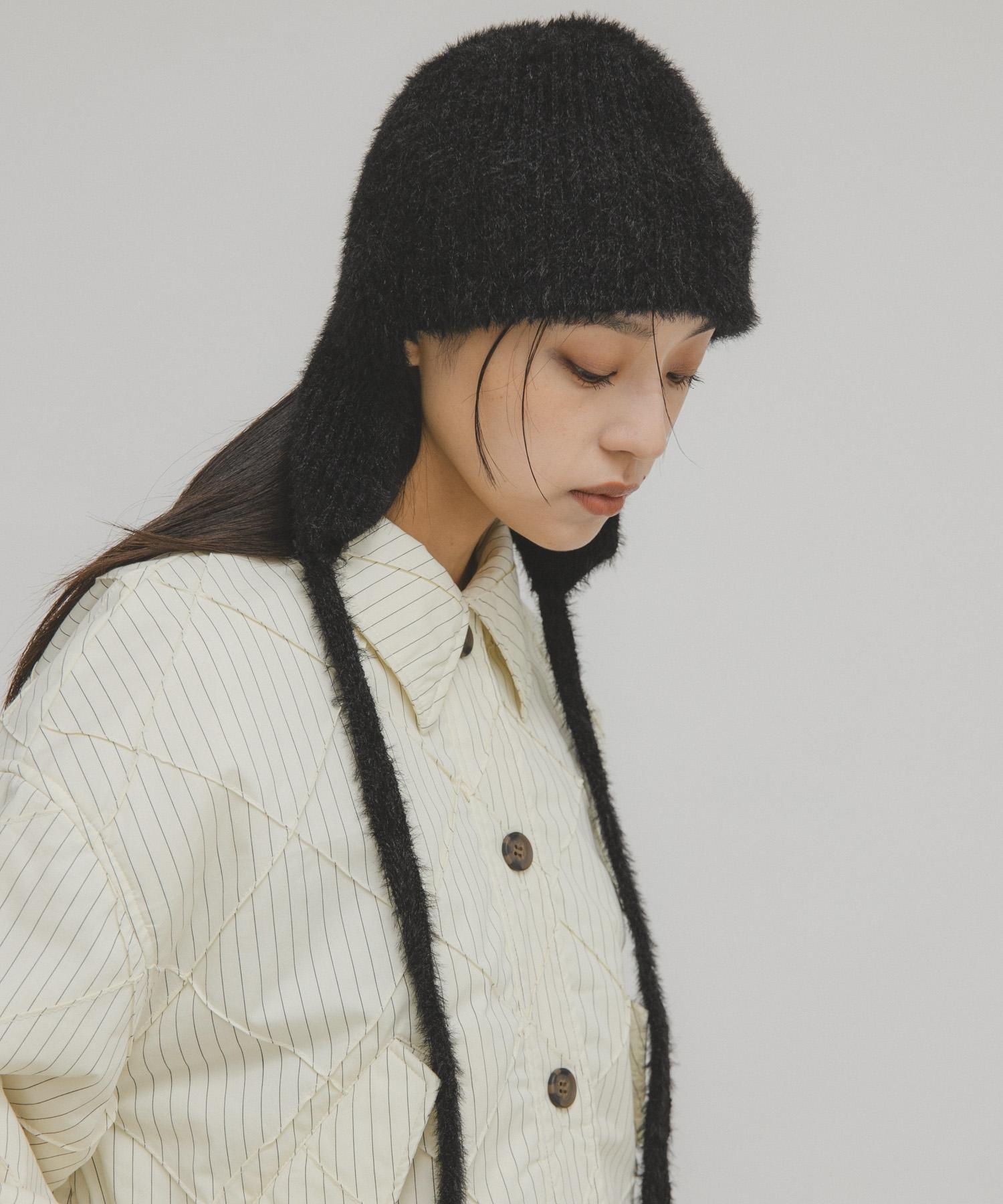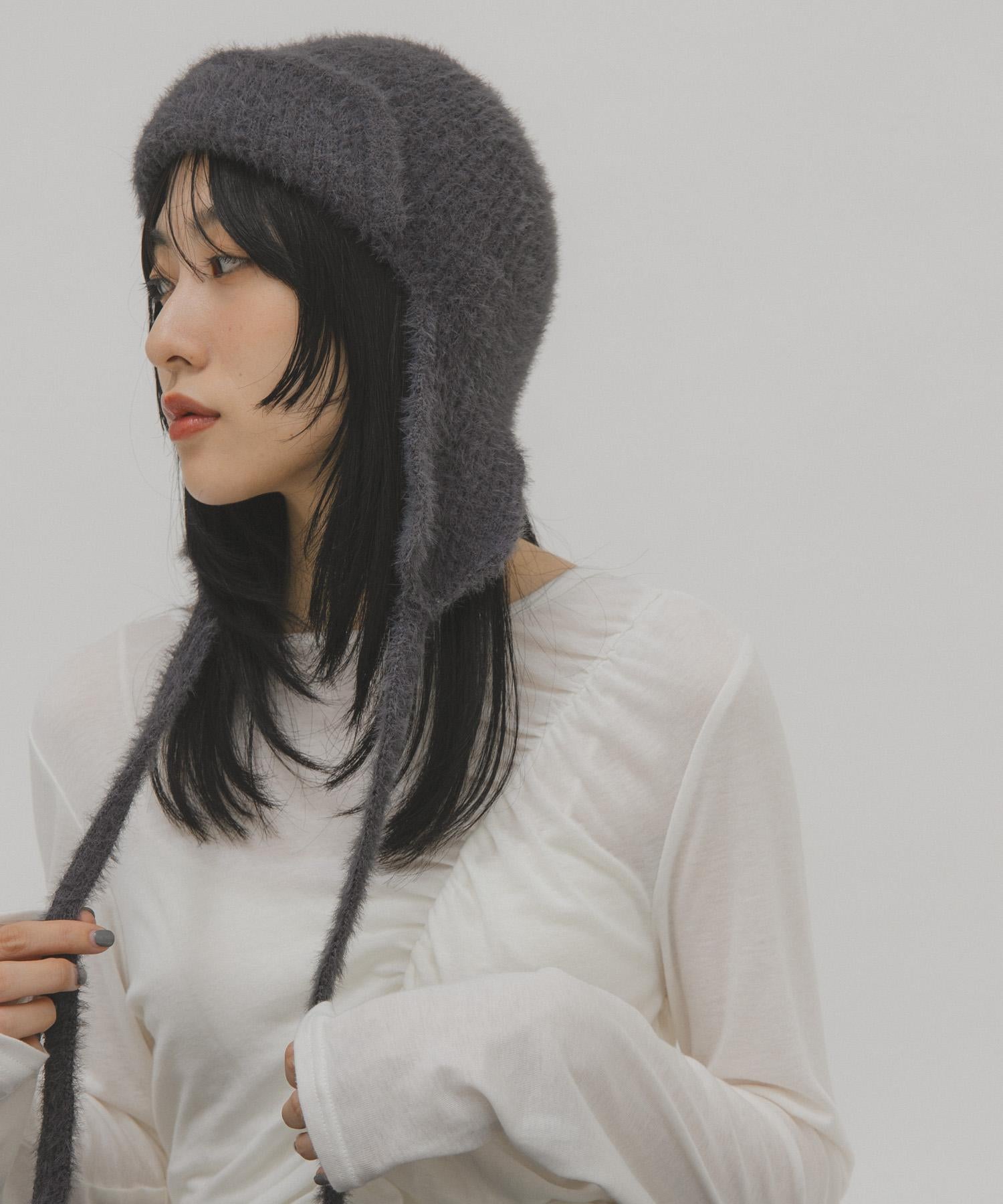 絨毛材質的飛行針織帽,是營造季節氛圍的必備單品,質地柔軟,貼膚感極佳。有藍灰色和黑色可供選擇。