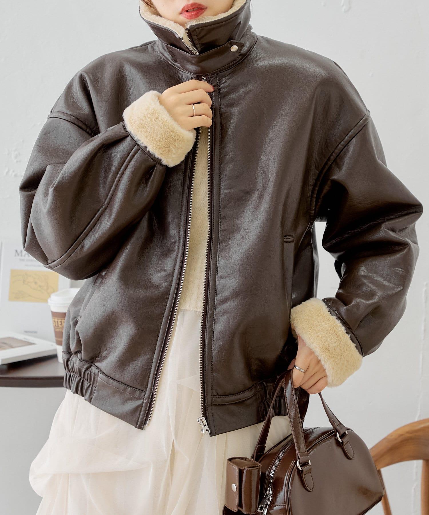 這款夾克也可作為立領穿,是一款雙面夾克。