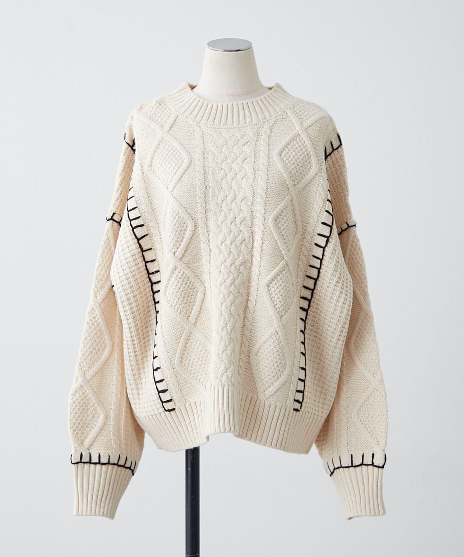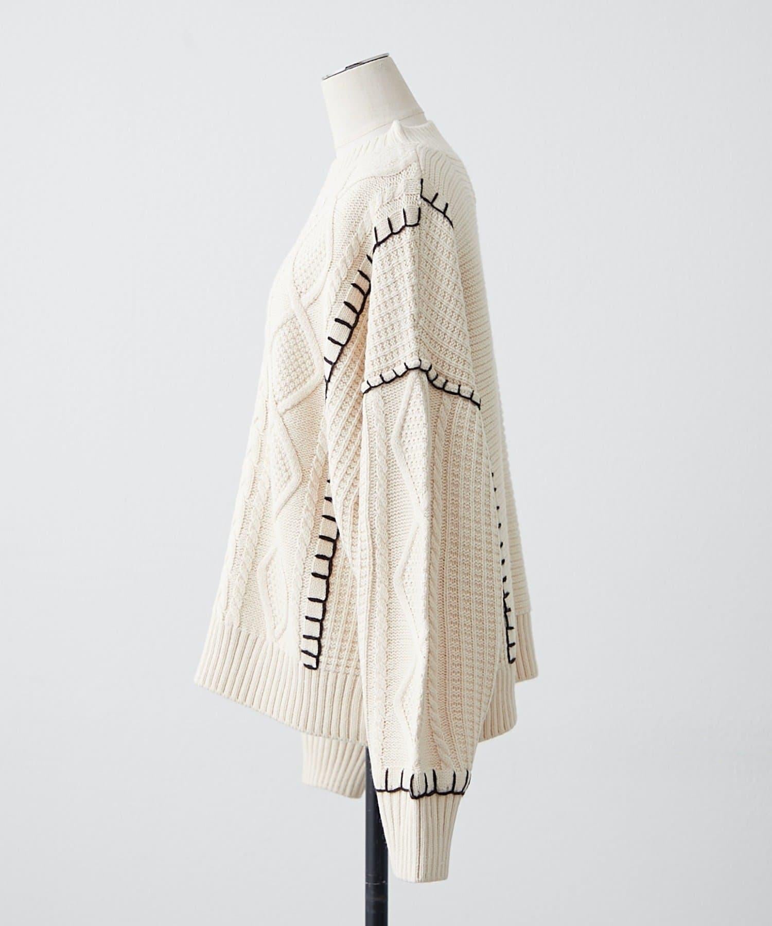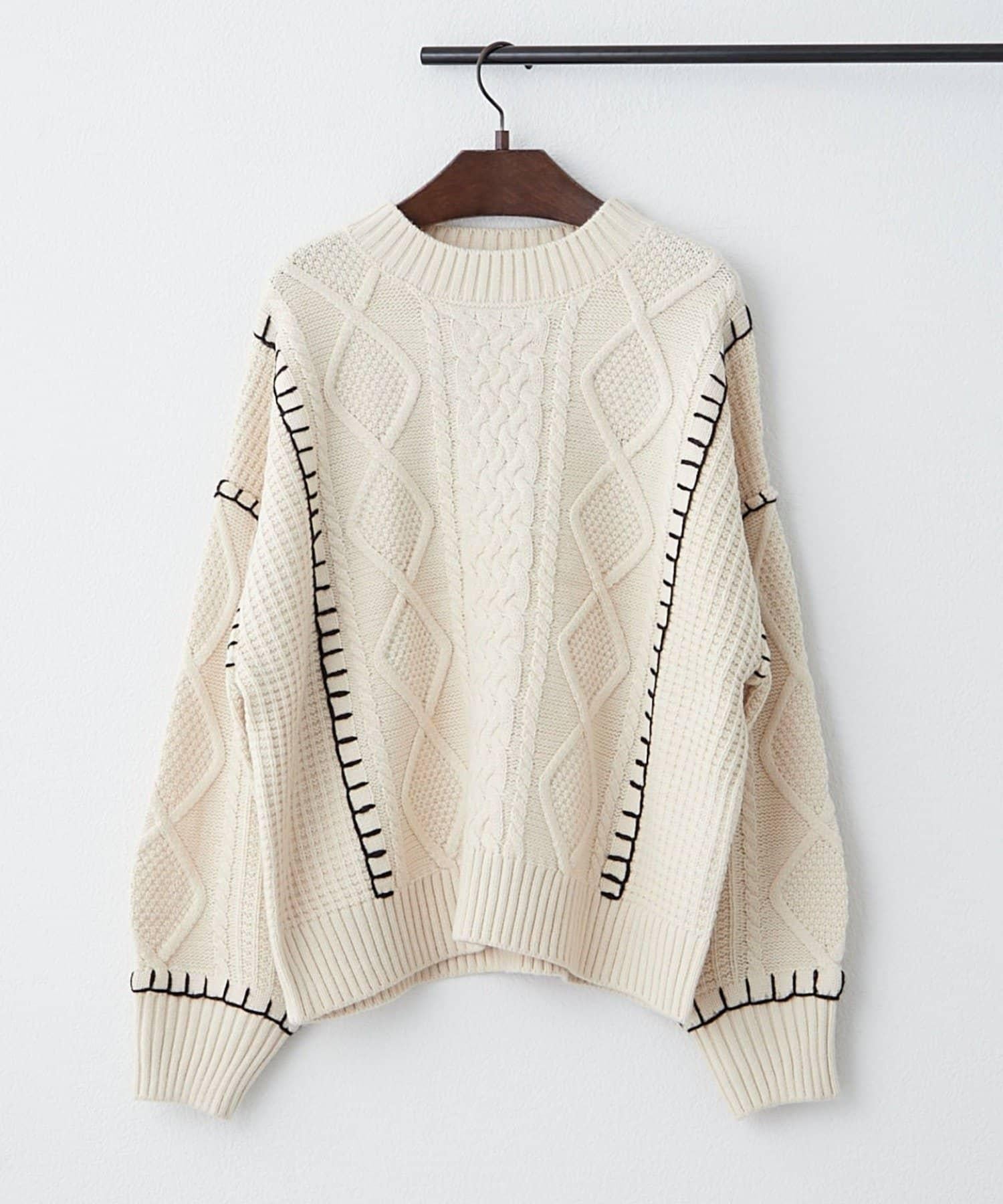 毯邊縫線麻花針織套頭衫