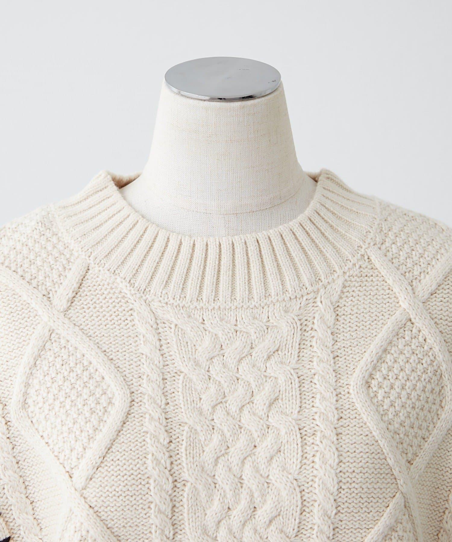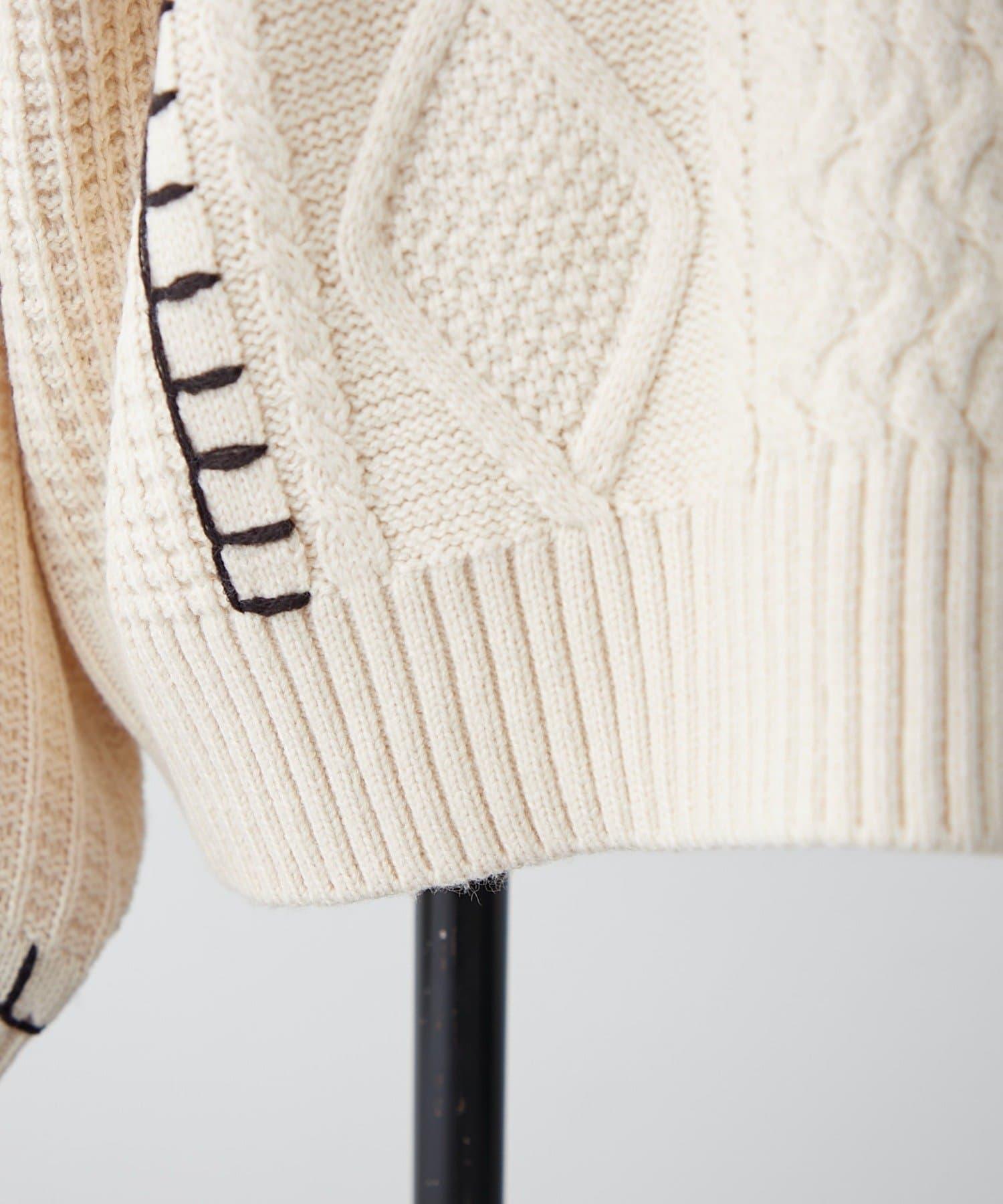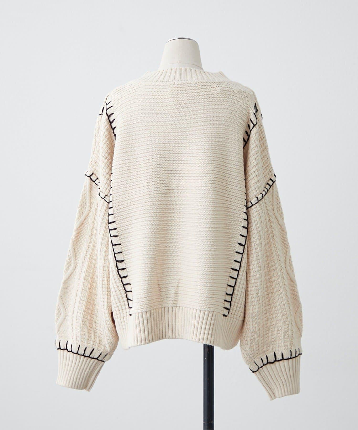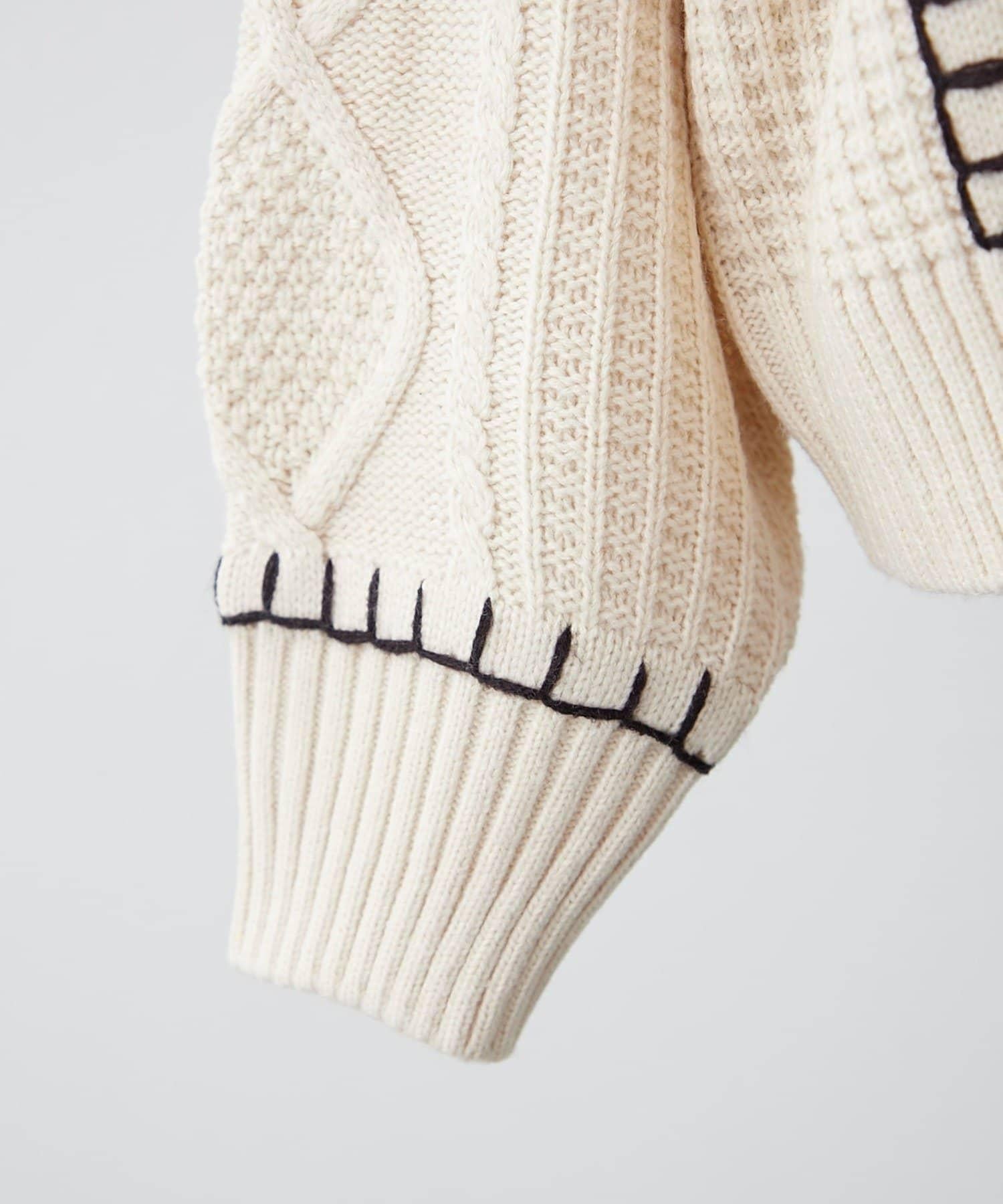毯邊縫線麻花針織套頭衫