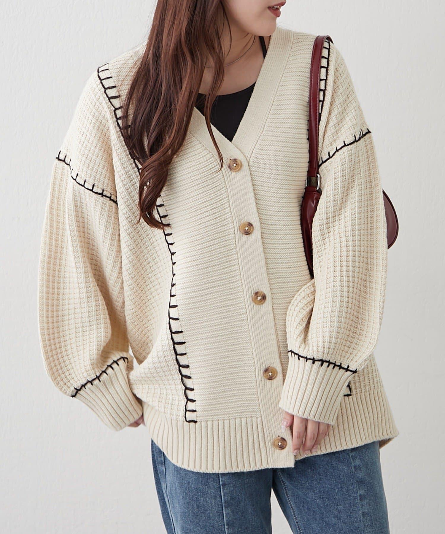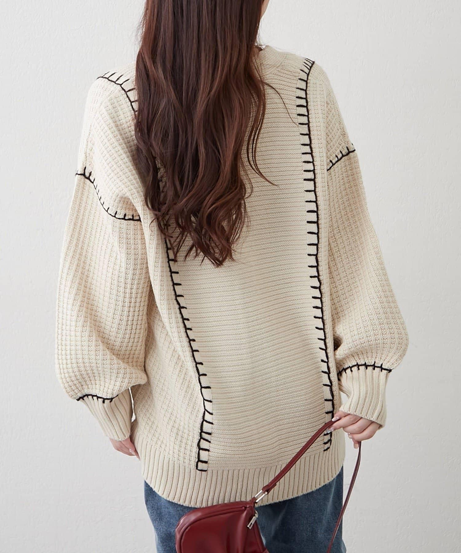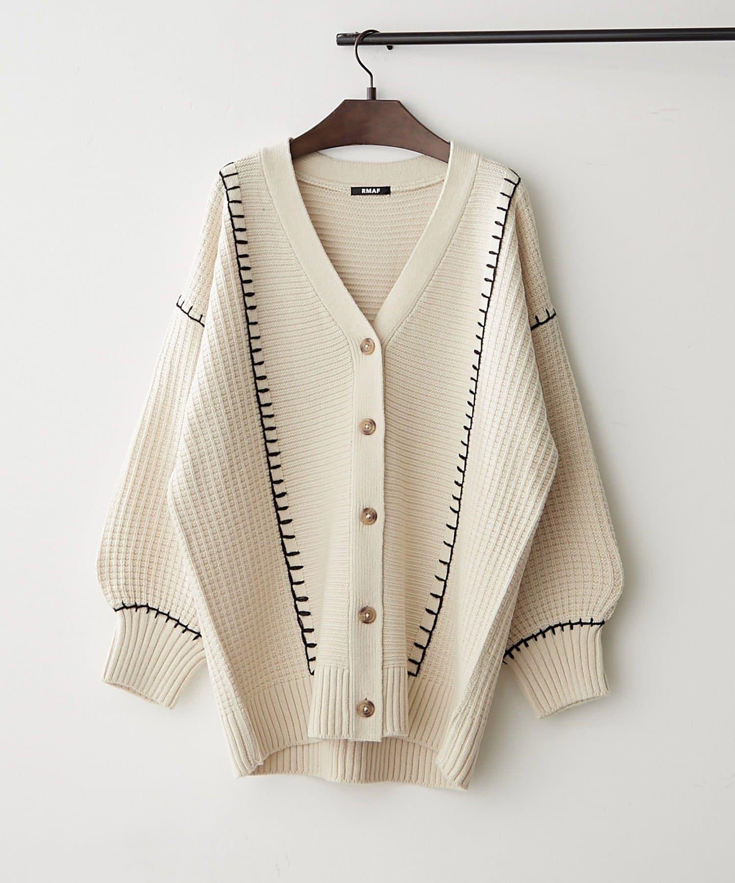 這款針織開衫採用大膽的縫線設計,十分搶眼,是全場的焦點。