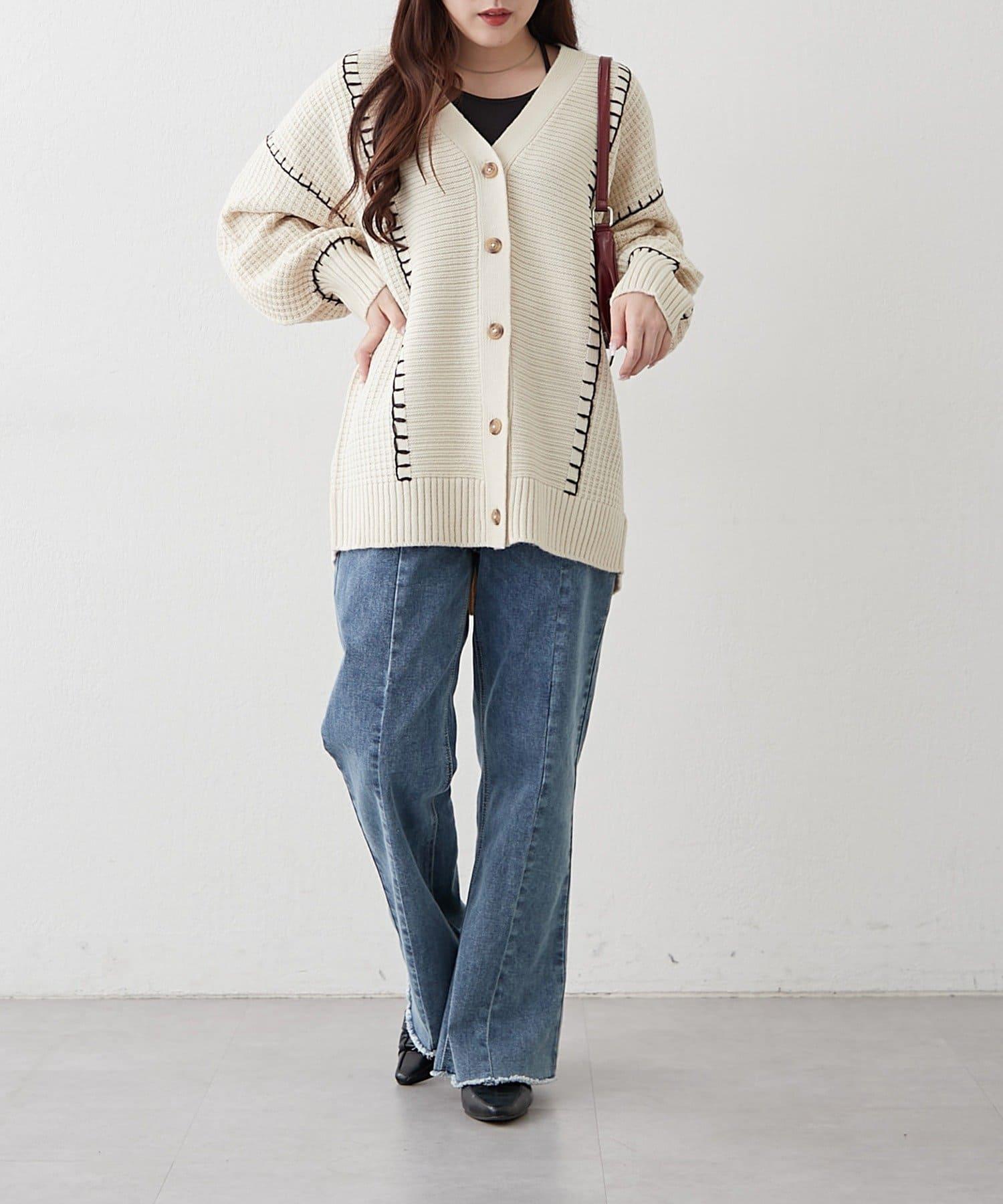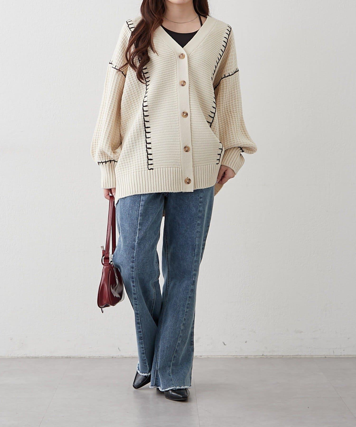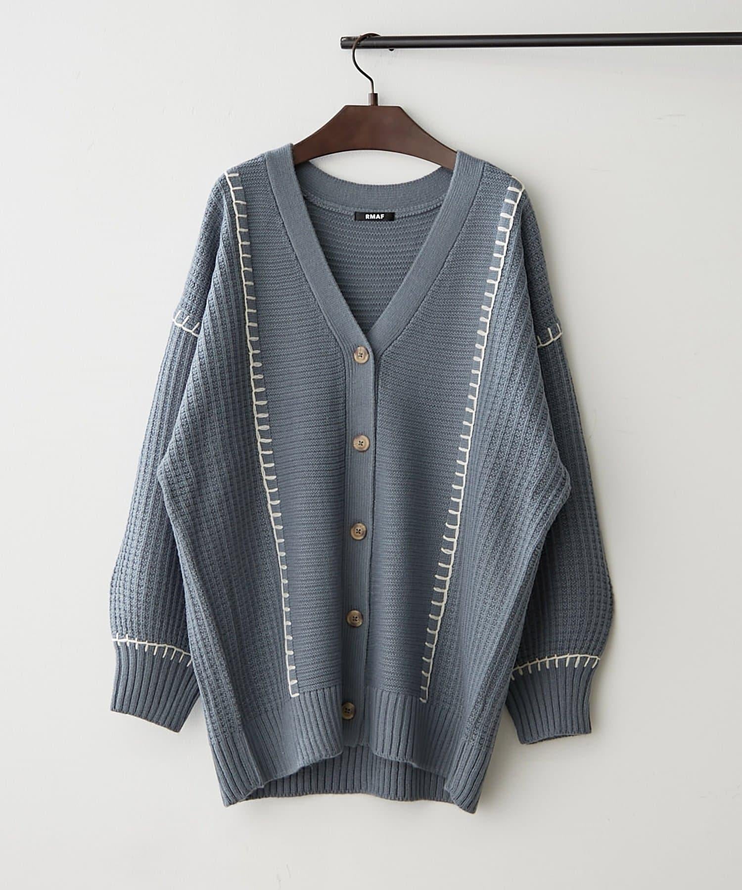 這款針織開衫採用大膽的縫線設計,十分搶眼,是全場的焦點。