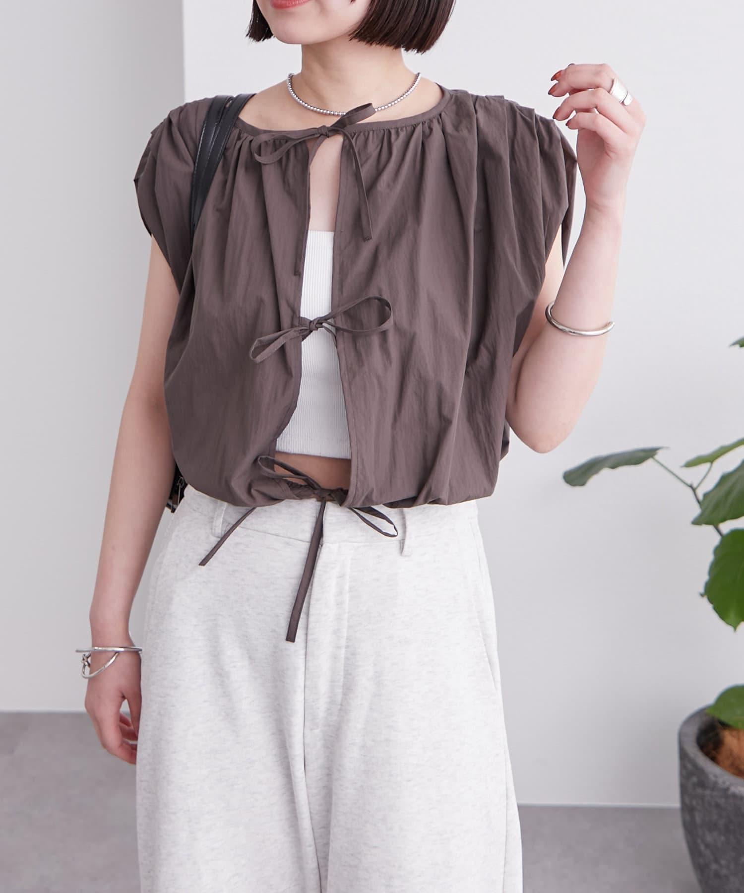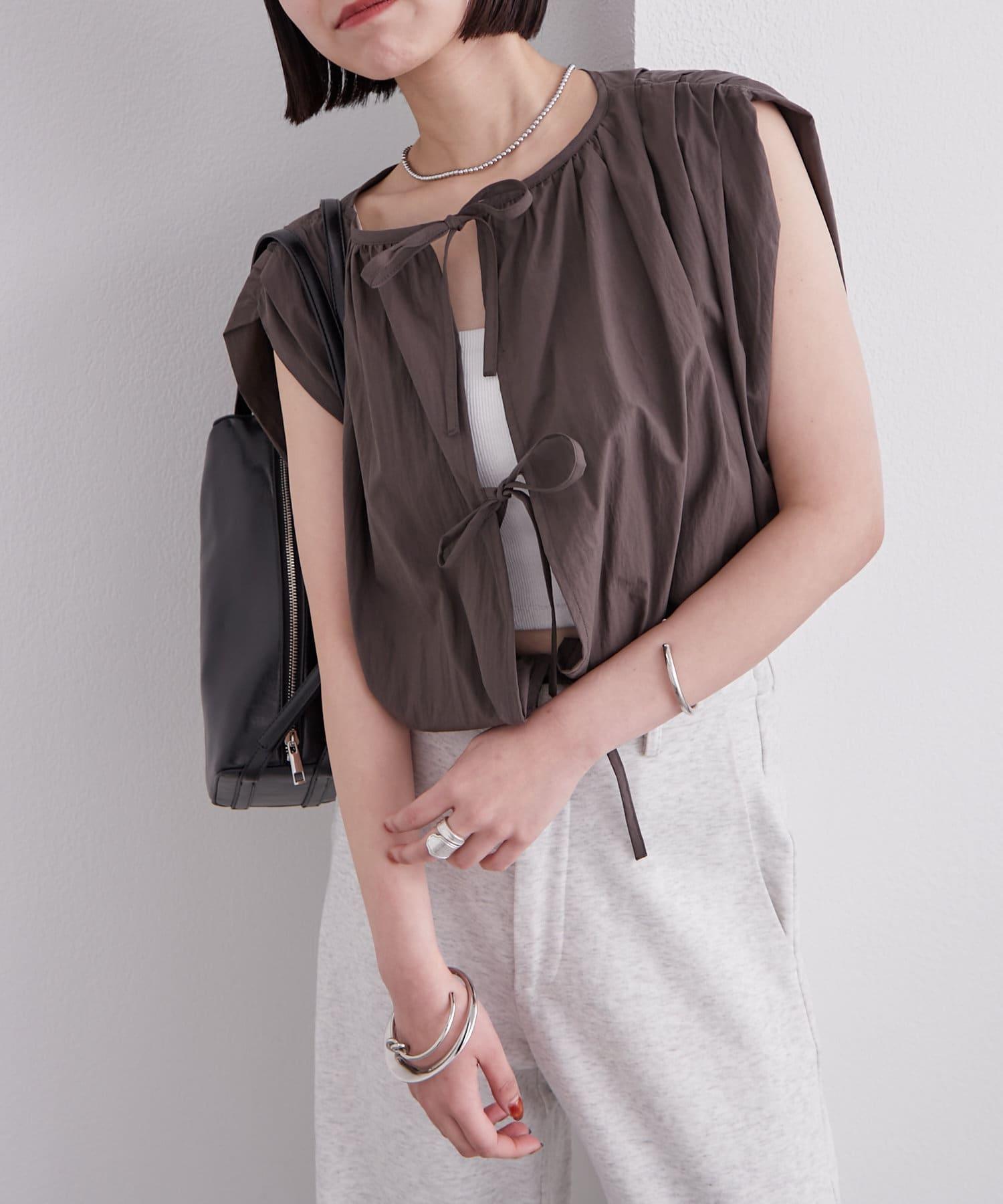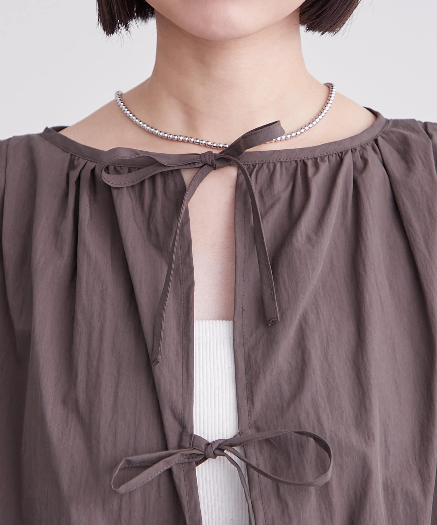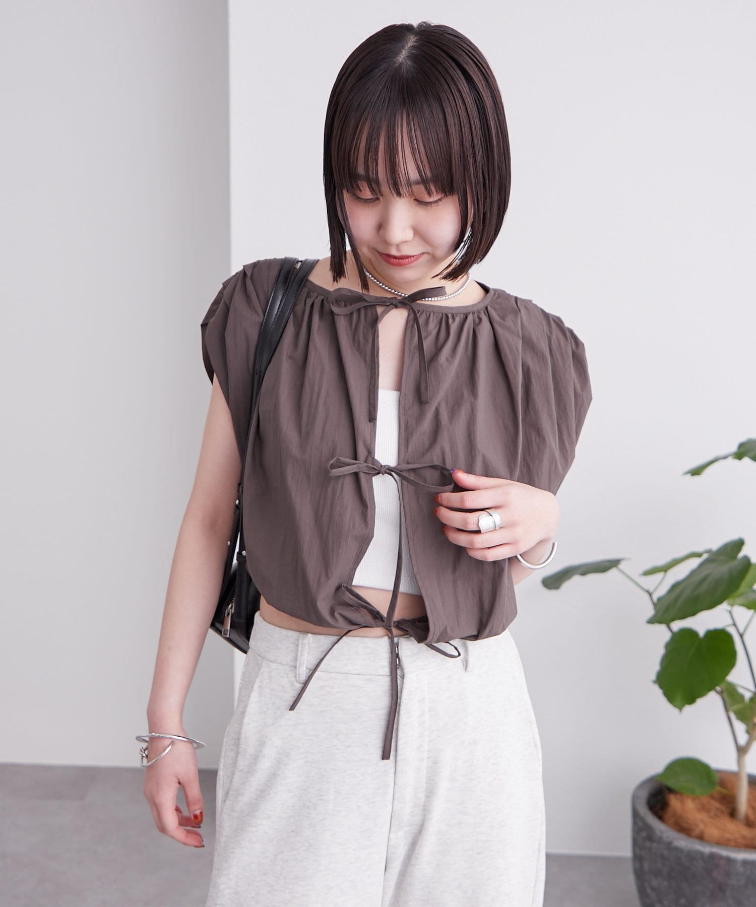 上衣上的緞帶給人一種華麗的感覺,因此搭配簡單的下裝也很合適!