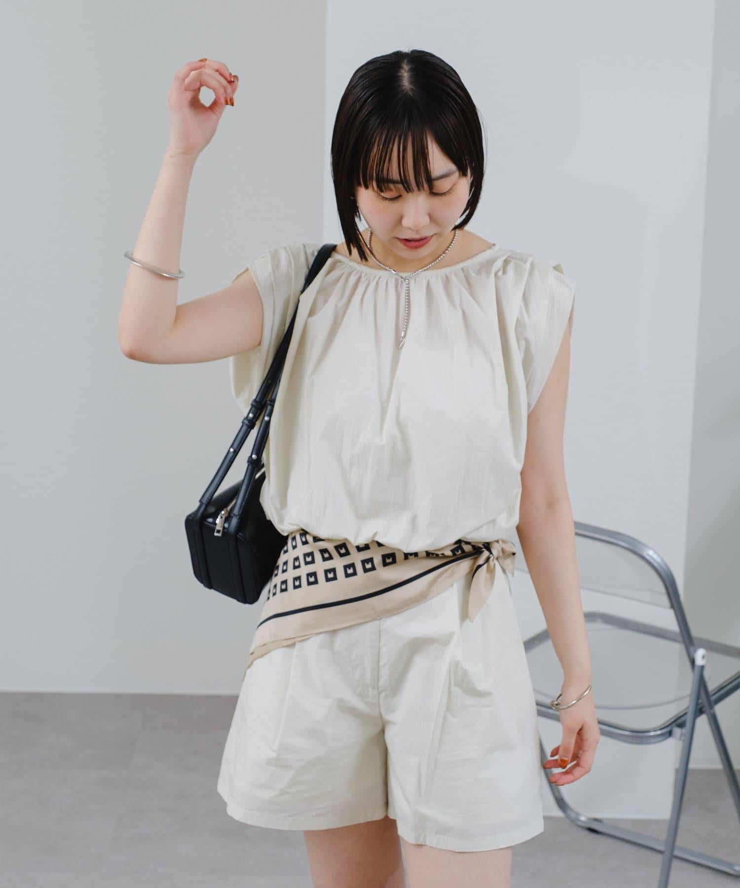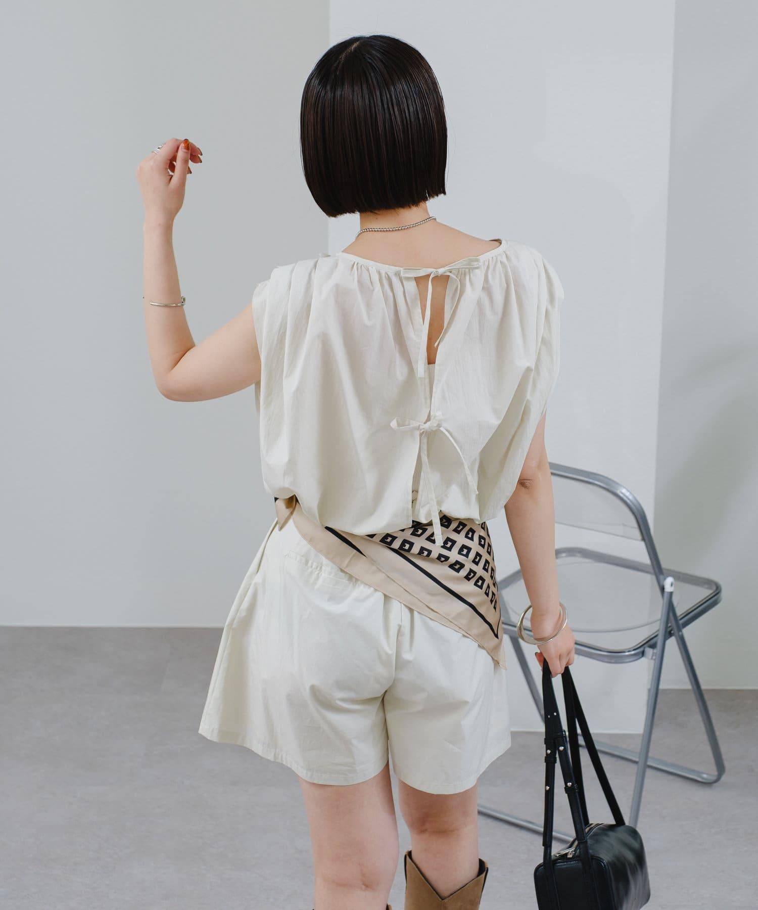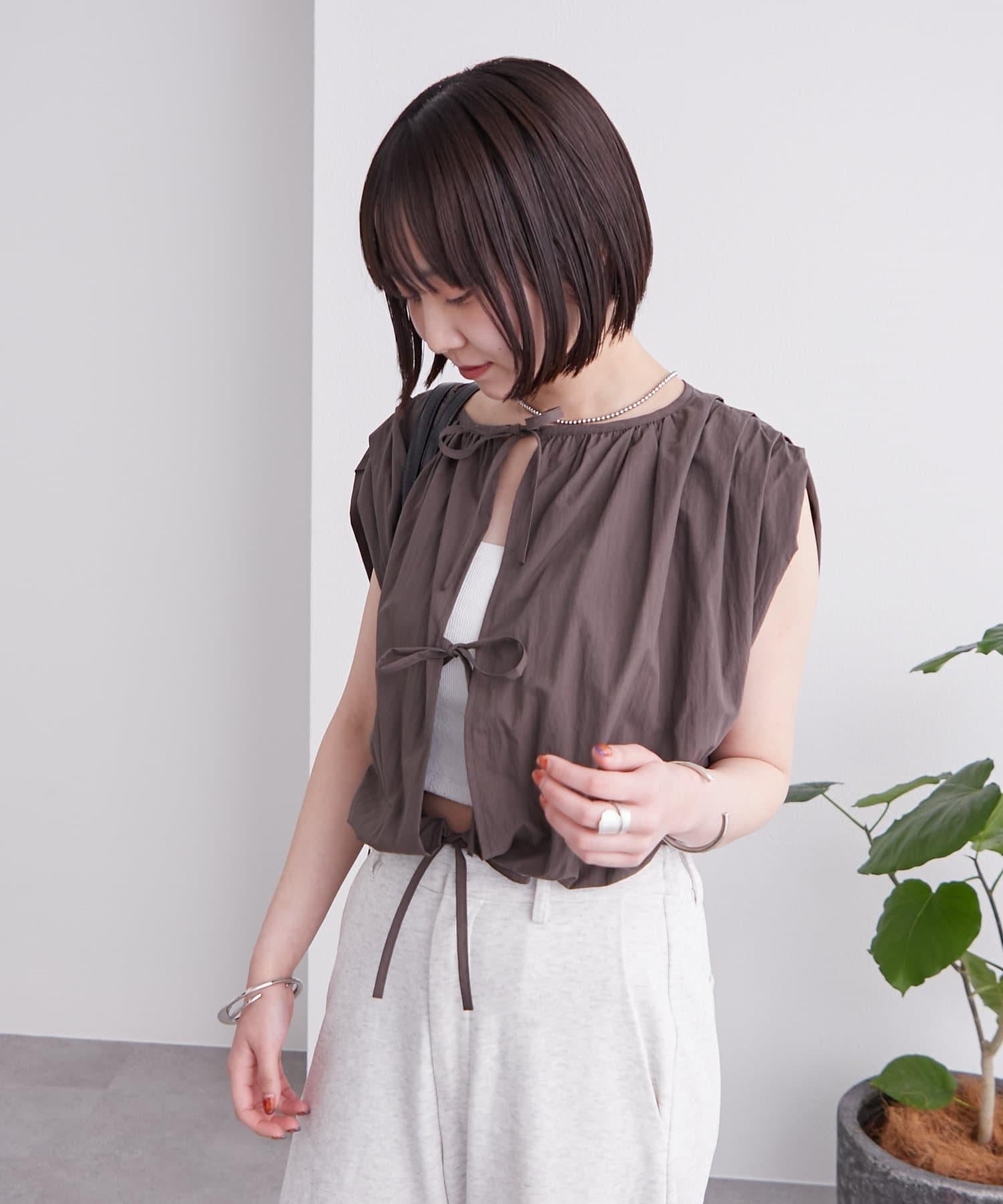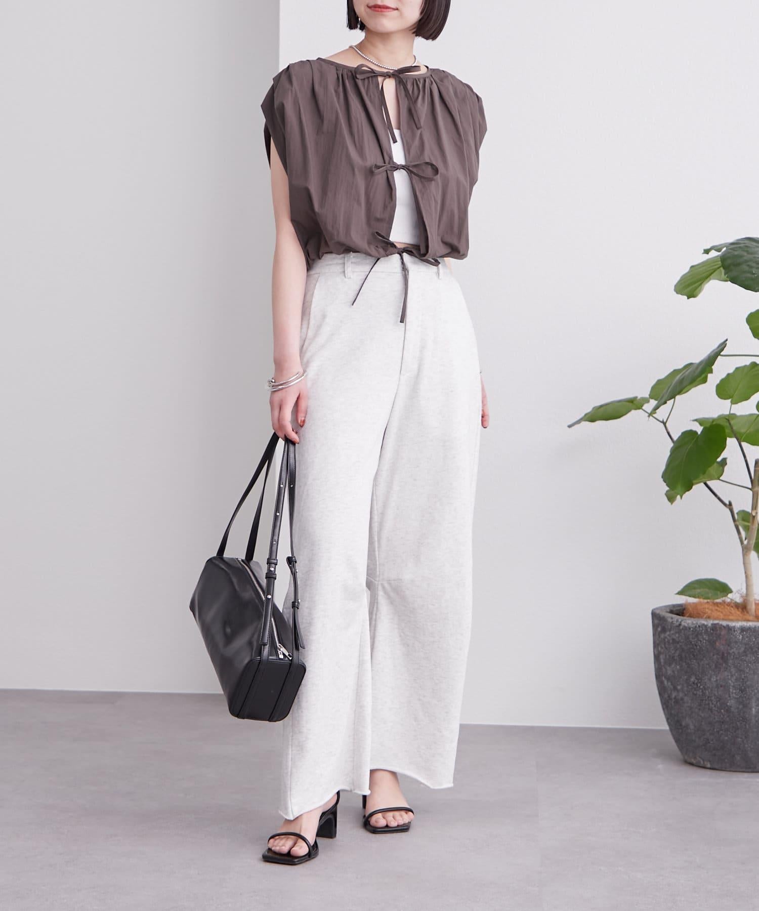 上衣上的緞帶給人一種華麗的感覺,因此搭配簡單的下裝也很合適!