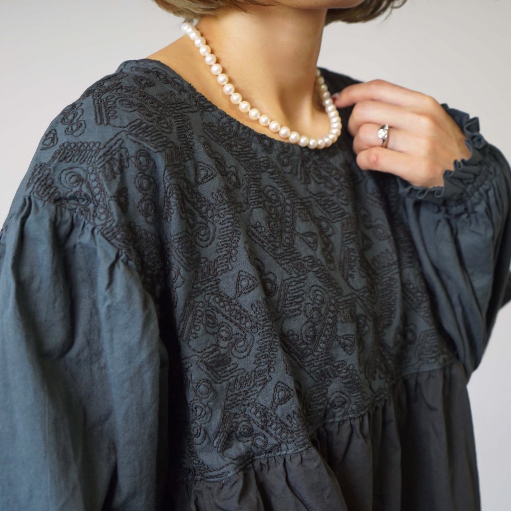 刺繡是在愛知縣👍的 "刺繡花邊機 "上完成的。據說這種刺繡工藝在日本已相當罕見,需要穿大量的針,手工逐一檢查成品,再用縫紉機進行修正,過程十分辛苦。刺繡使用粗線,使刺繡具有立體感。