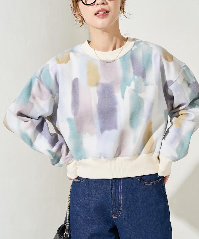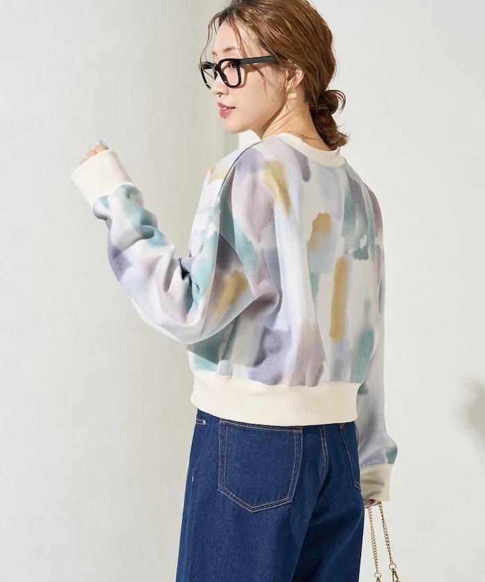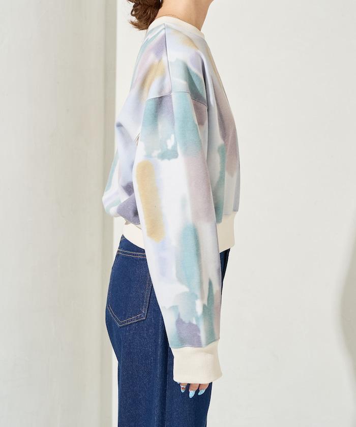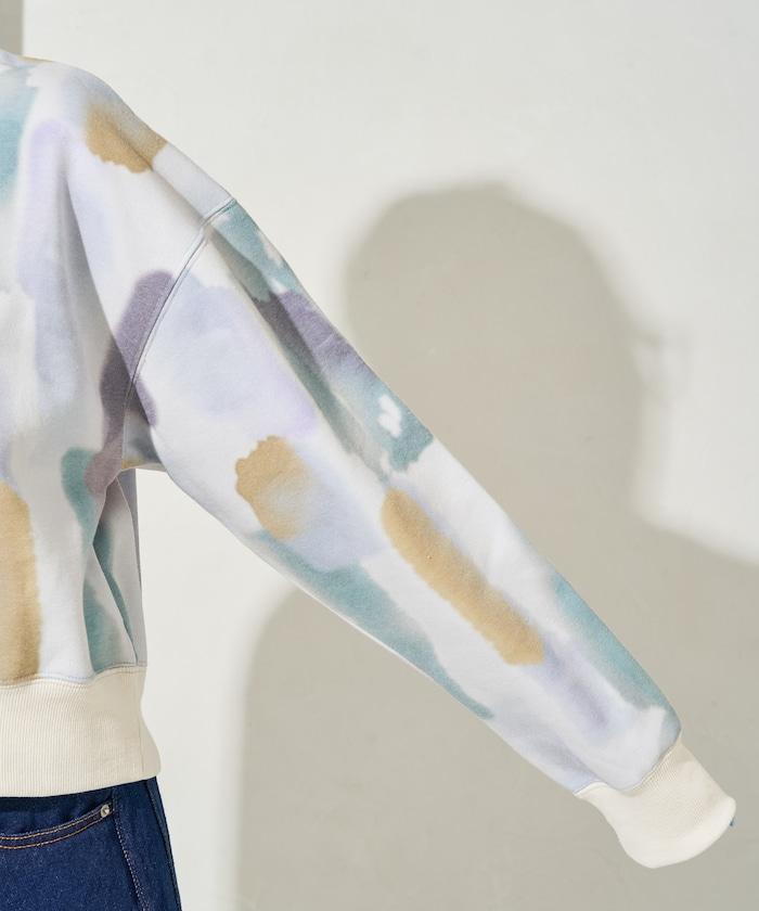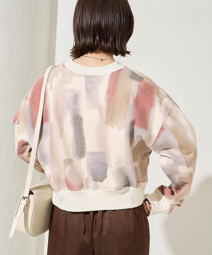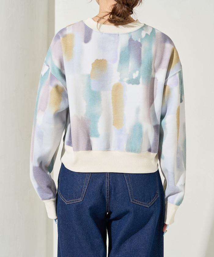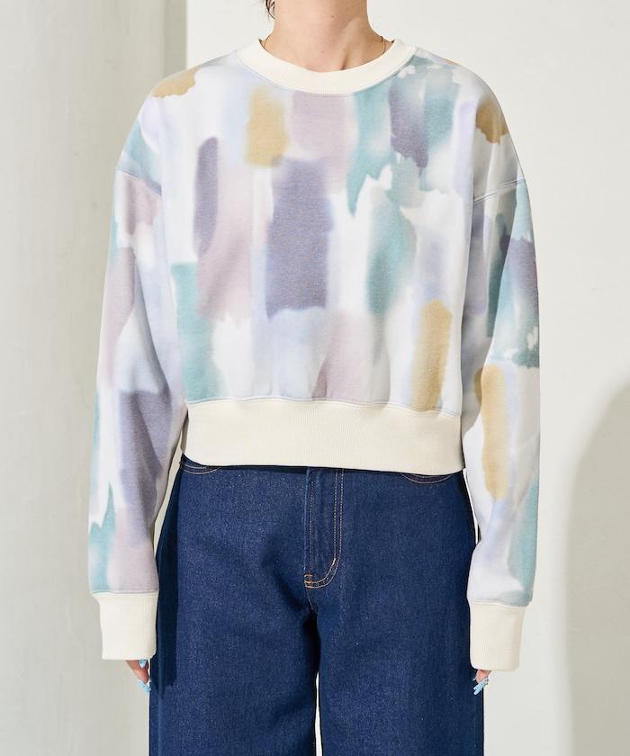 水彩圖案短款衛衣套頭衫