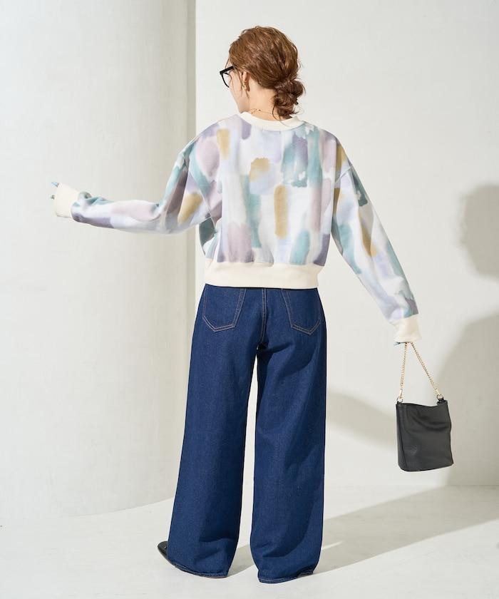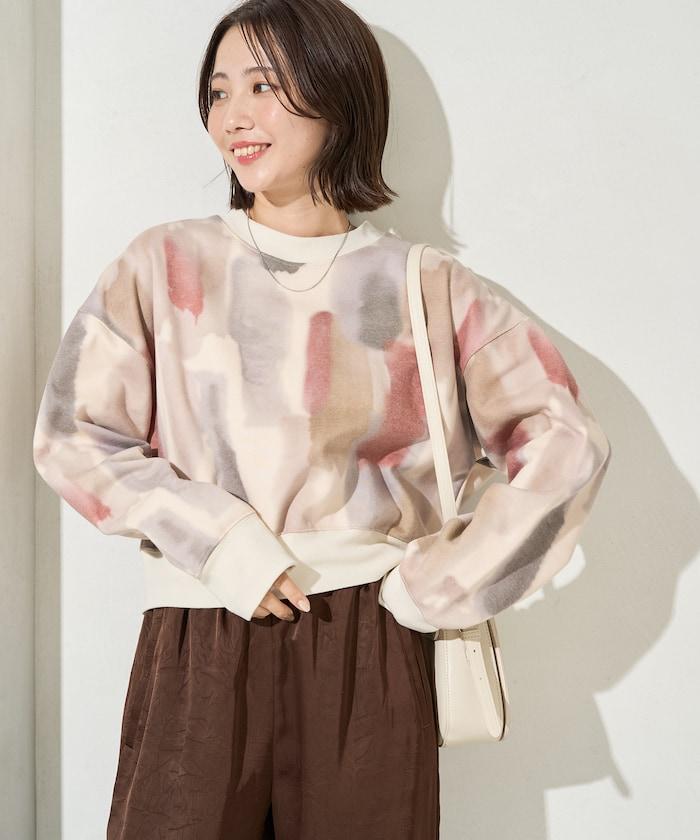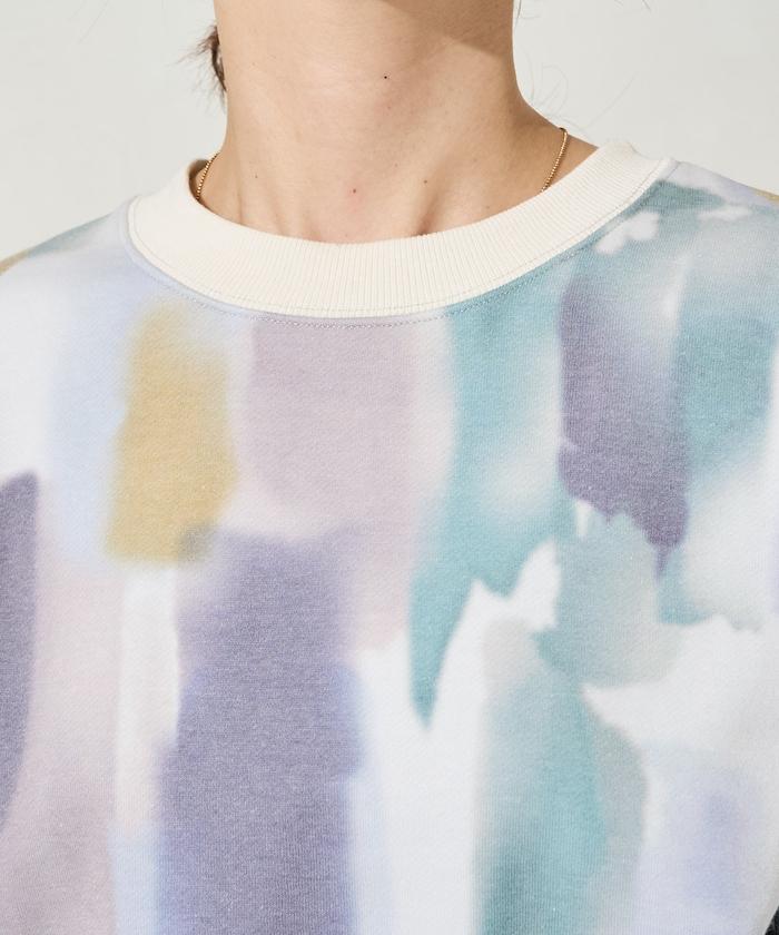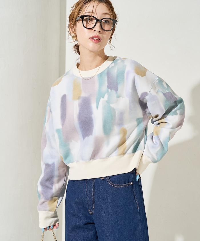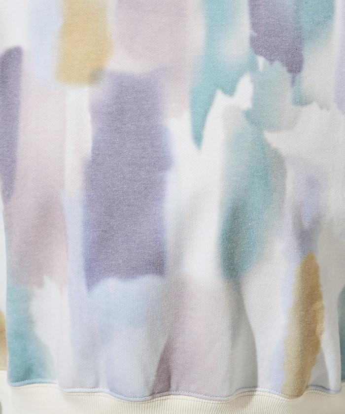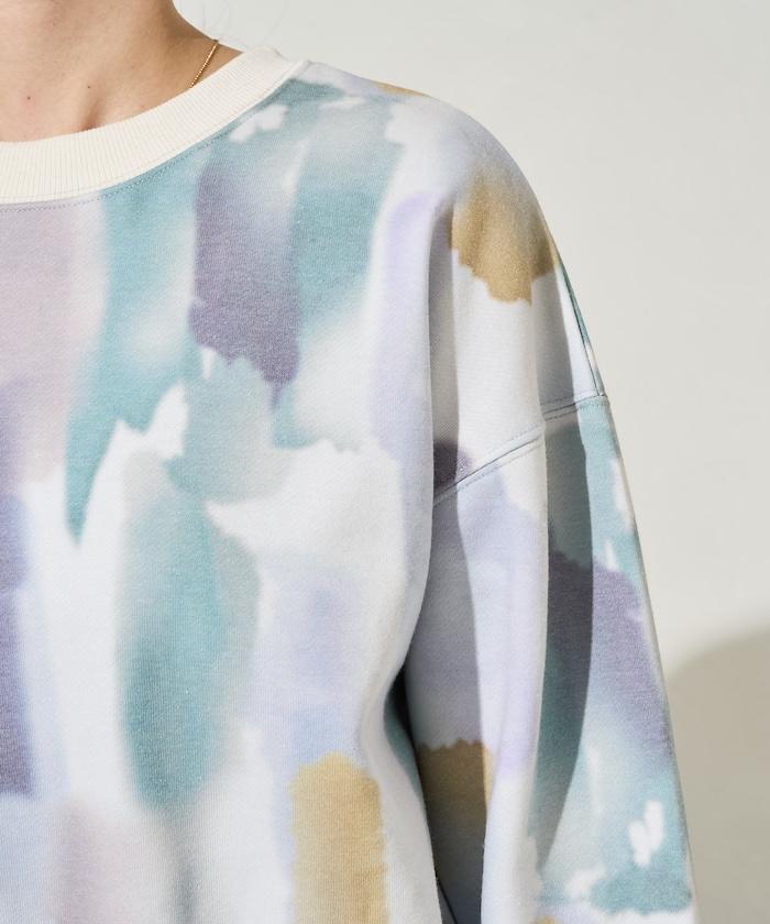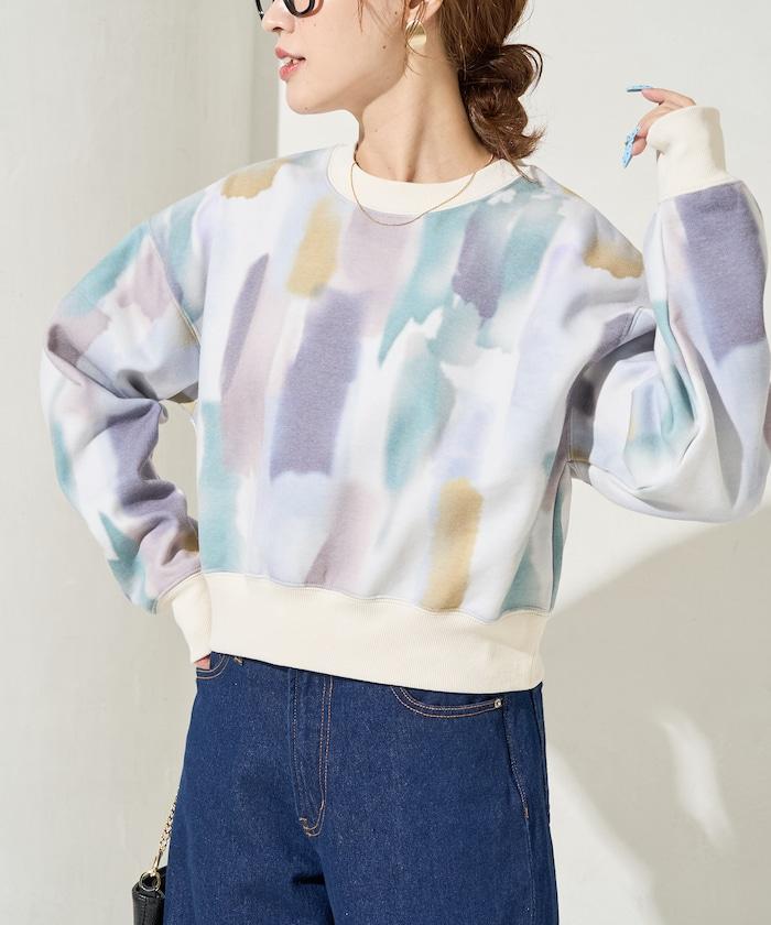 水彩圖案短款衛衣套頭衫