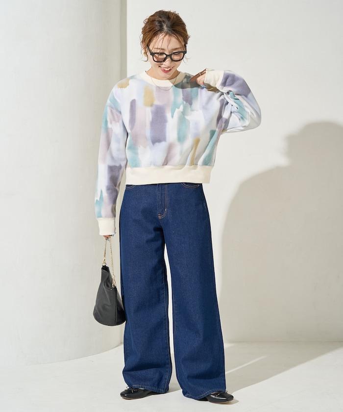 配飾和包包保持簡潔,打造以水彩圖案為中心的成人休閒風格!