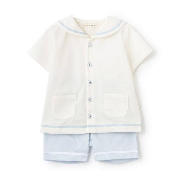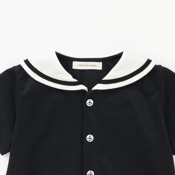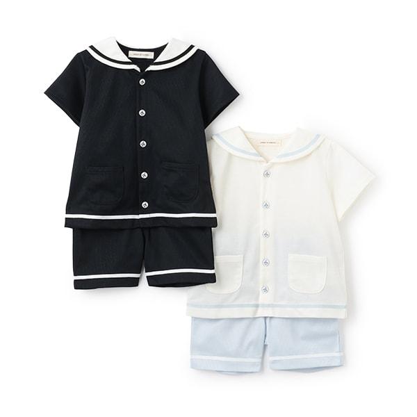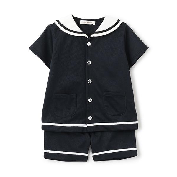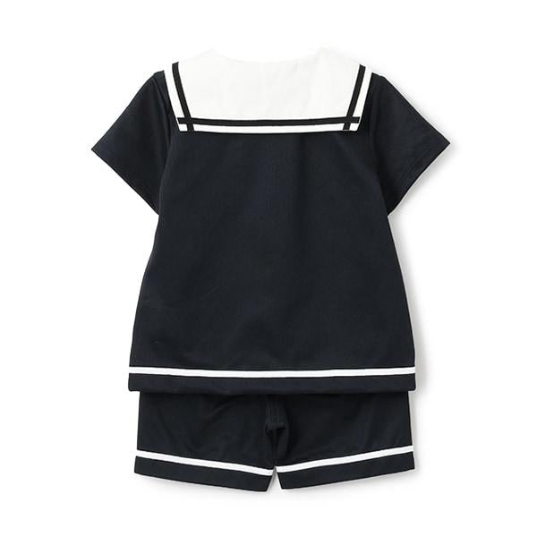 水手服領口和褲邊用彩色膠帶裝飾。