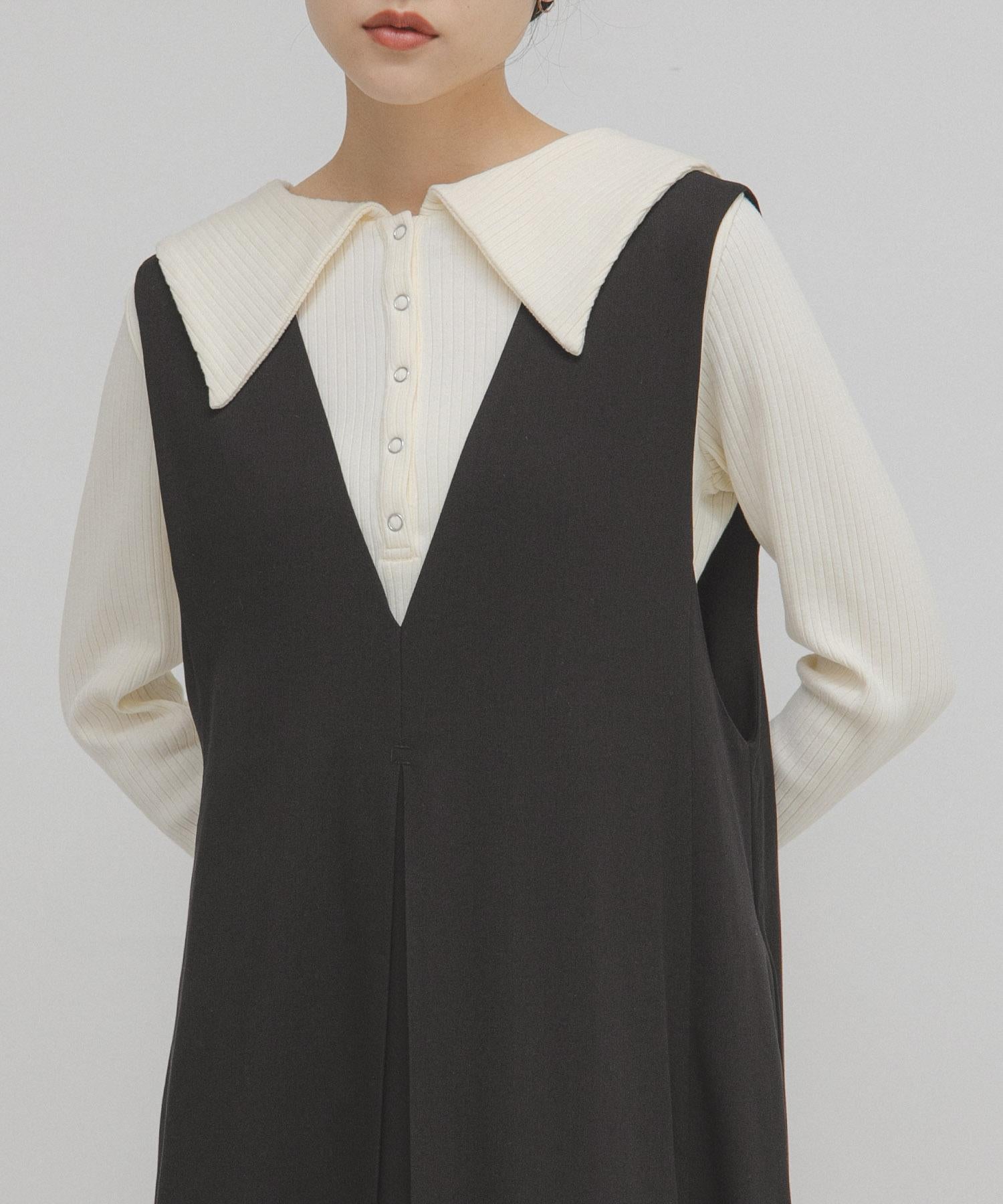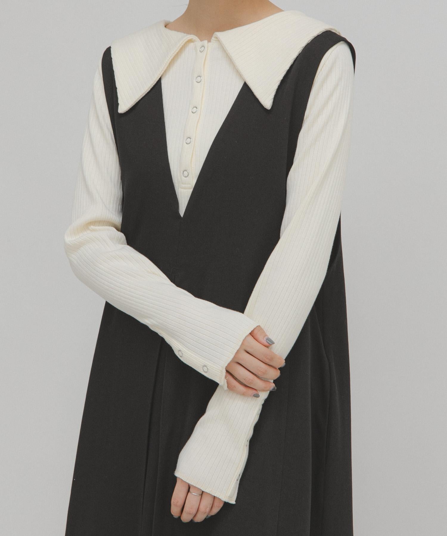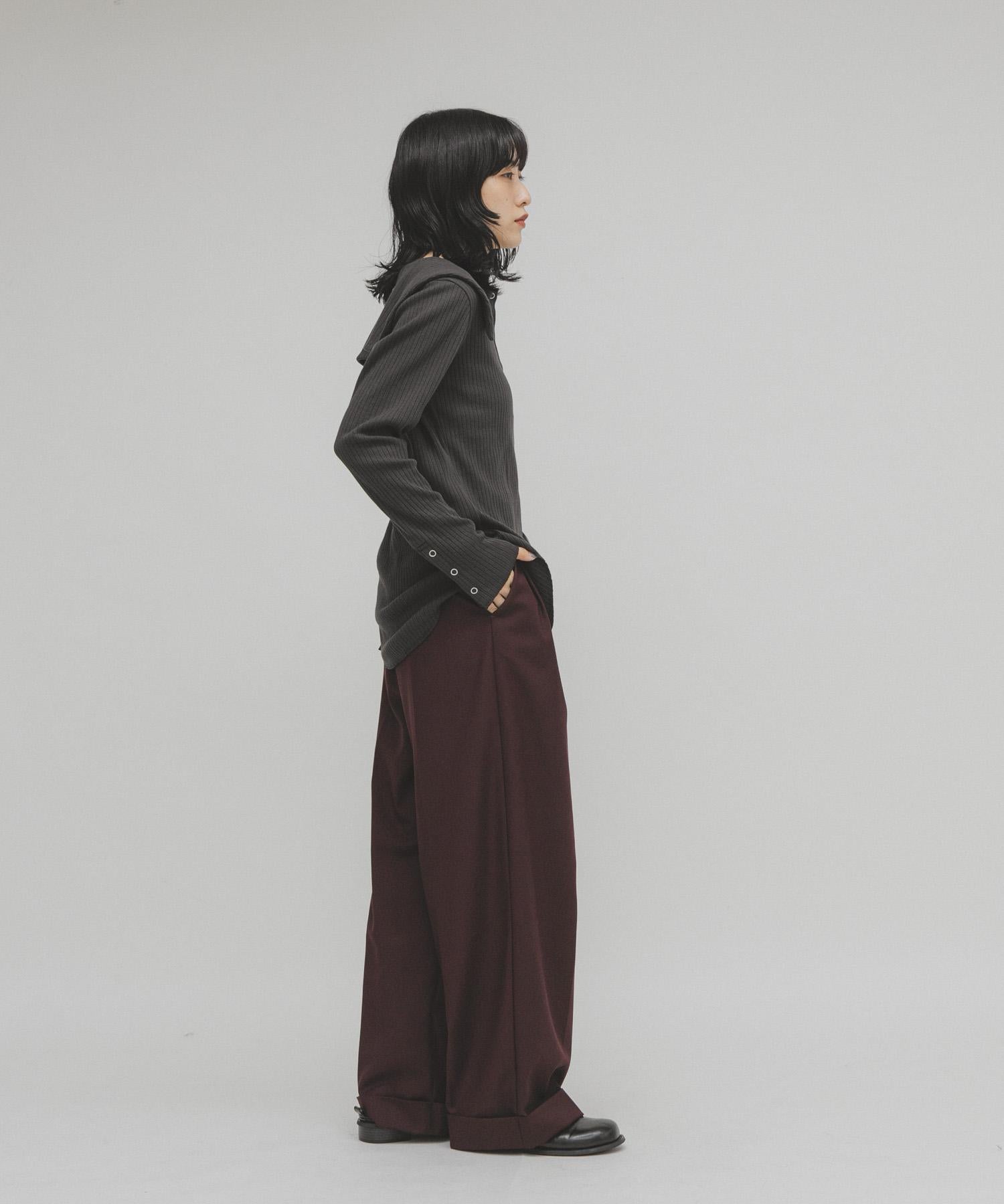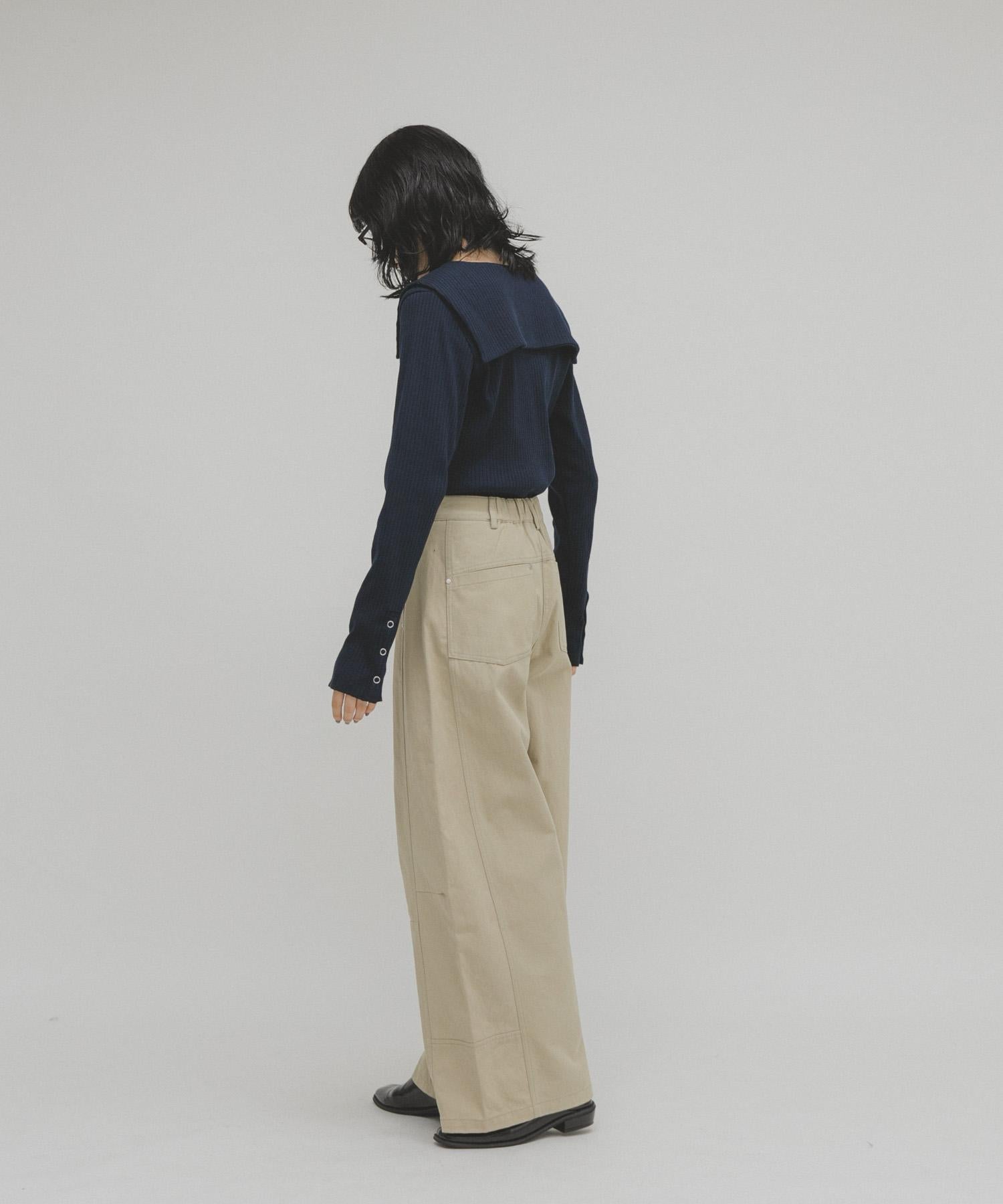 這件上衣由簡單的羅紋製成,並以水手領設計作為點綴。袖子也有類似襯衫的細節,帶有環形圓點紐扣的開放式規格。這款上衣合身適度,穿著舒適,盡顯女性魅力。