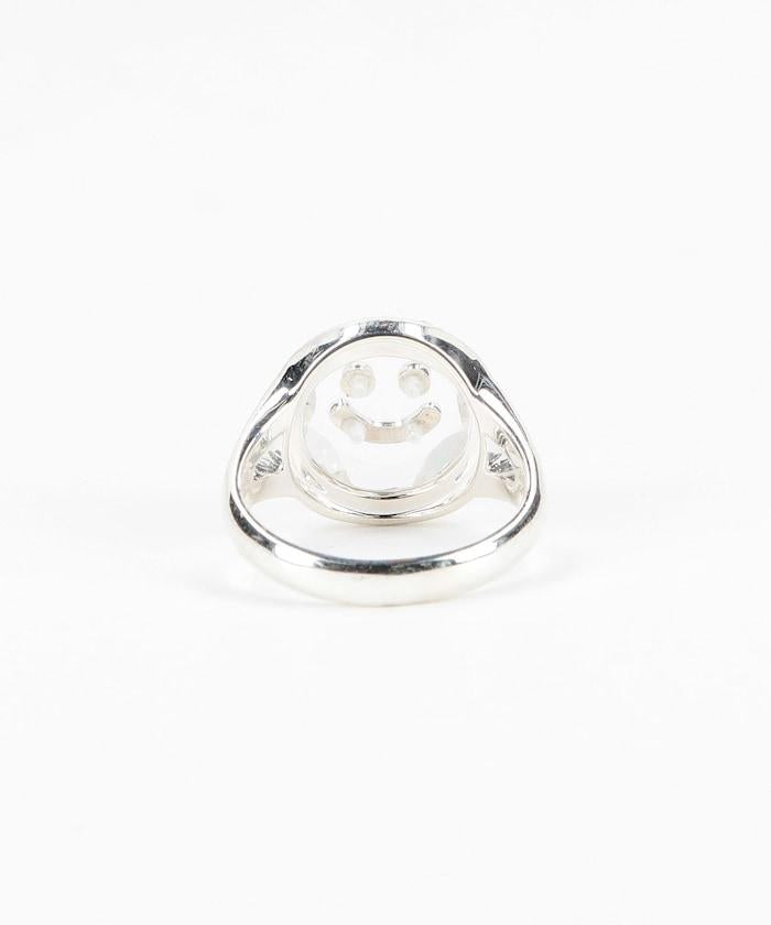 這款迷人的戒指上有一個醒目的微笑圖案,圖案由白色石英制成,具有獨特的白色透明感,周圍鑲有鑽石。