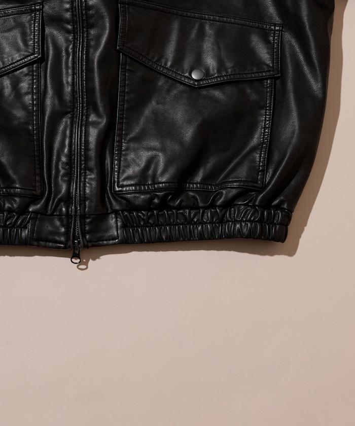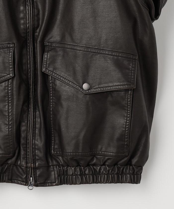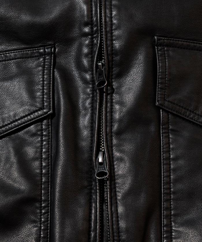 水洗做舊 仿皮質感 立領 拉鍊 短款外套