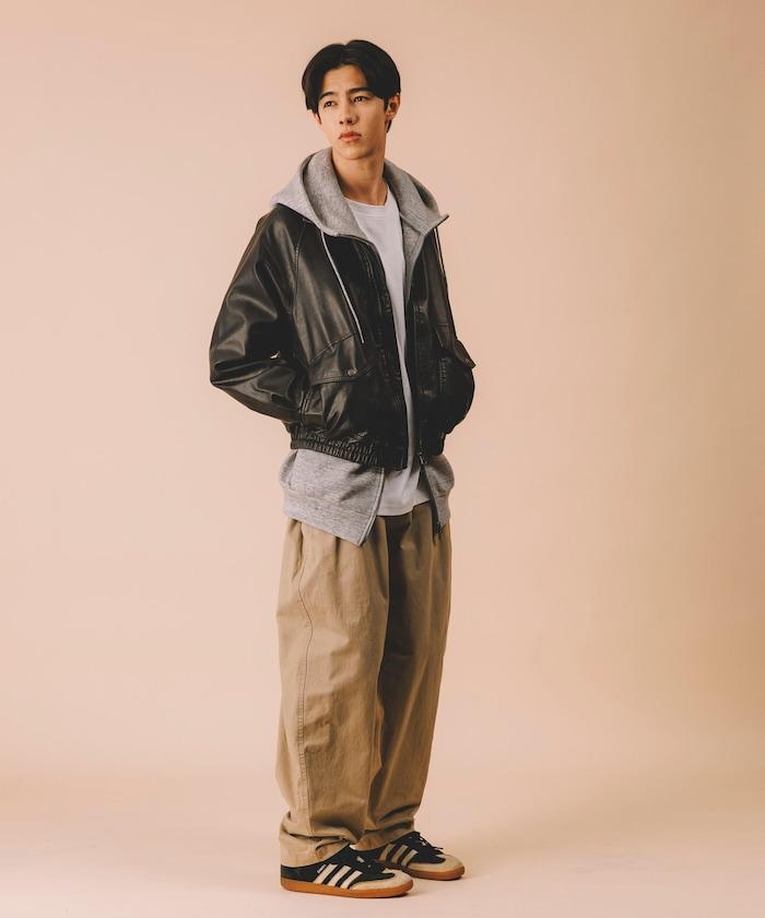 腳上可搭配運動鞋,打造街頭風格,也可搭配靴子,打造更具陽剛之氣的飛行夾克印象。它是一款從休閒到街頭都能對應的 blouson,在秋冬季節裡積極扮演著主角的角色。