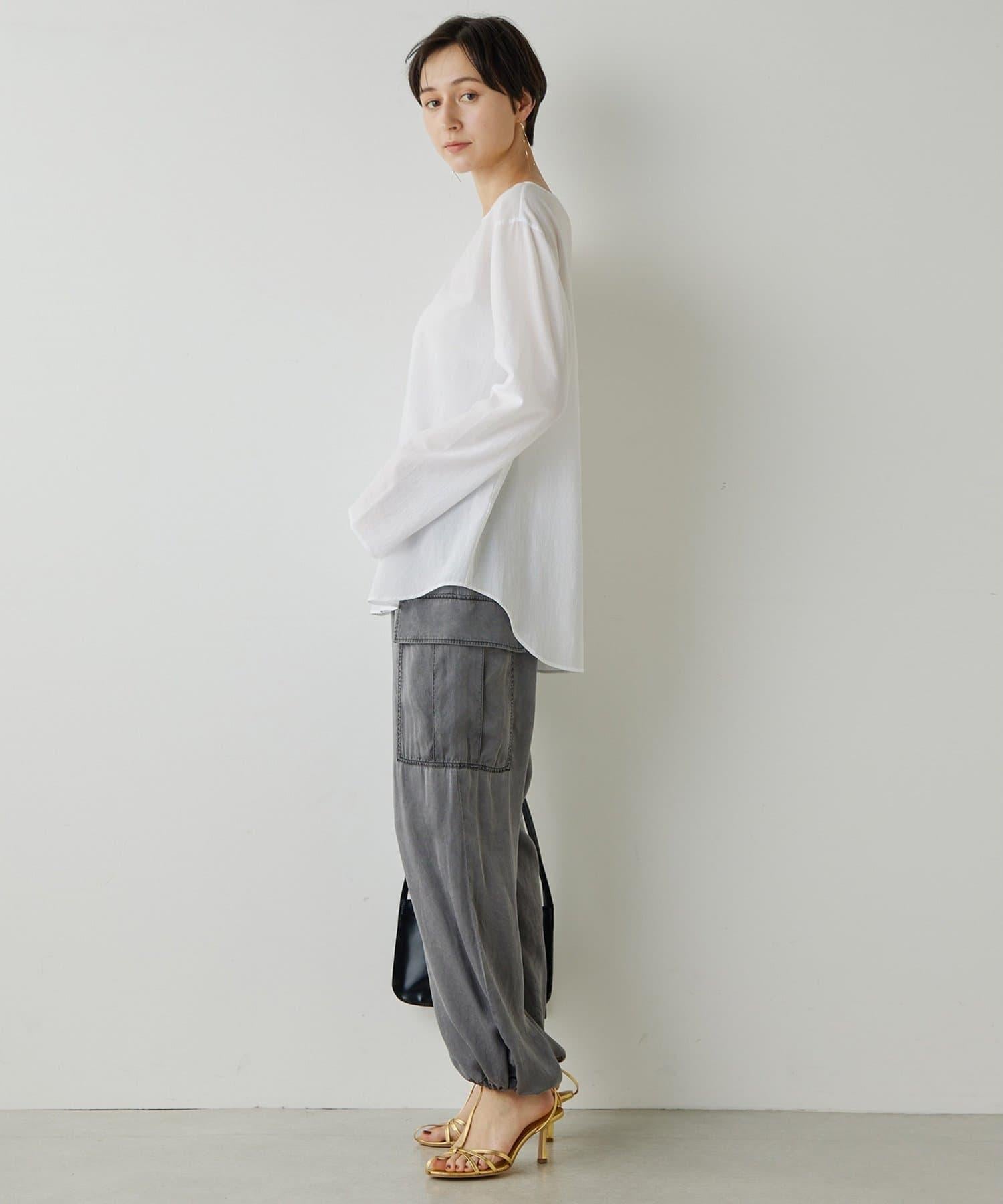 下襬處的鬆緊紡錘使其輪廓有兩種穿法:寬鬆或繭形。