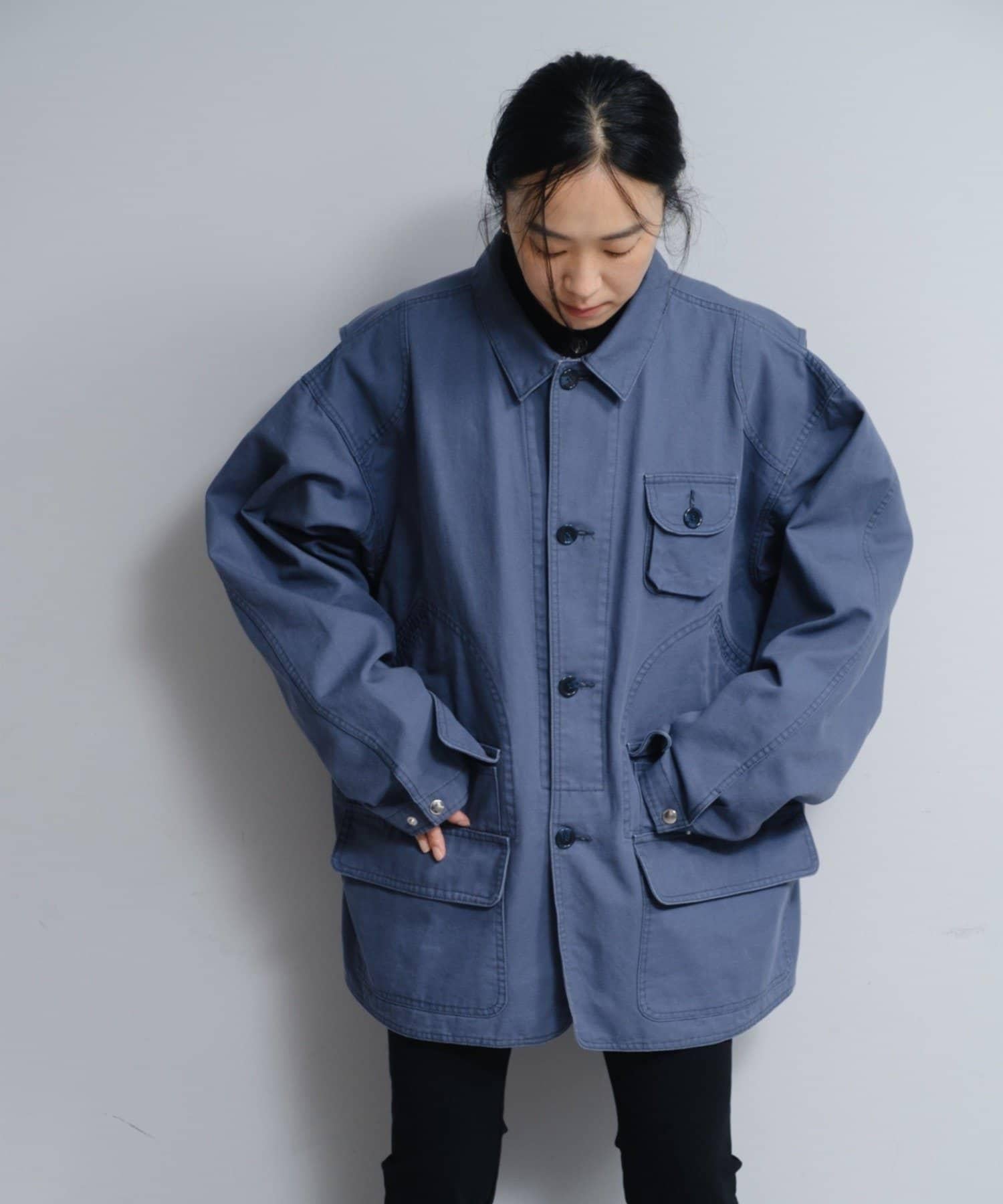 採用優質國產鴨絨面料量身定製的中性超大外套。在傳統狩獵夾克設計的基礎上,對一些小細節進行了改動,使其更易於作為城鎮便服穿著。保留了後部獵物袋和內袋的設計,因此規格允許足夠大的存儲容量,讓您可以空手逛街。作為彈夾夾層的口袋去掉了縫線,取而代之的是一個可以側放智能手機的專用口袋。由於面料較厚,為了減輕重量,我們儘可能取消了不必要的配件。此外,內袋和衣領背面採用了不同的面料,與外層面料的配色略有不同,從而形成了一種規格,使衣服正反兩面都能穿出不同的表情。